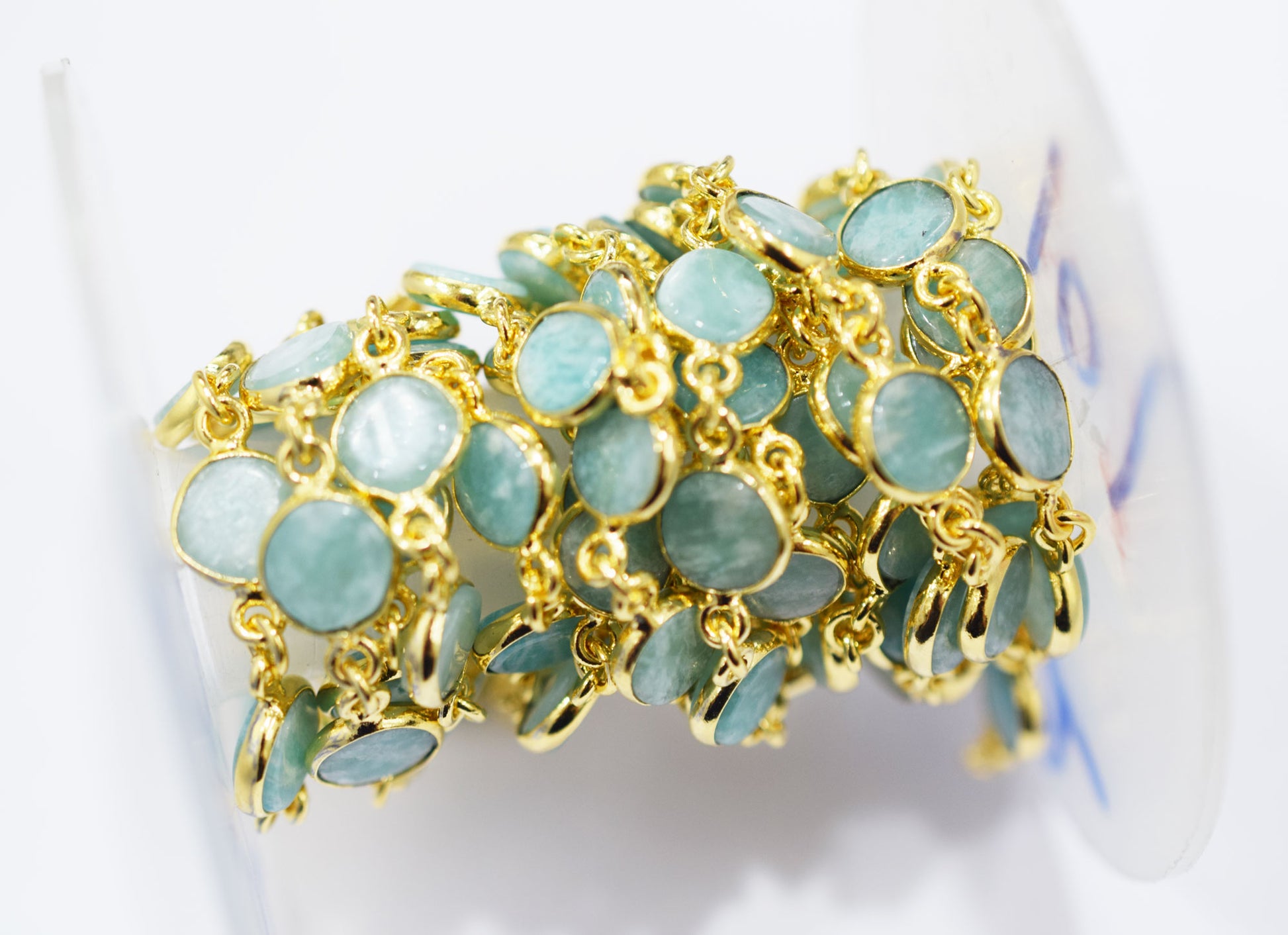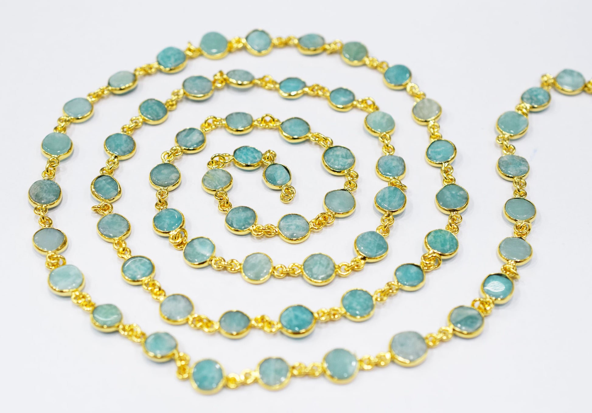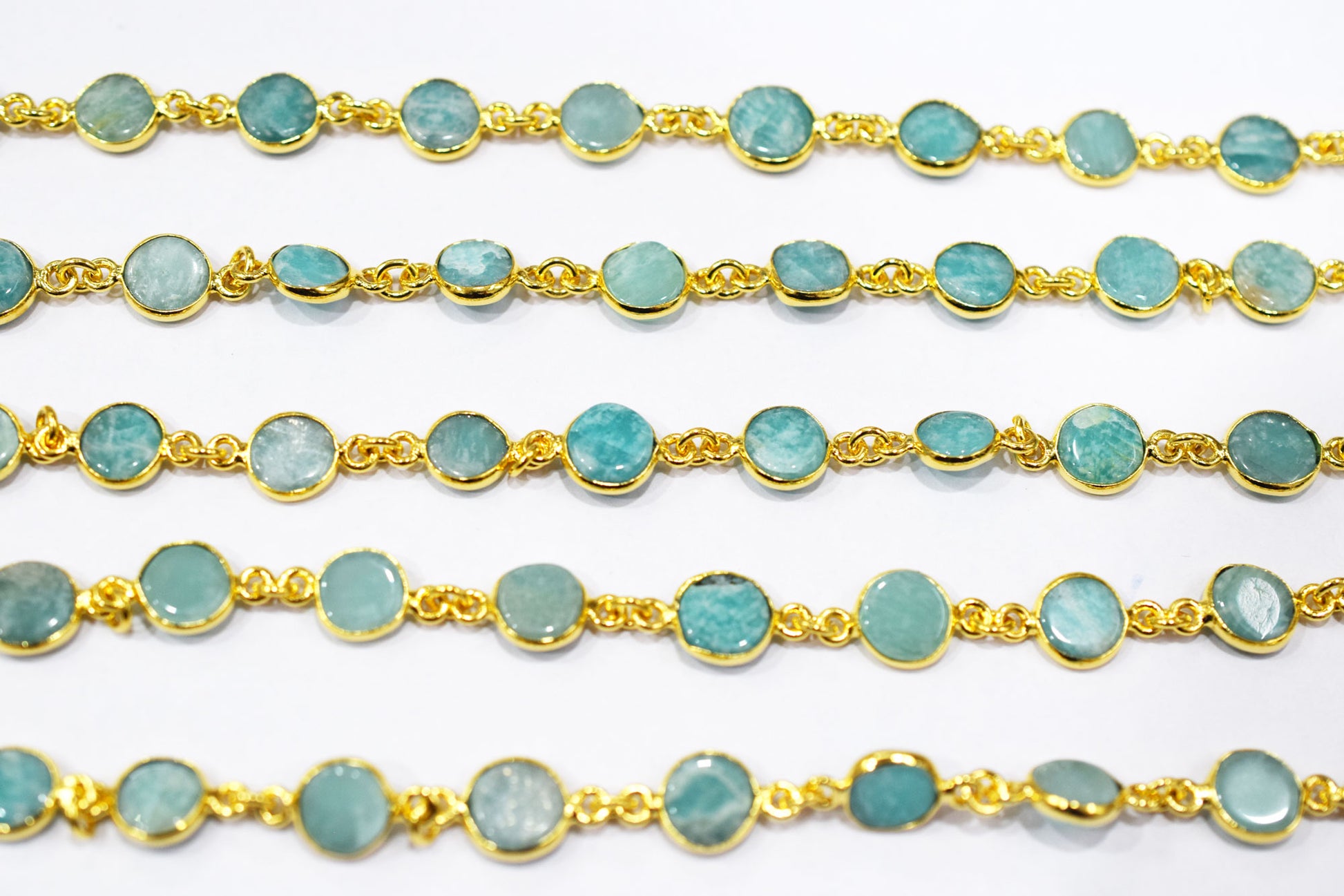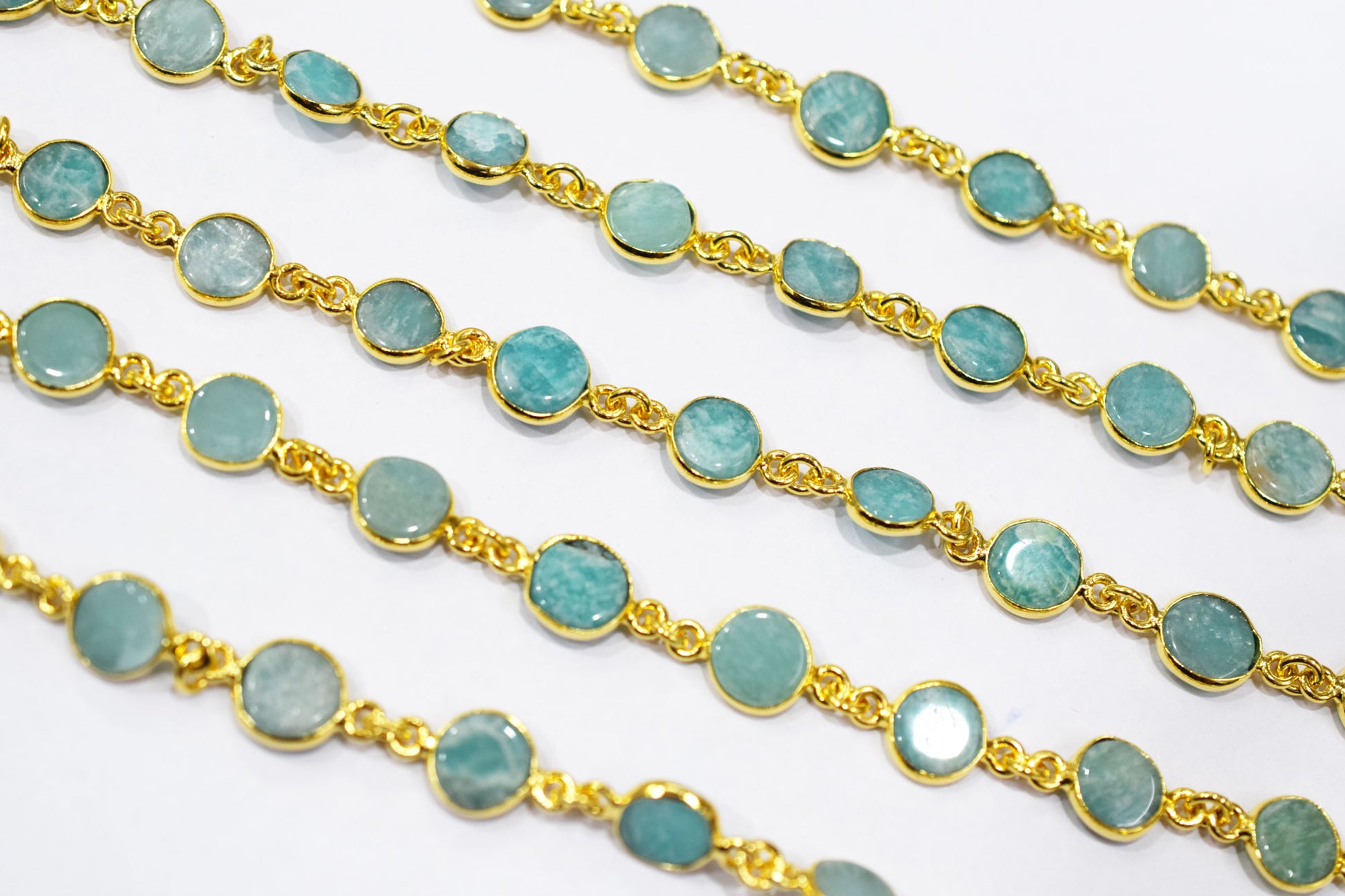 Amazonite Coin Shape Connector Chain , Amazonite Smooth Coin Shape Bezel Link Chain , 9 mm , RB-6529