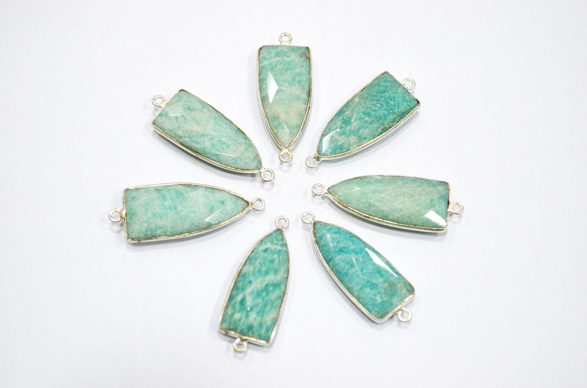 Amazonite Faceted Arrowhead Shape Double Bail Connector , Amazonite Arrowhead Shape Bezel Connector , Sold By Piece , 13x35 mm , RB-5861