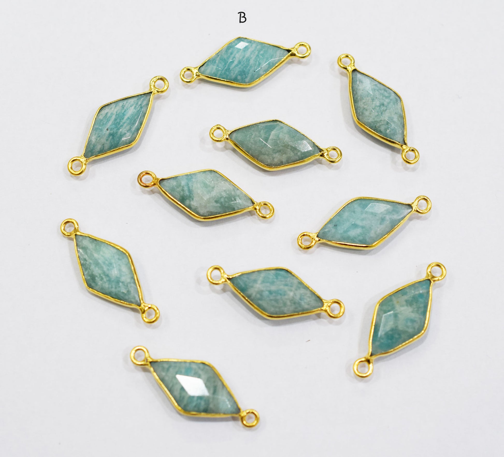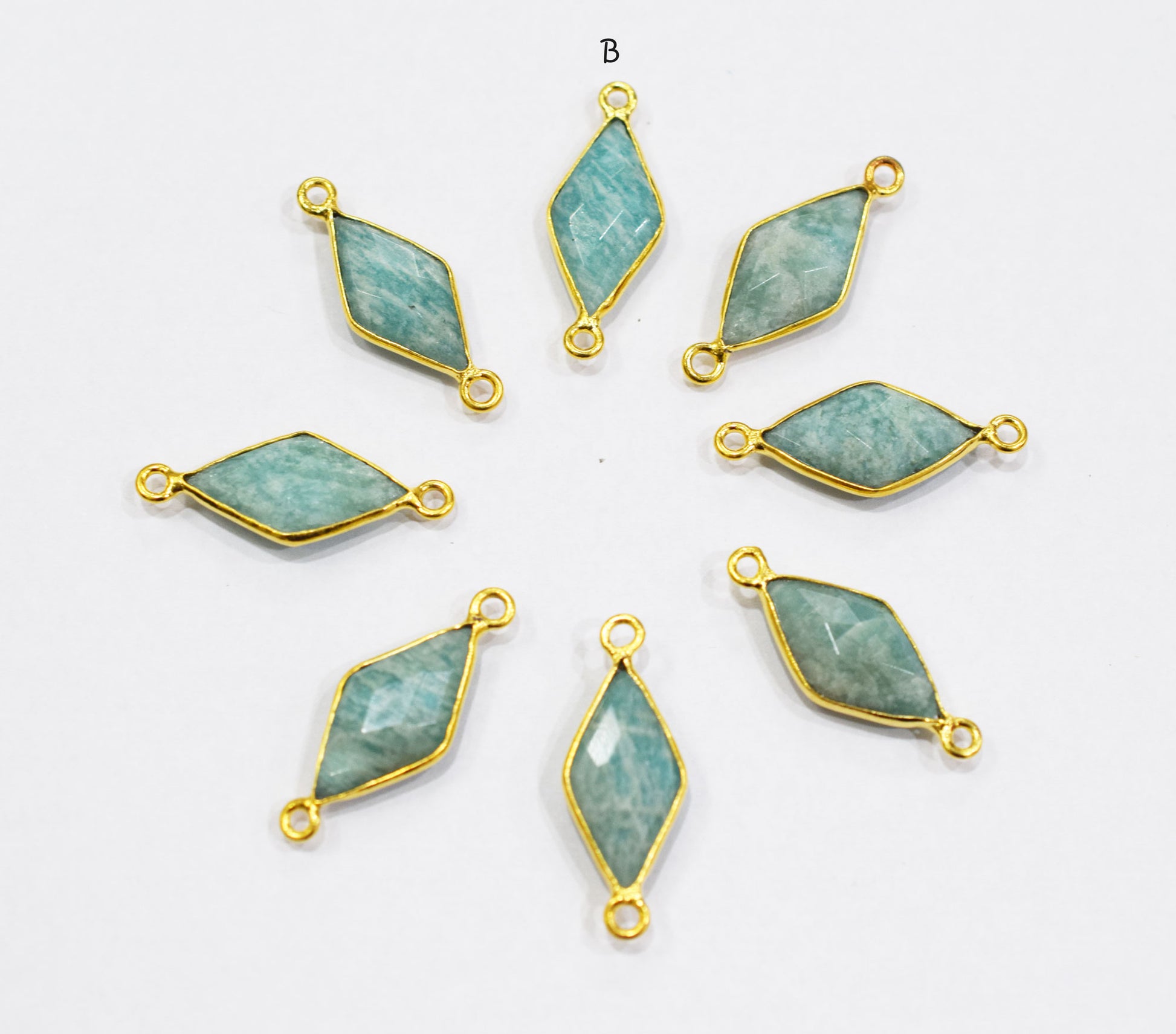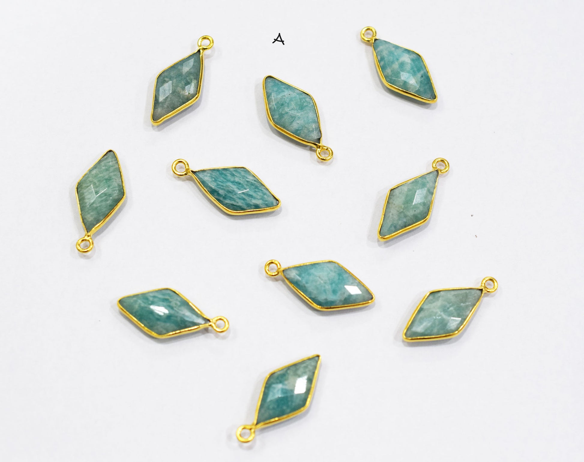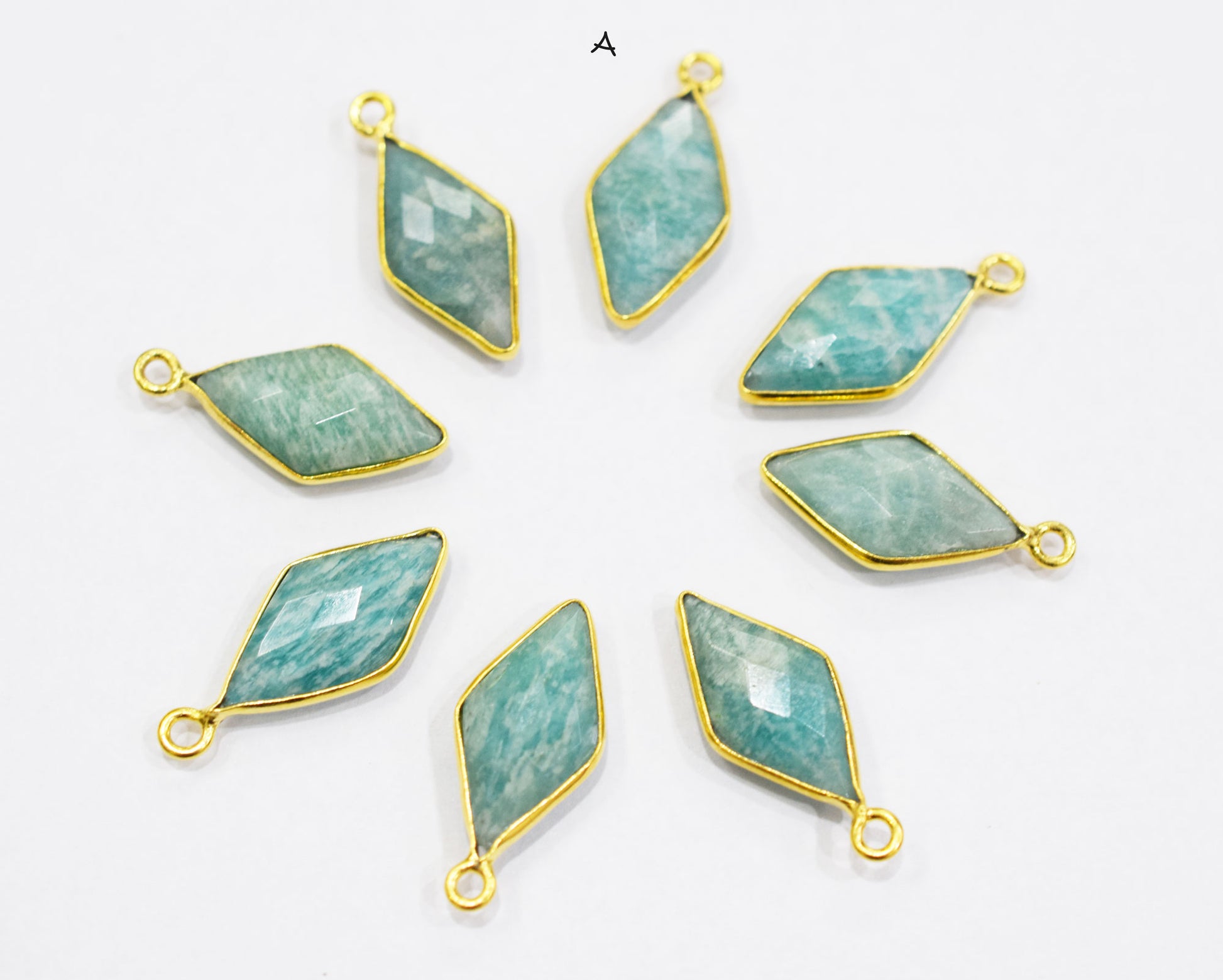 Amazonite Faceted Diamond Shape Connector , Amazonite Single And Double Bail Bezel Connector , Sold By Piece , 10x20 mm , RB-6637