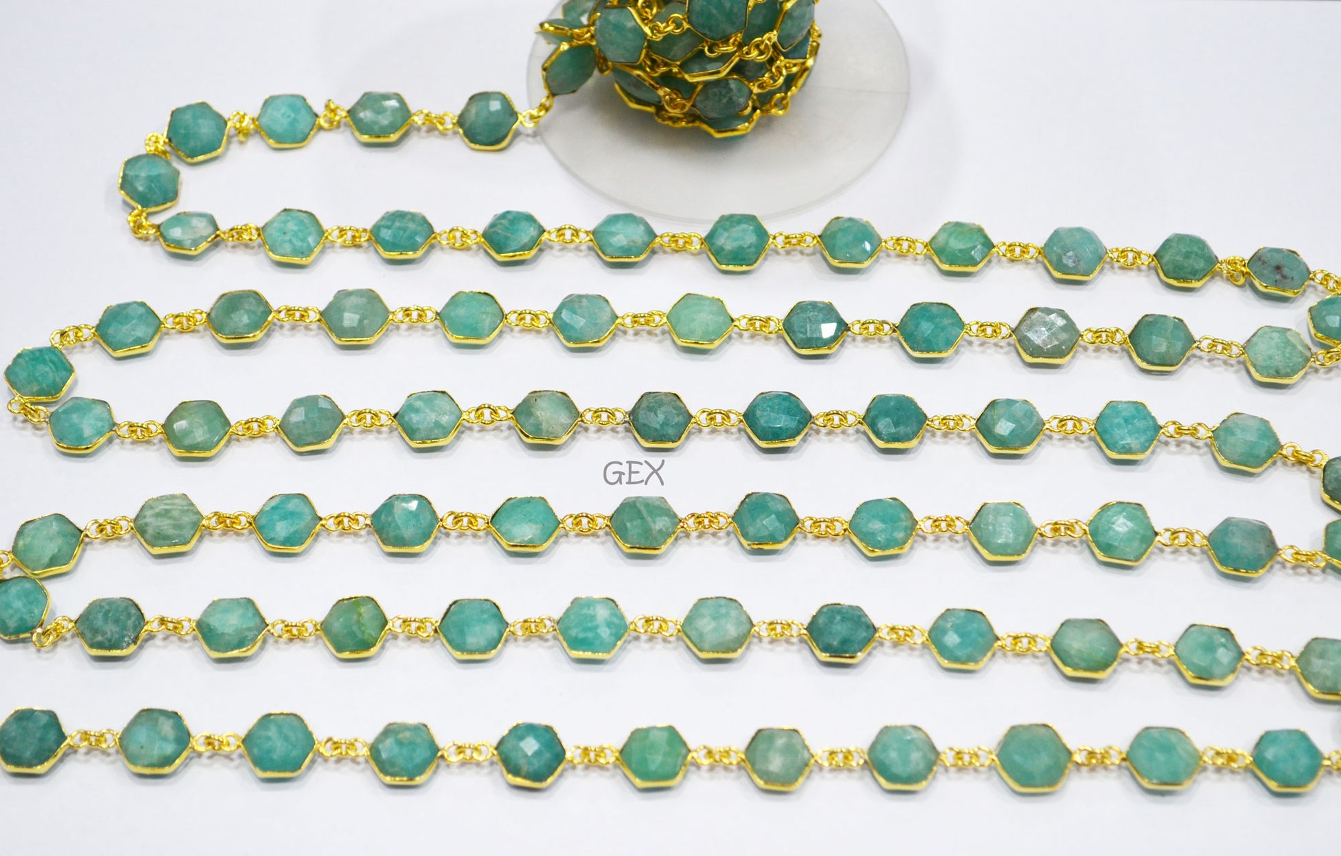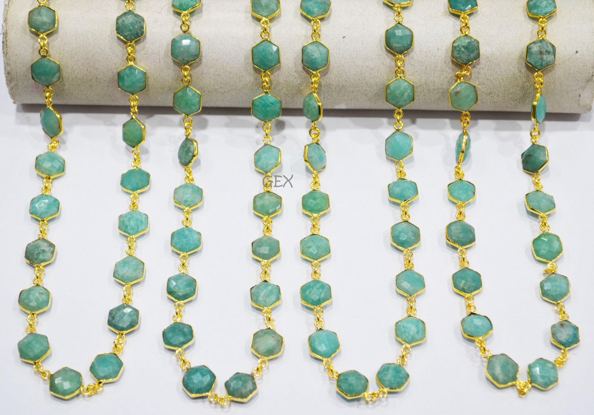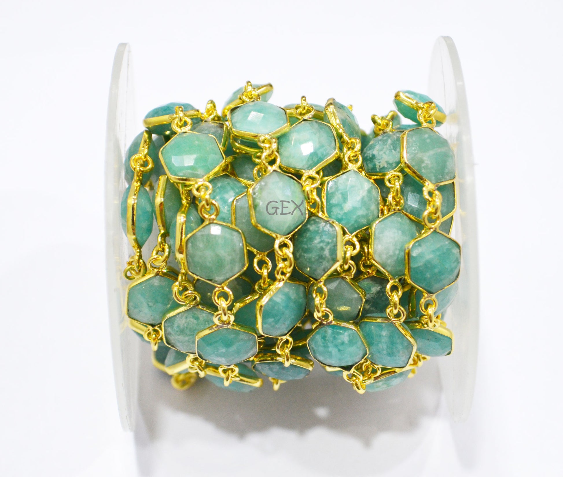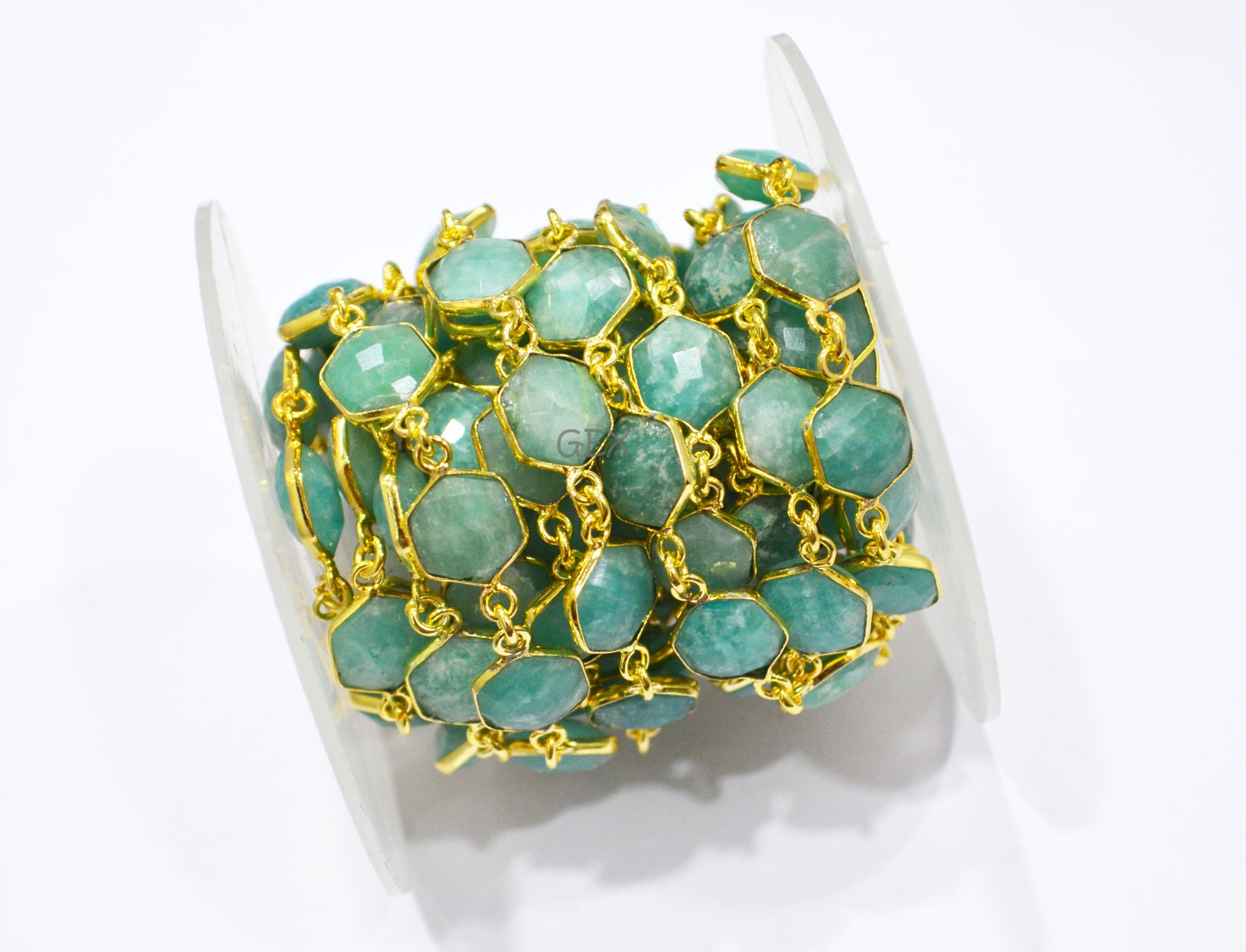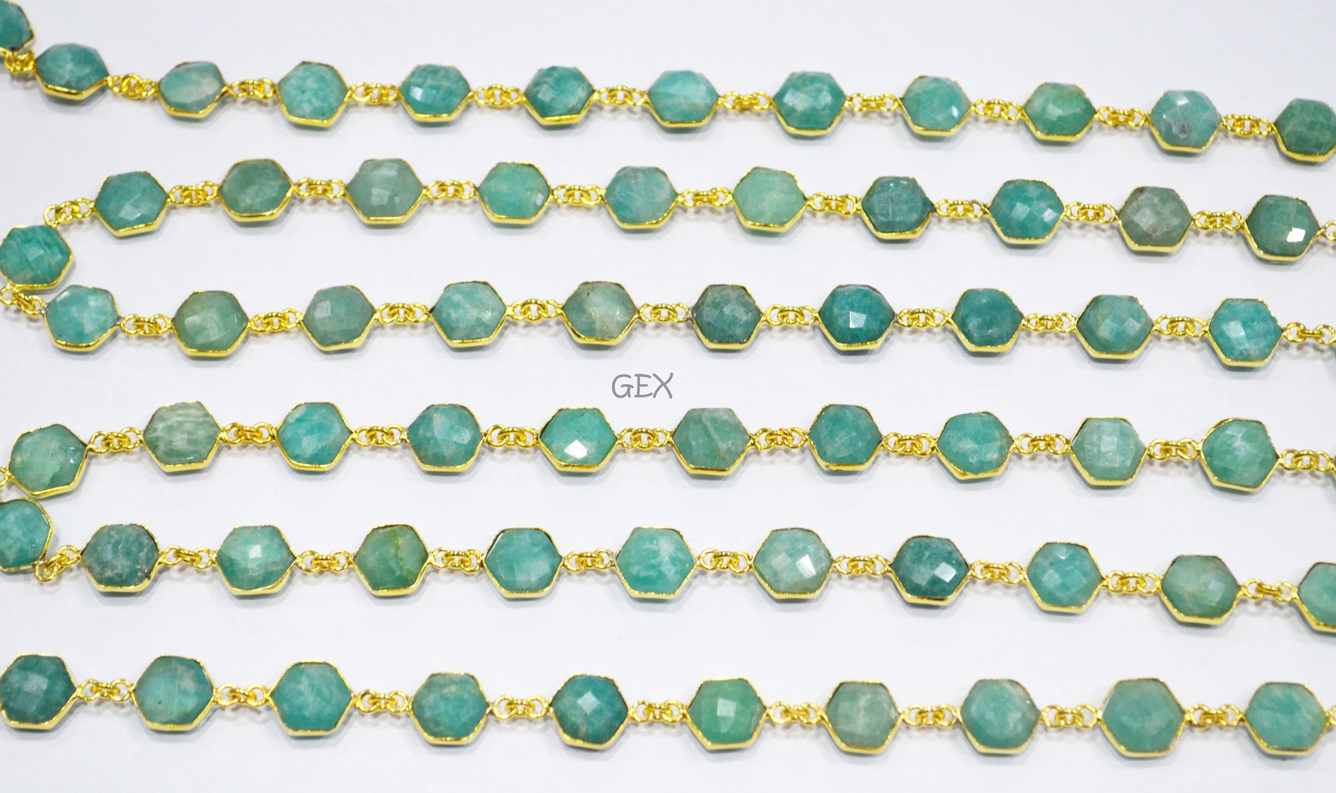 Amazonite Faceted Hexagon Shape Connector Chain , Amazonite Hexagon Shape Bezel Link Chain , 10 - 11 mm , RB-7219