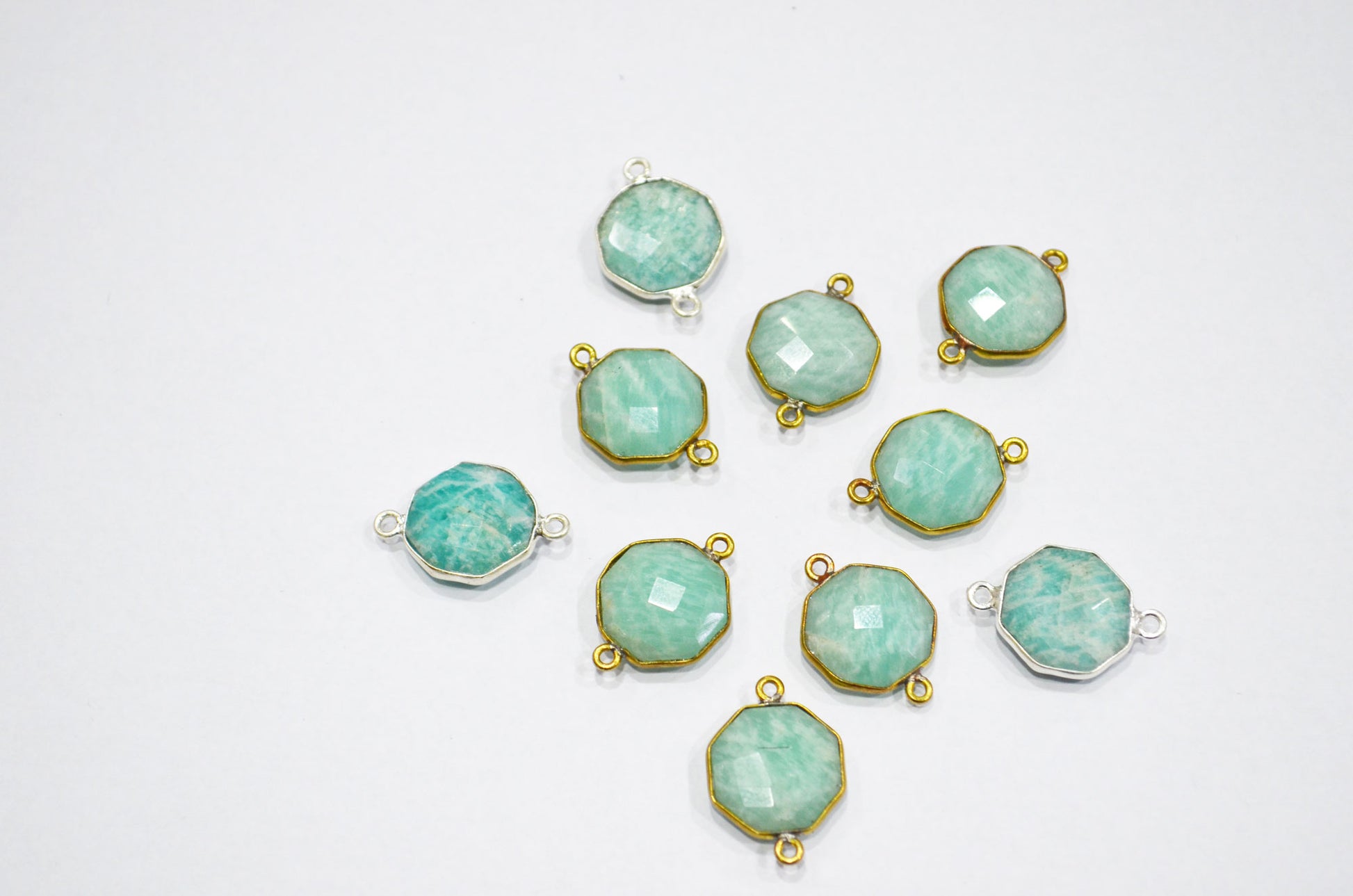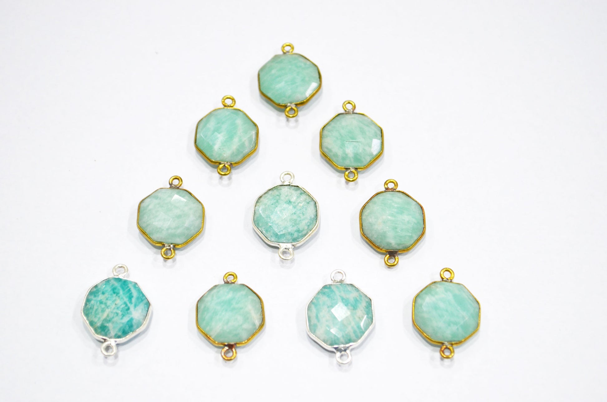 Amazonite Faceted Octagon Shape Double Bail Connector , Amazonite Octagon Shape Bezel Connector , Sold By Piece , 17x23 mm , RB-5405