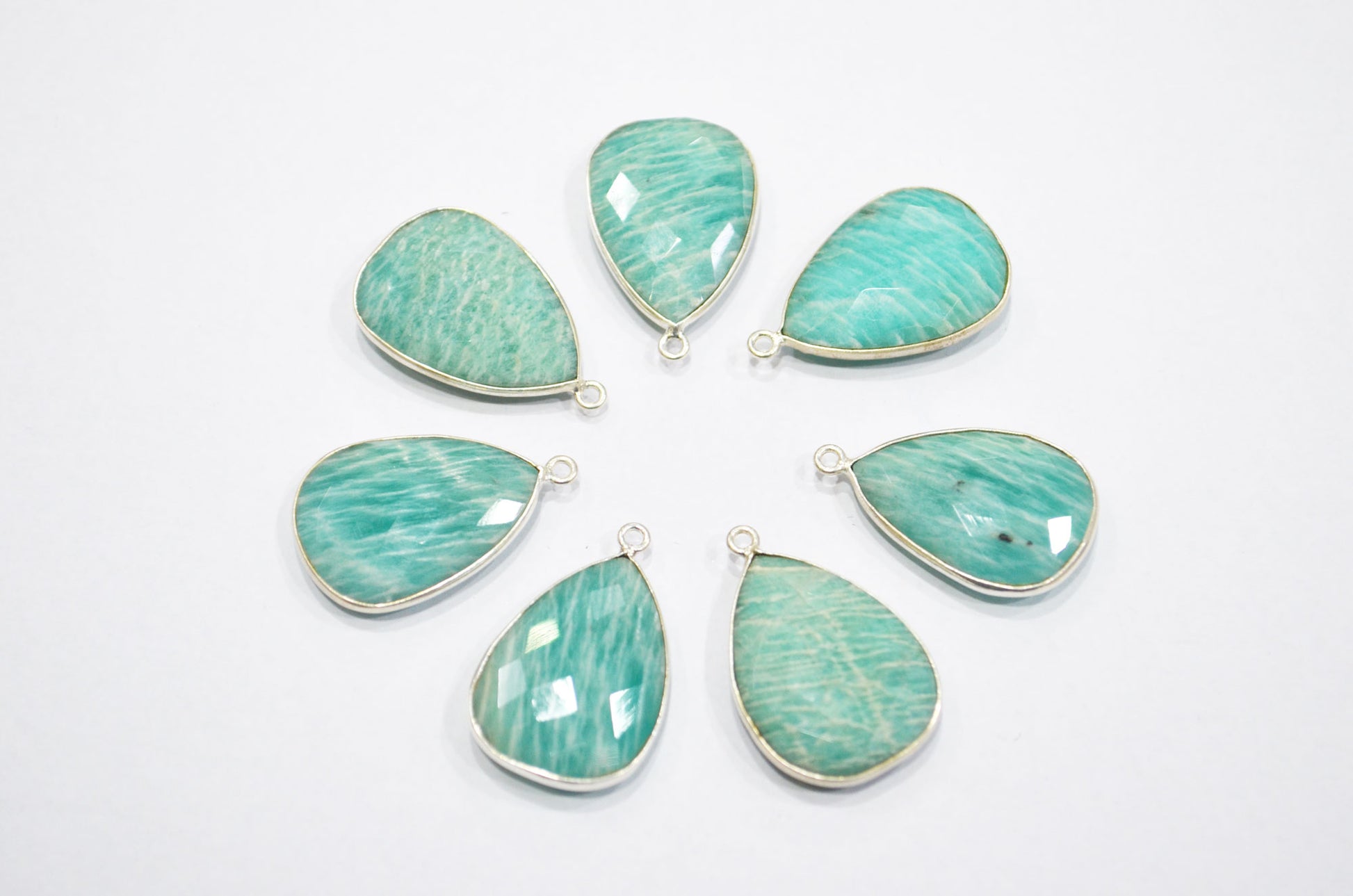 Amazonite Faceted Pear Shape Single Bail Connector , Amazonite Pear Shape Bezel Connector , Sold By Piece , 16x25 mm , RB-5405A