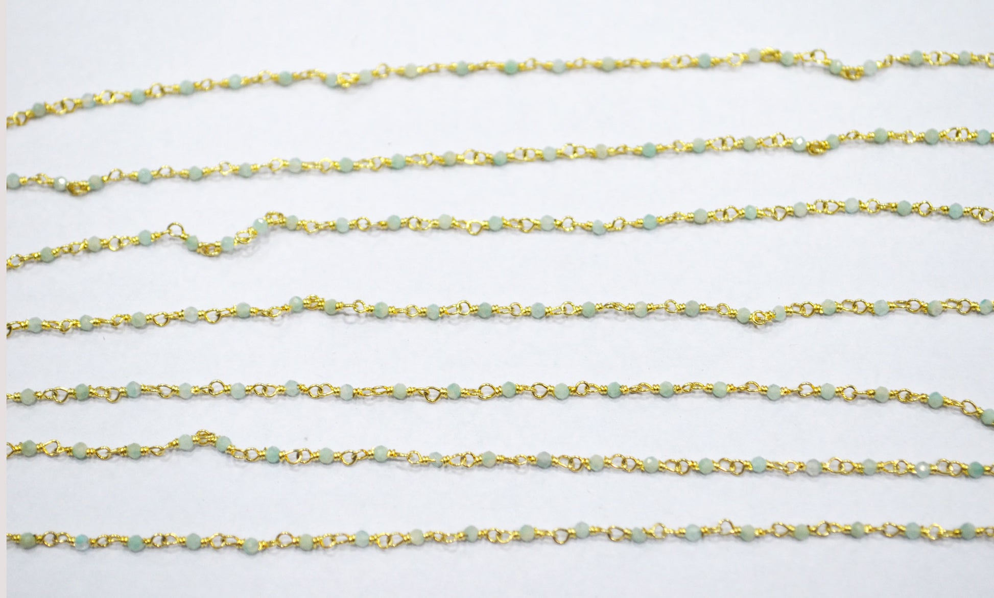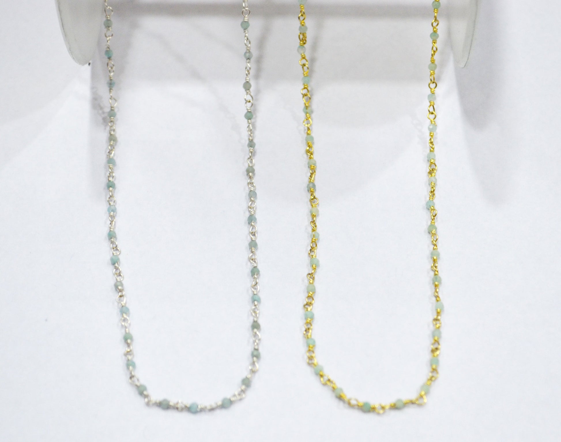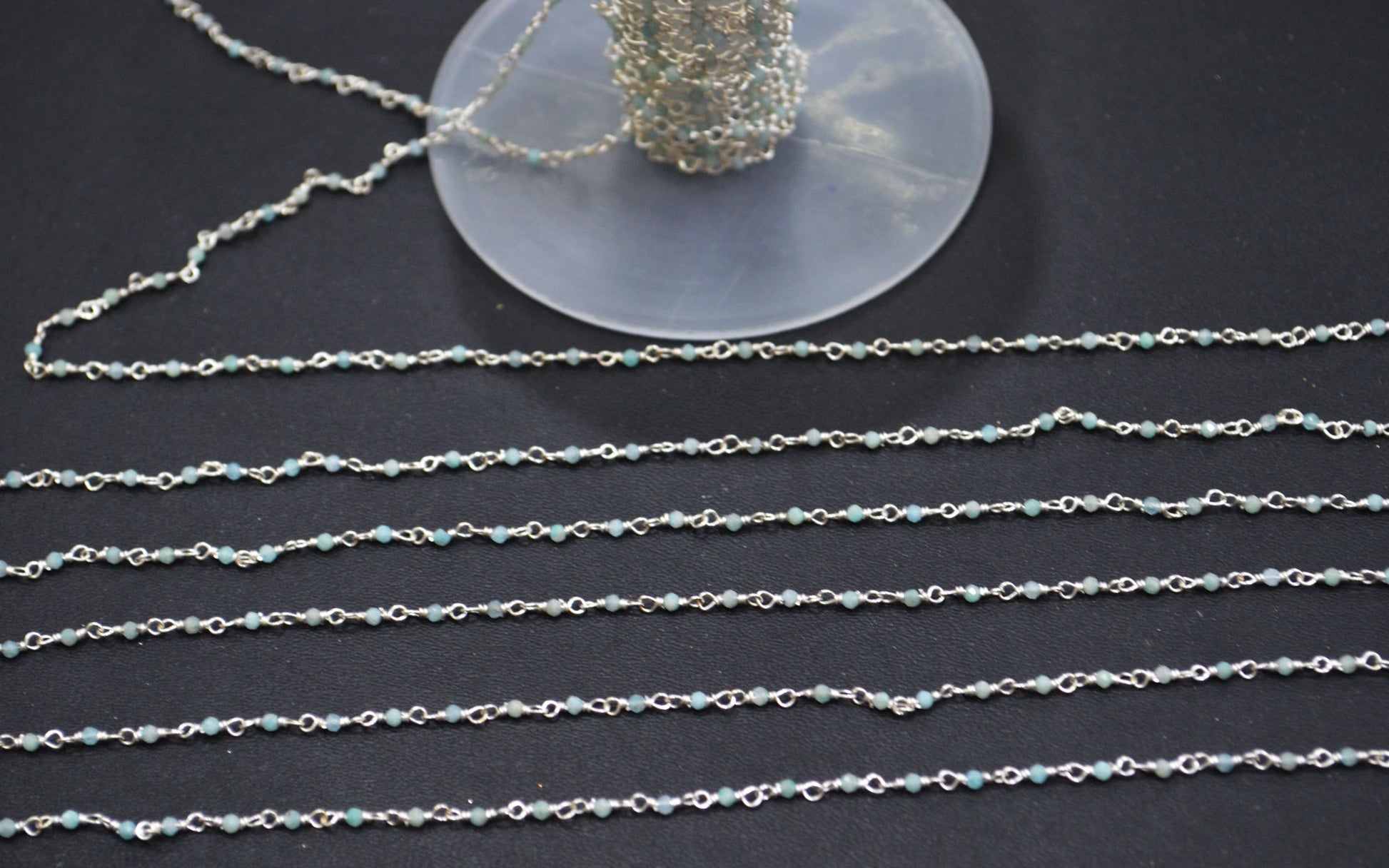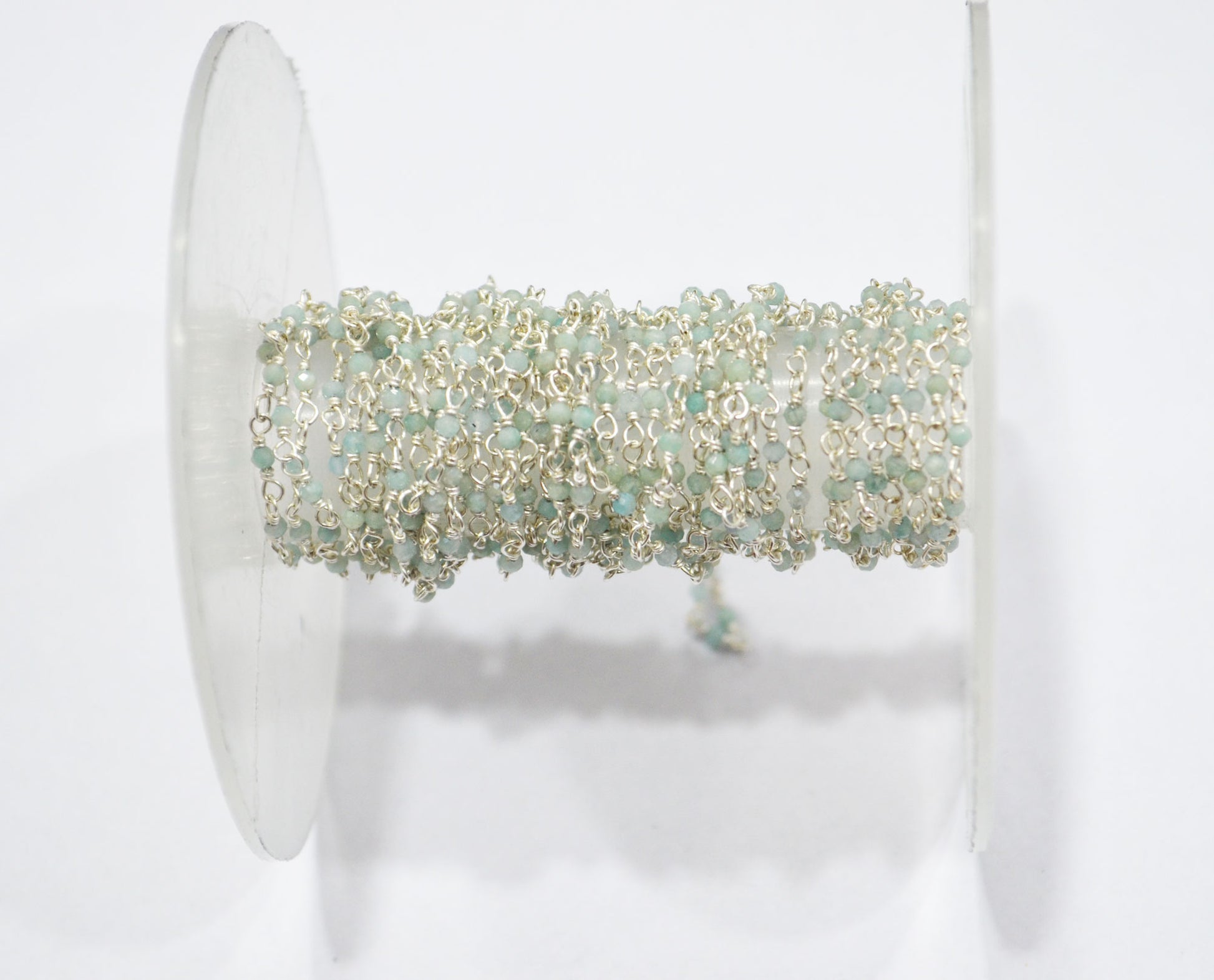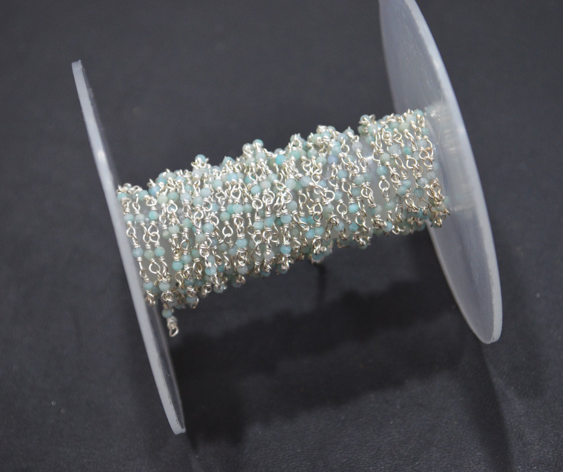 Amazonite Faceted Round Shape Rosary Beaded Chain , Amazonite Wire Wrapped Chain , Sold By Foot , 2 mm , RB-6339