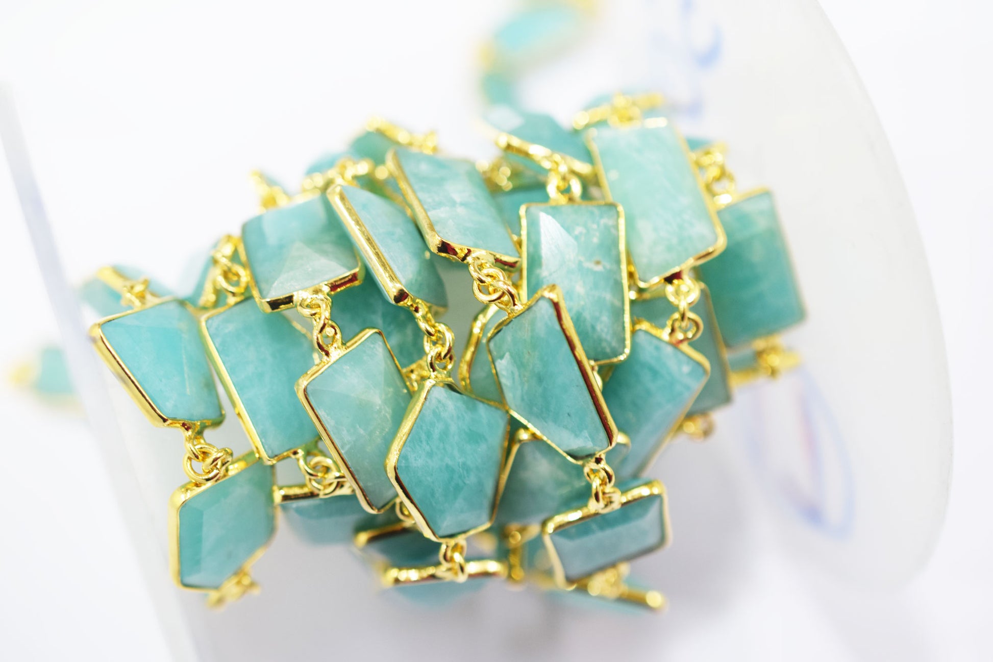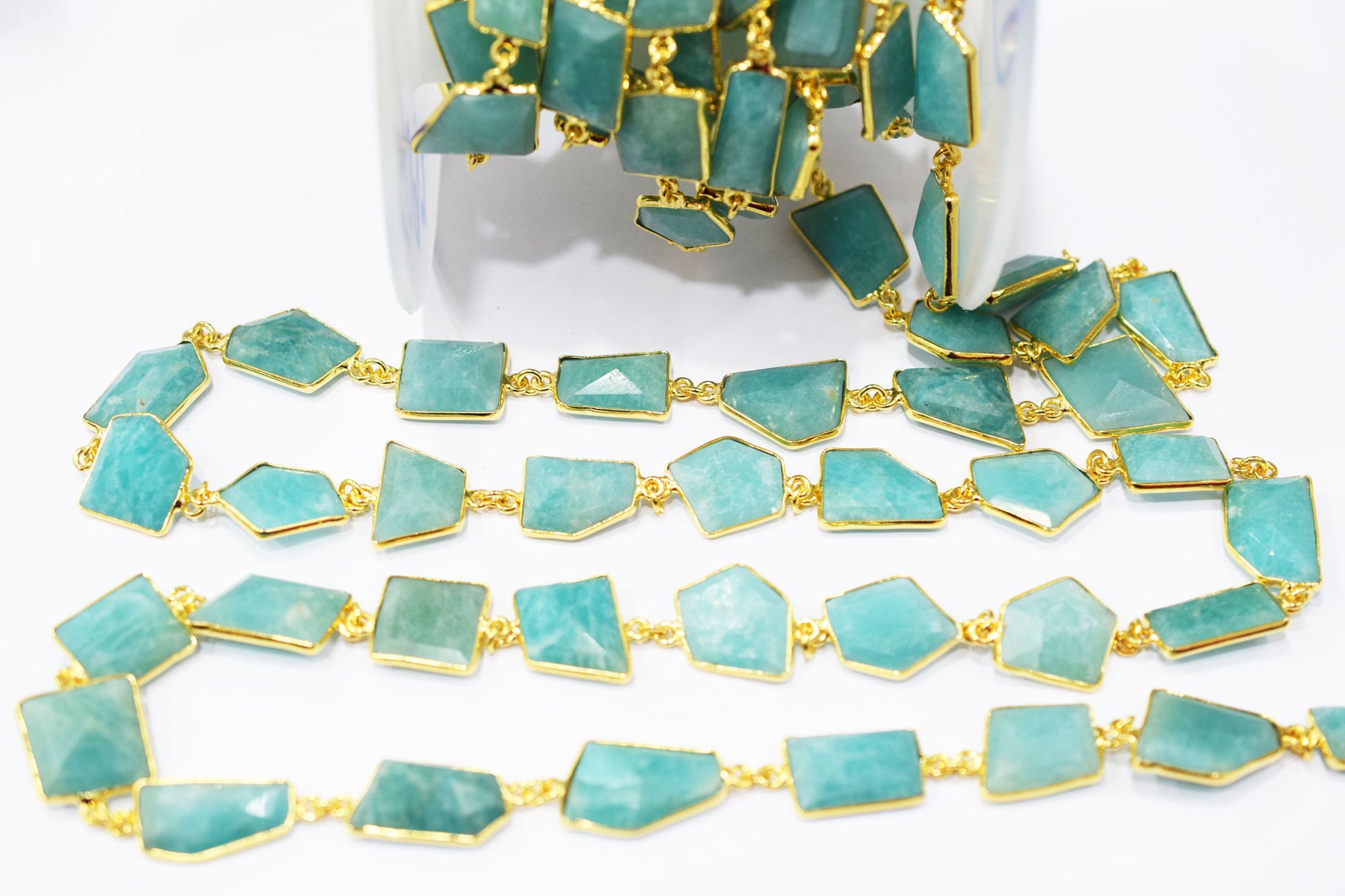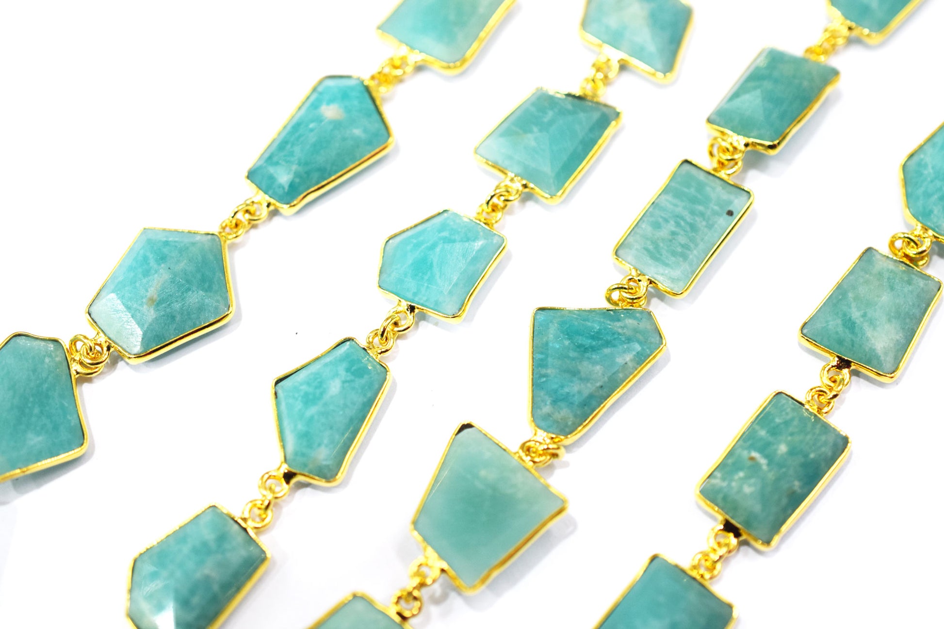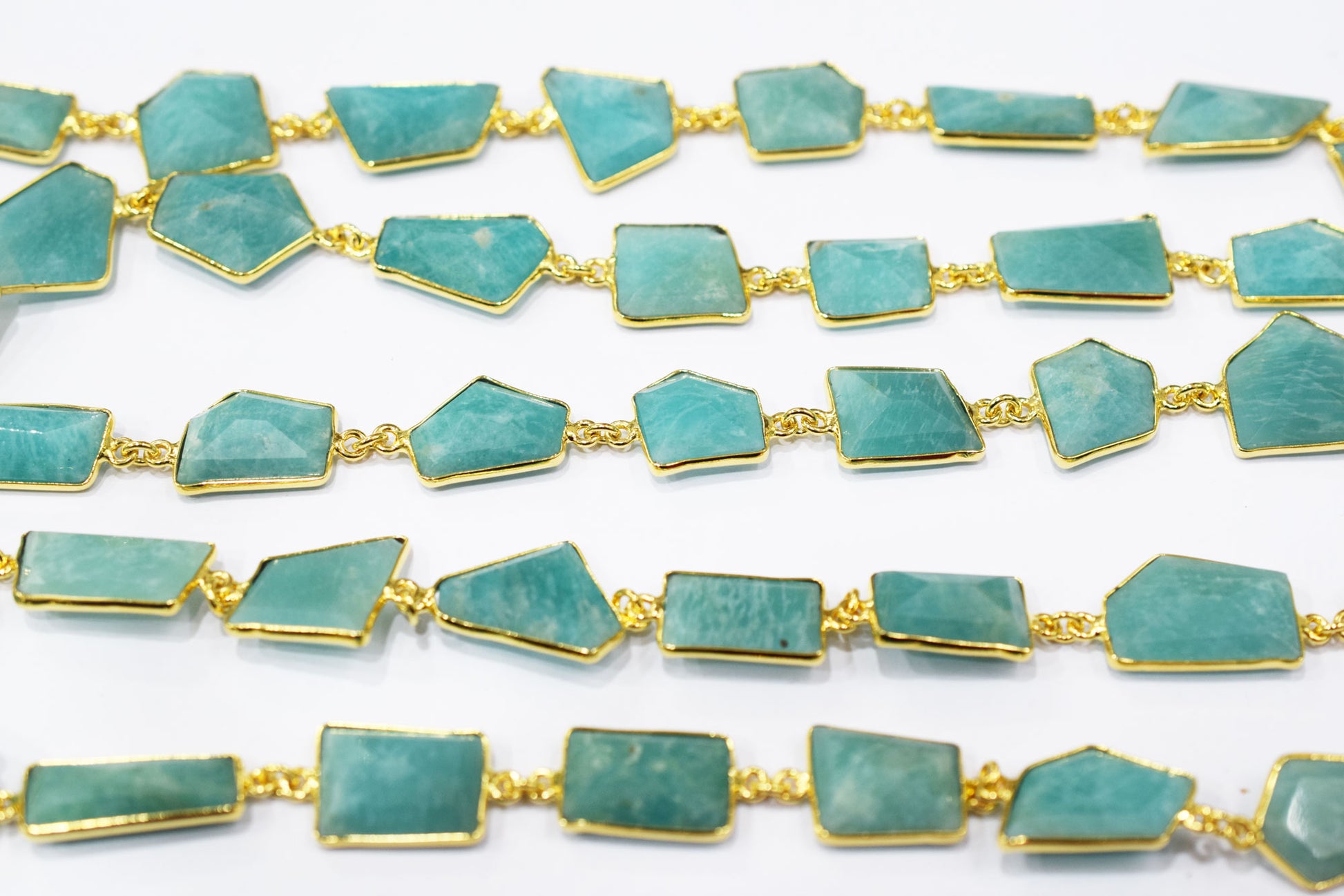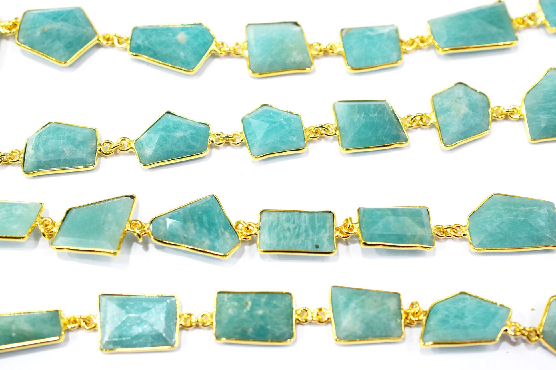 Amazonite Fancy Cut Shape Connector Chain , Amazonite Bezel Link Chain , 14x16 - 15x20 mm , RB-6472
