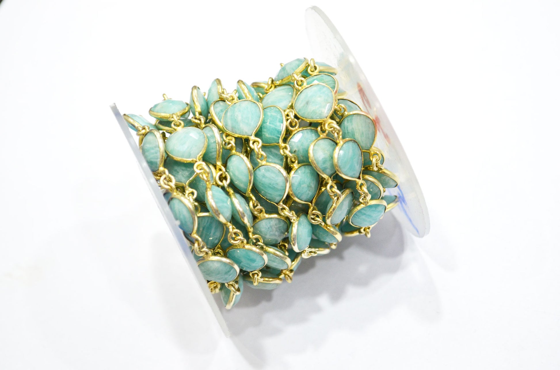 Amazonite Heart Shape Connector Chain , Amazonite Faceted Heart Shape Bezel Link Chain , 10 mm , RB-5354