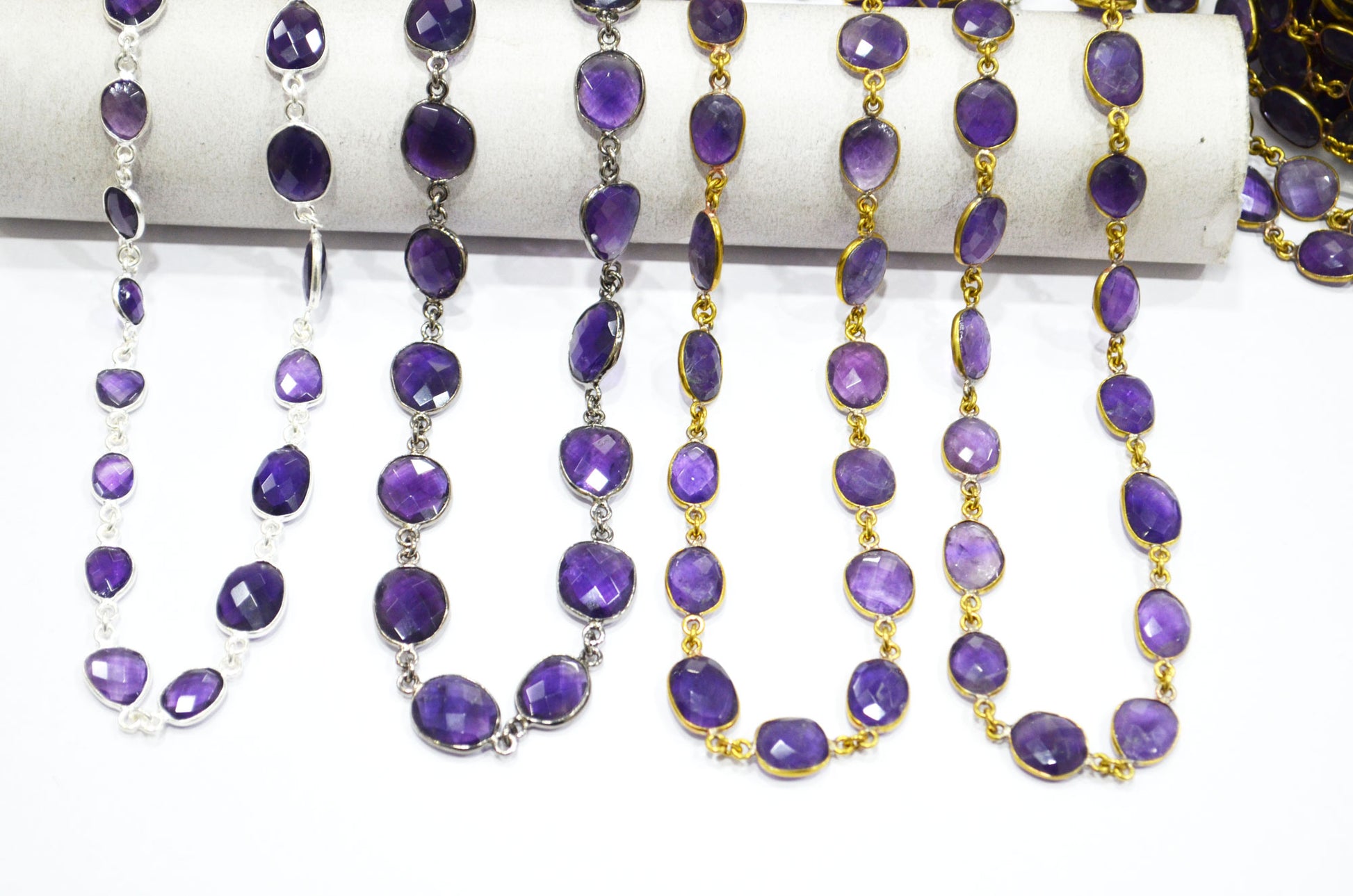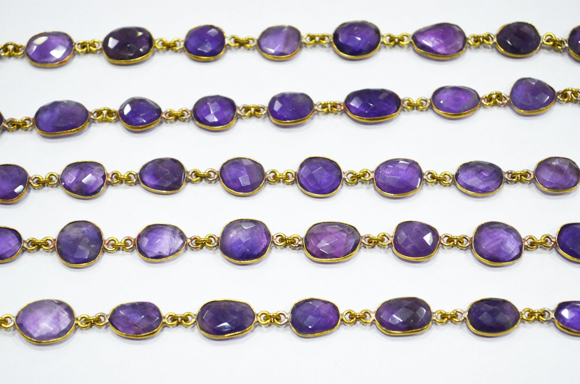 Amethyst Faceted Free Form Shape Connector Chain , Amethyst Slice Shape Bezel Link Chain , 12 - 15 mm , RB-5365A