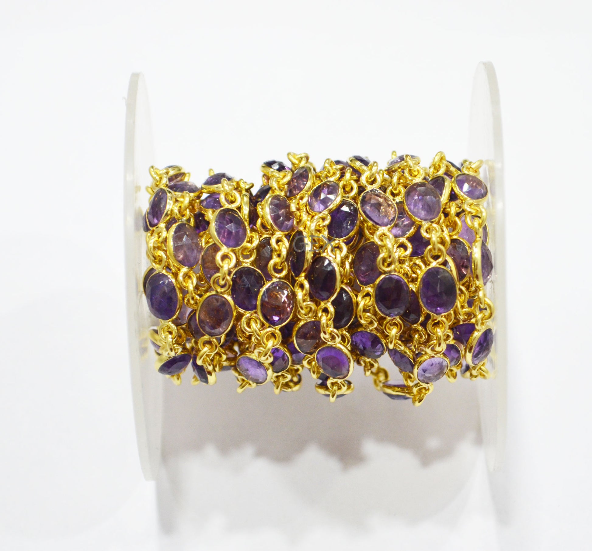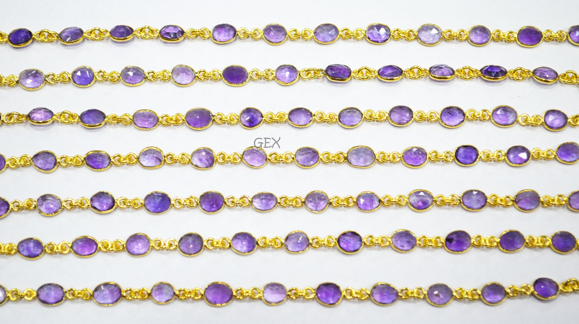 Amethyst Faceted Slice Shape Connector Chain , 6 - 8 mm , RB-7190