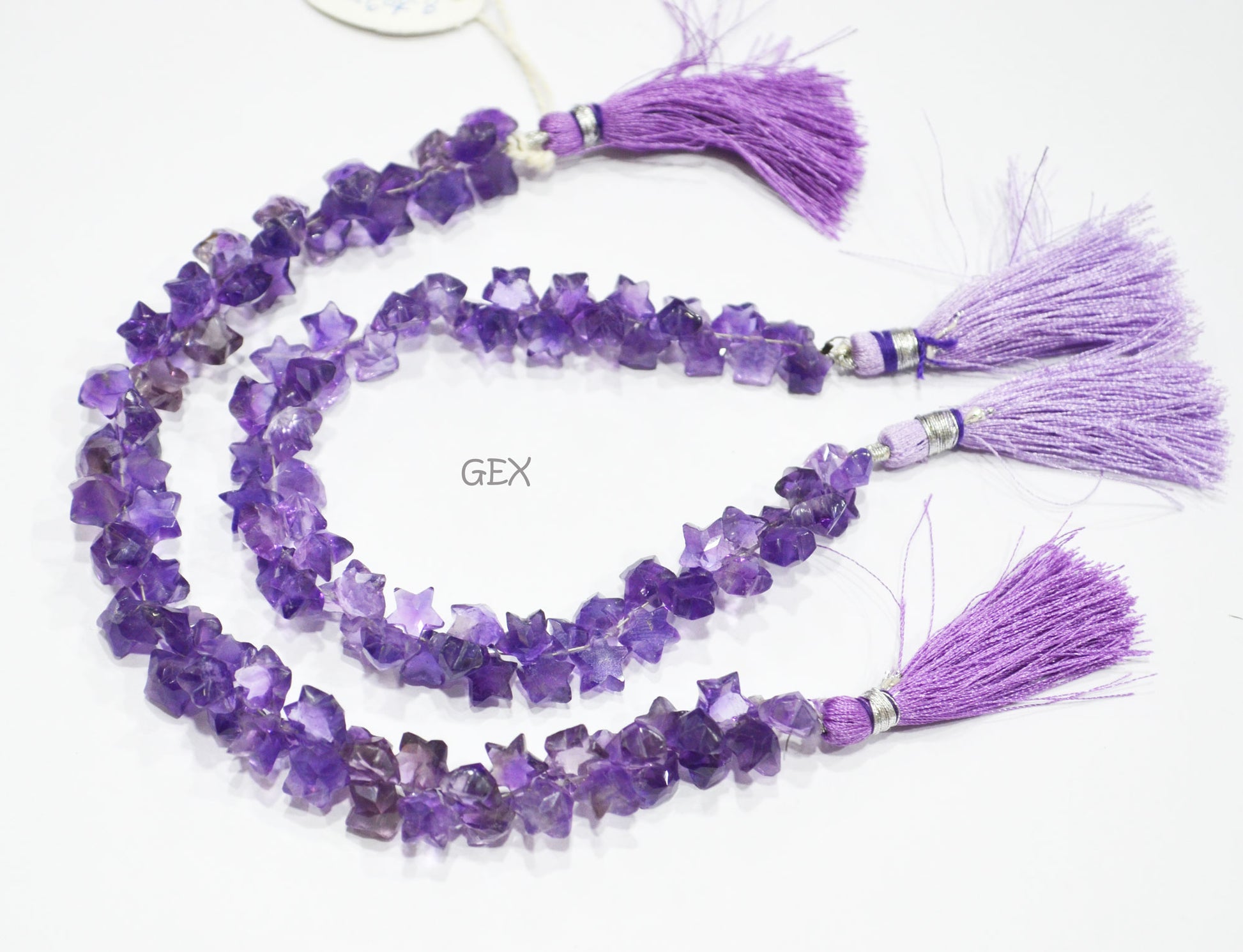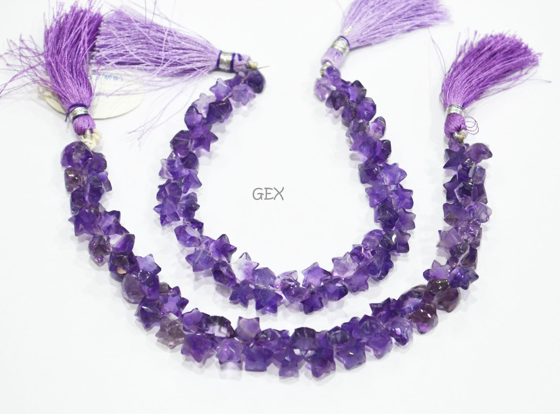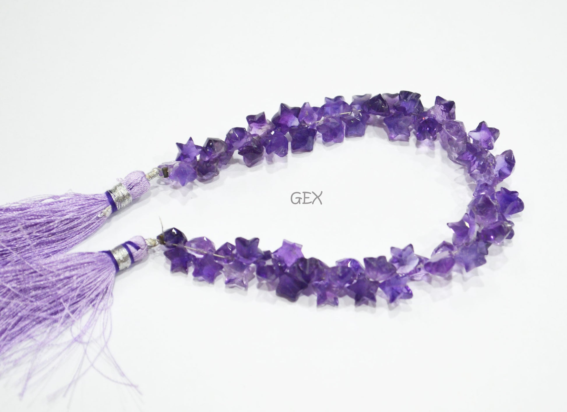 Amethyst Faceted Star Shape Beads , Amethyst Star Shape Briolettes , Sold By Strand , 8 - 9 mm , 8 Inches , BL-2682