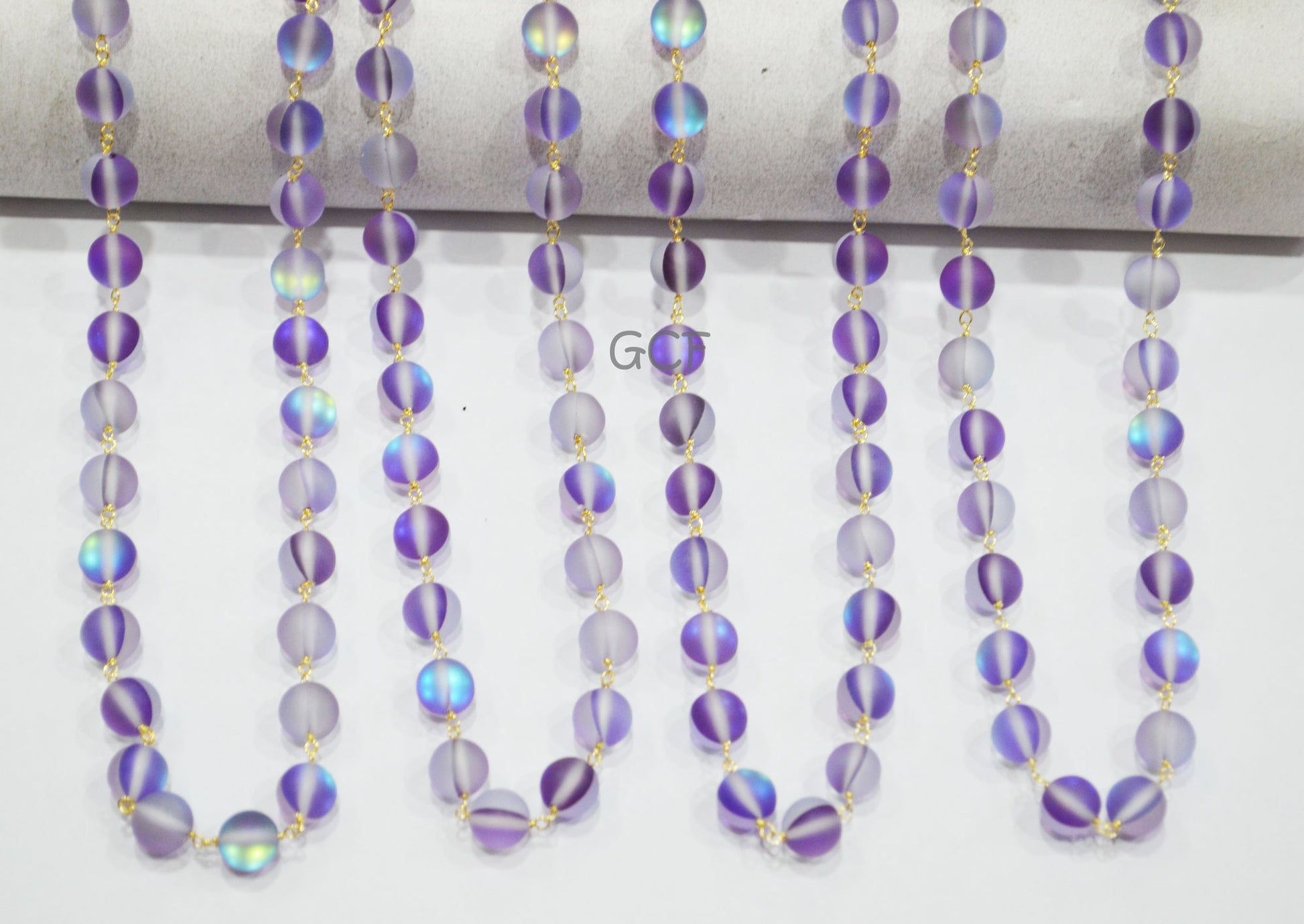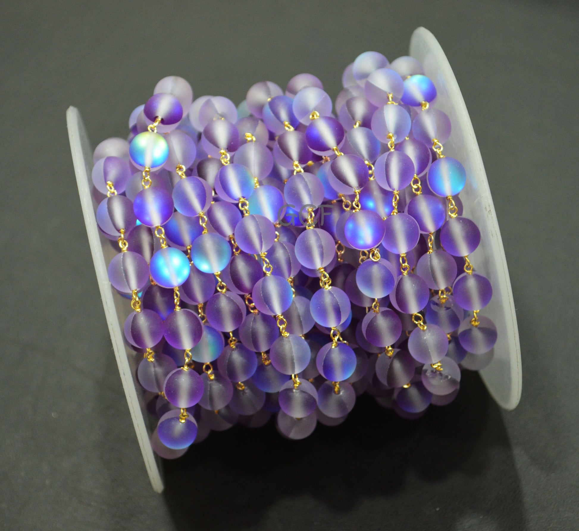 Amethyst Moonstone Doublet Hydro Glass Smooth Rosary Chain , Amethyst Moonstone Doublet Round Shape Wire Wrapped Chain , 8 mm , RB-7108