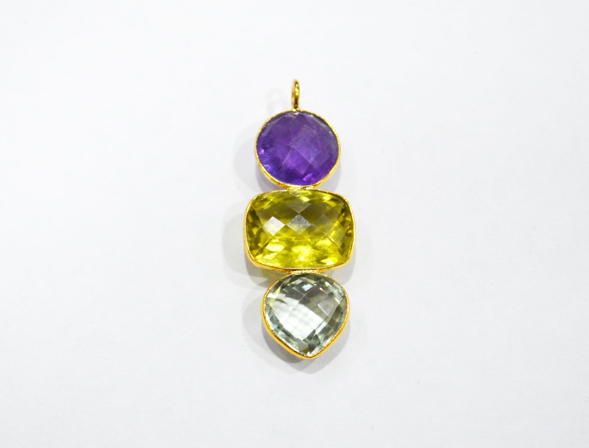 Amethyst Faceted Fancy Shape Connector , Green Amethyst And Lemon Quartz Faceted Single Bail Bezel Connector , Sold By Piece , 44 mm , 32497
