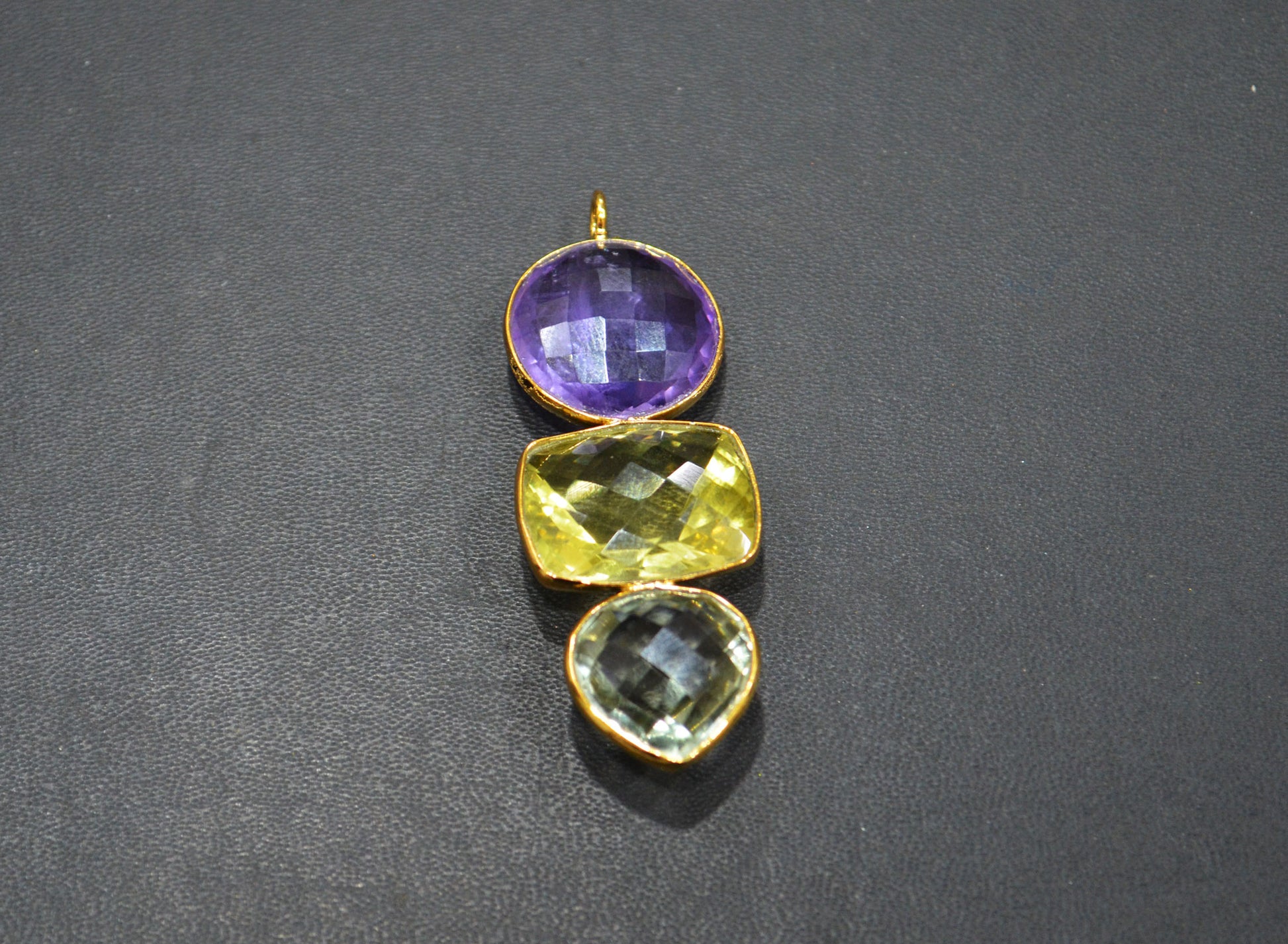 Amethyst Faceted Fancy Shape Connector , Green Amethyst And Lemon Quartz Faceted Single Bail Bezel Connector , Sold By Piece , 55 mm , 32498