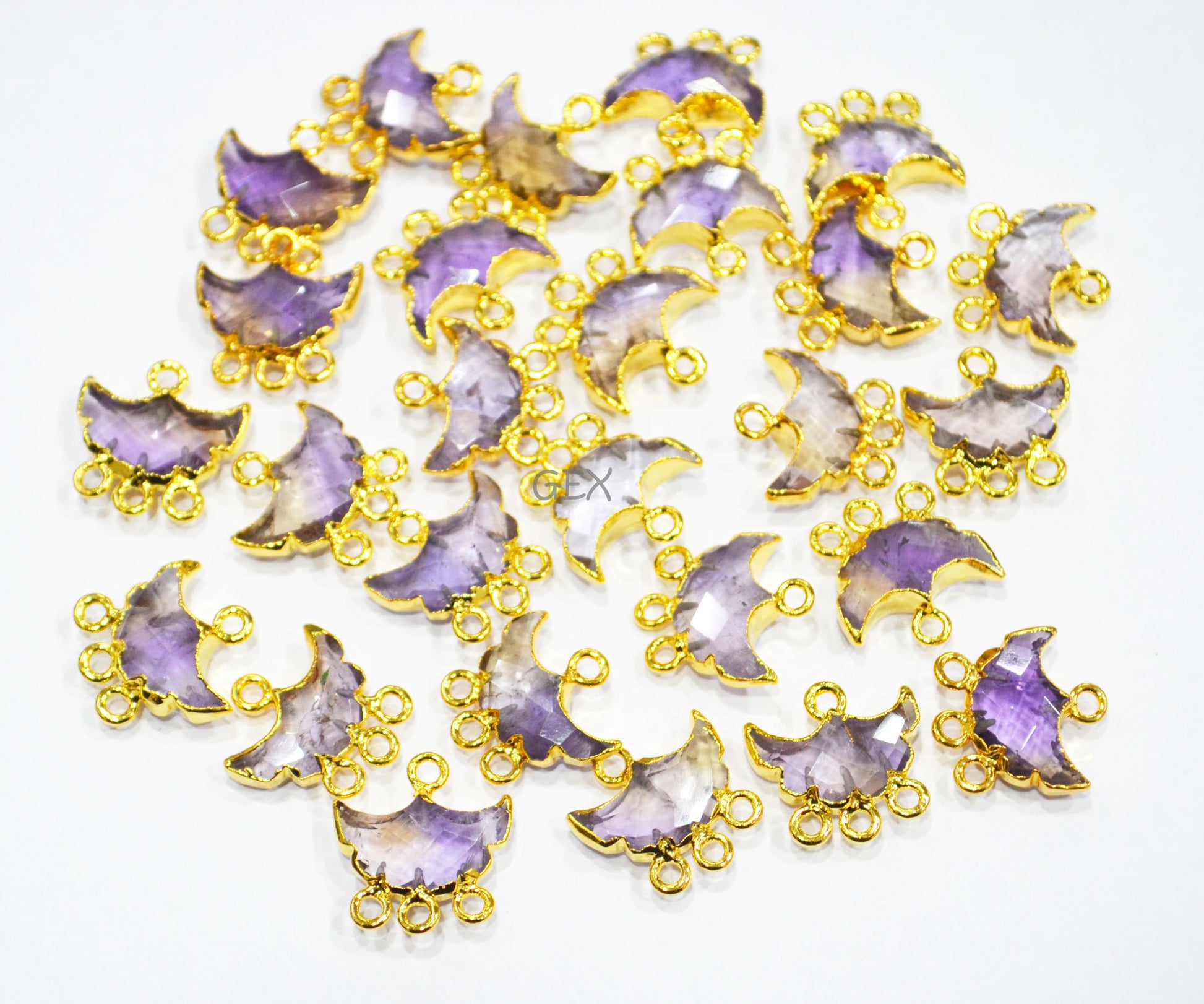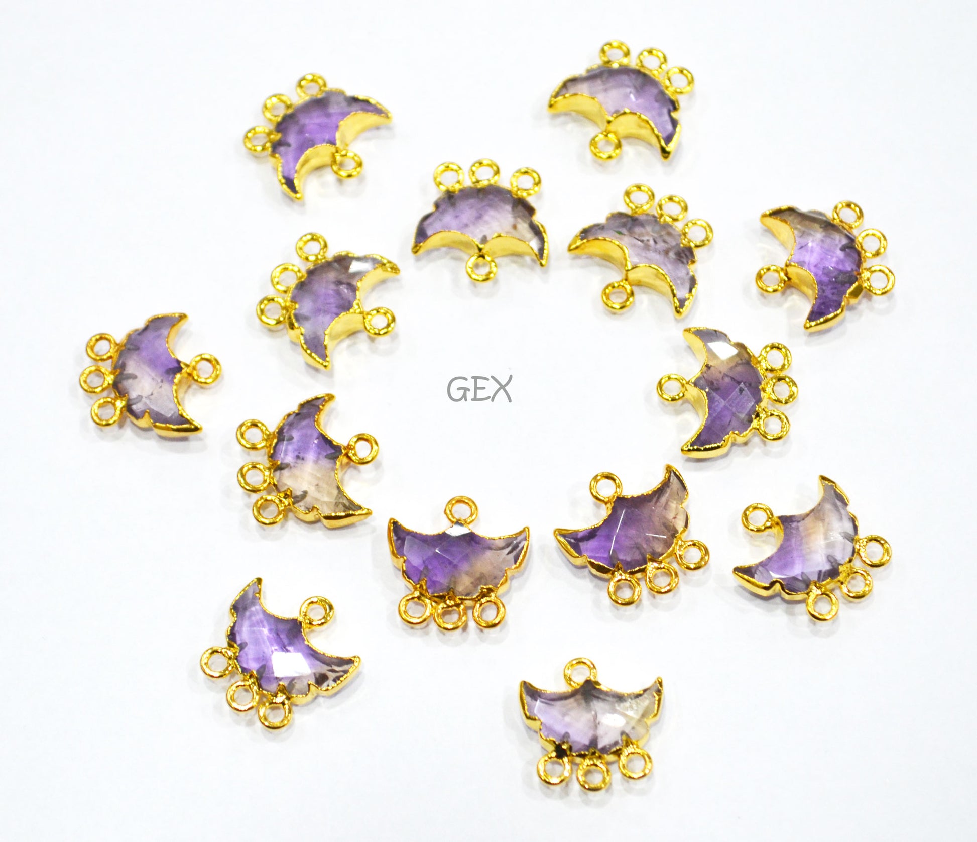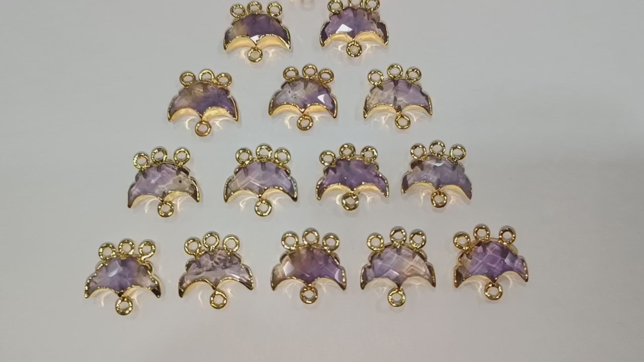 Ametrine Electroplated Half Moon Shape Connector , Ametrine Four Bail Faceted Connector Charm , Sold By Piece , 15 - 16 mm , 31916