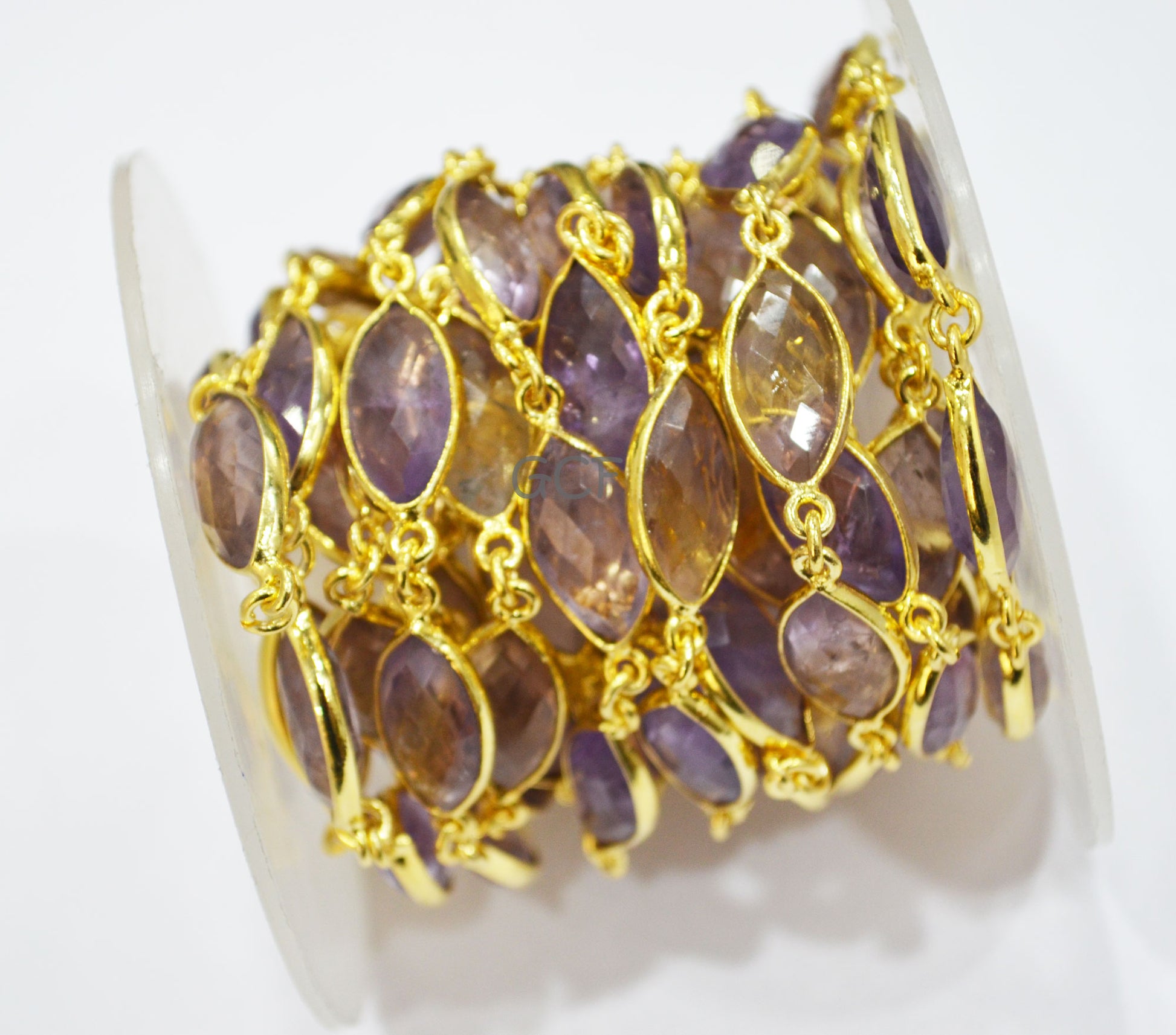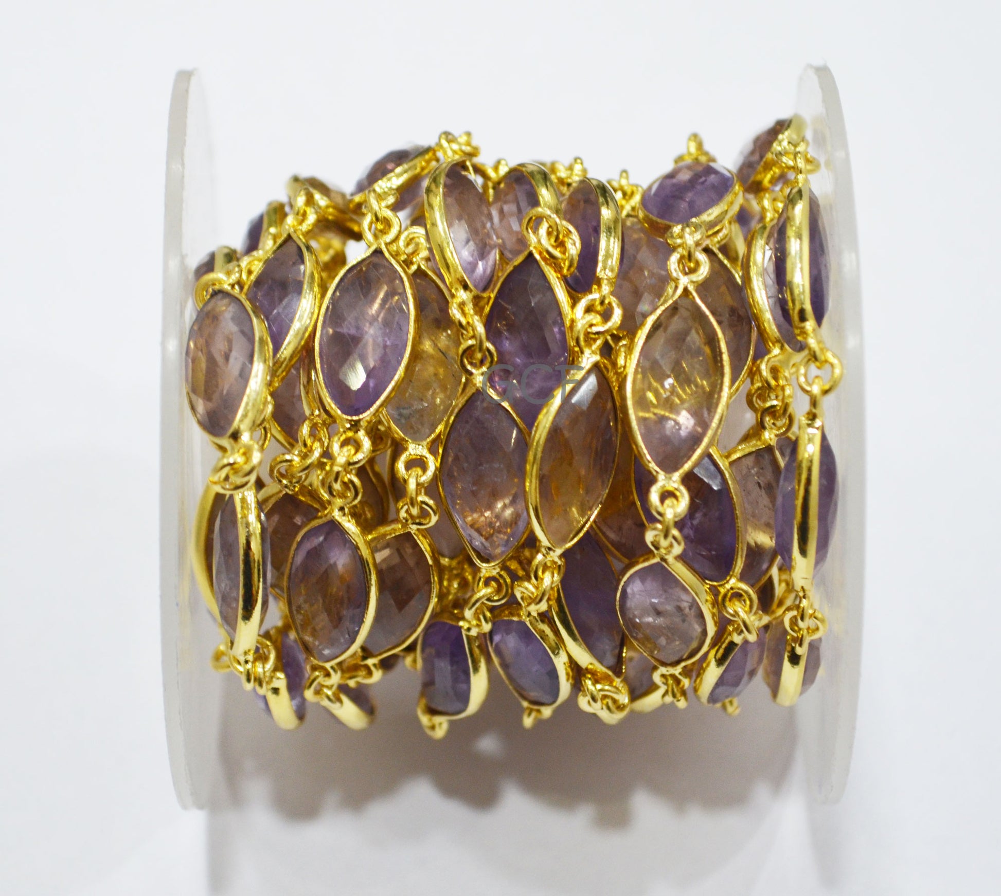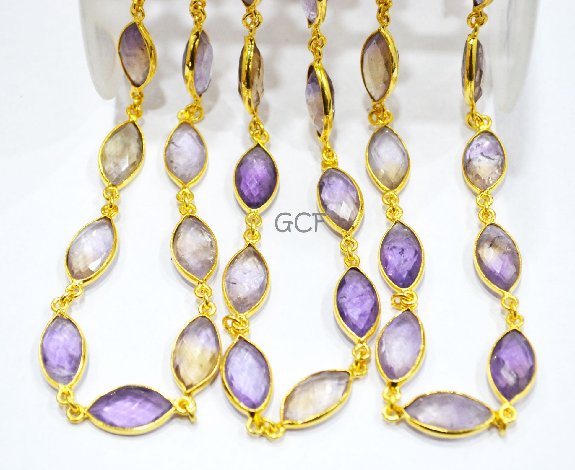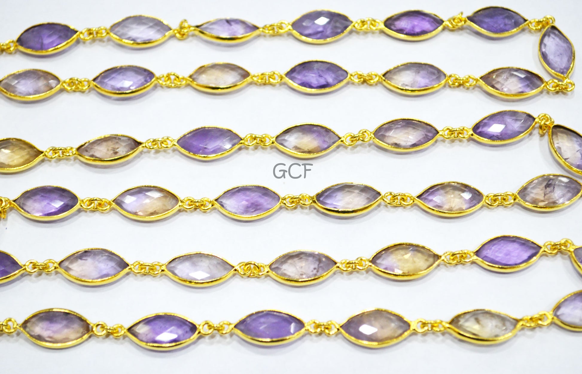 Ametrine Faceted Marquise Shape Connector Chain , Ametrine Marquise Shape Bezel Link Chain , 8x15 - 9x16 mm , 6884