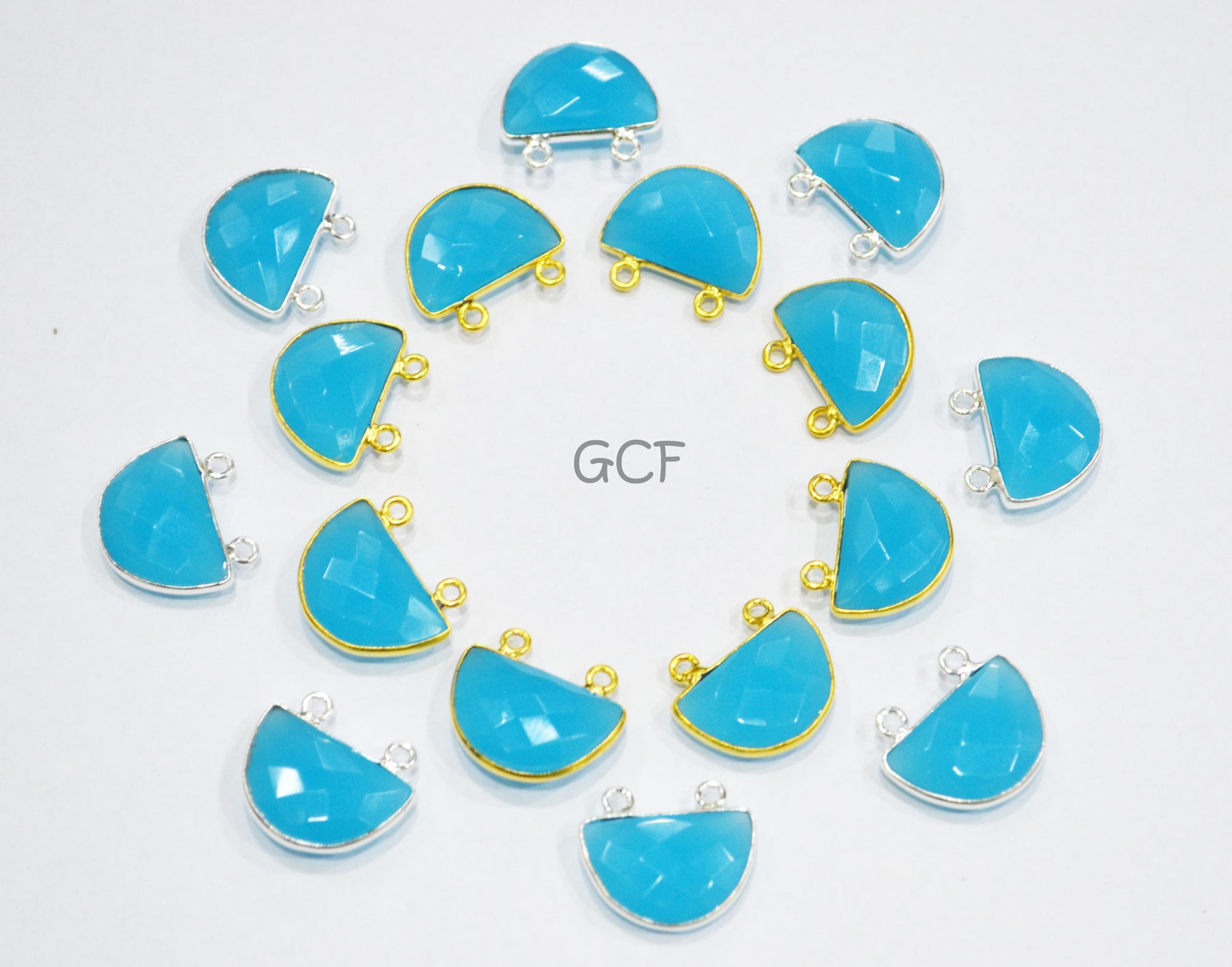 Aqua Blue Hydro Quartz Faceted Half Moon Shape Connector , Aqua Blue Hydro Glass Double Bail Connector , Sold By Piece , 13x19 mm , RB-7093