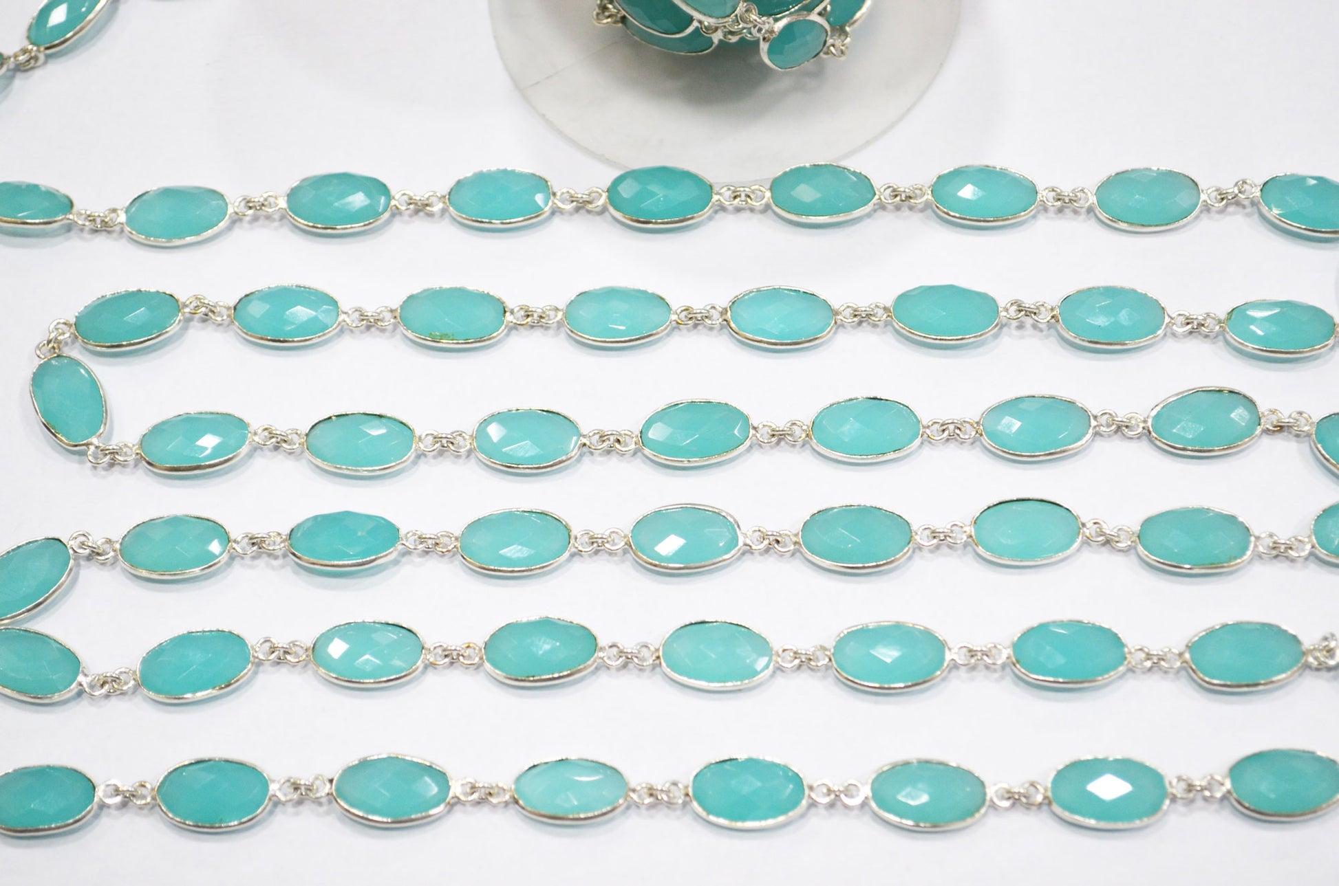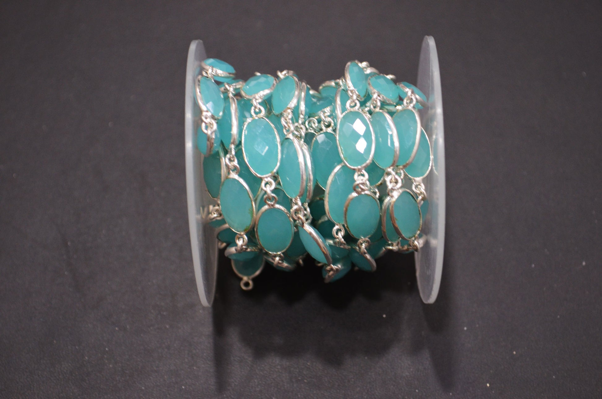 Aqua Blue Hydro Quartz Faceted Oval Shape Connector Chain , Aqua Blue Hydro Quartz Bezel Link Chain , 9x13 mm , RB-5698