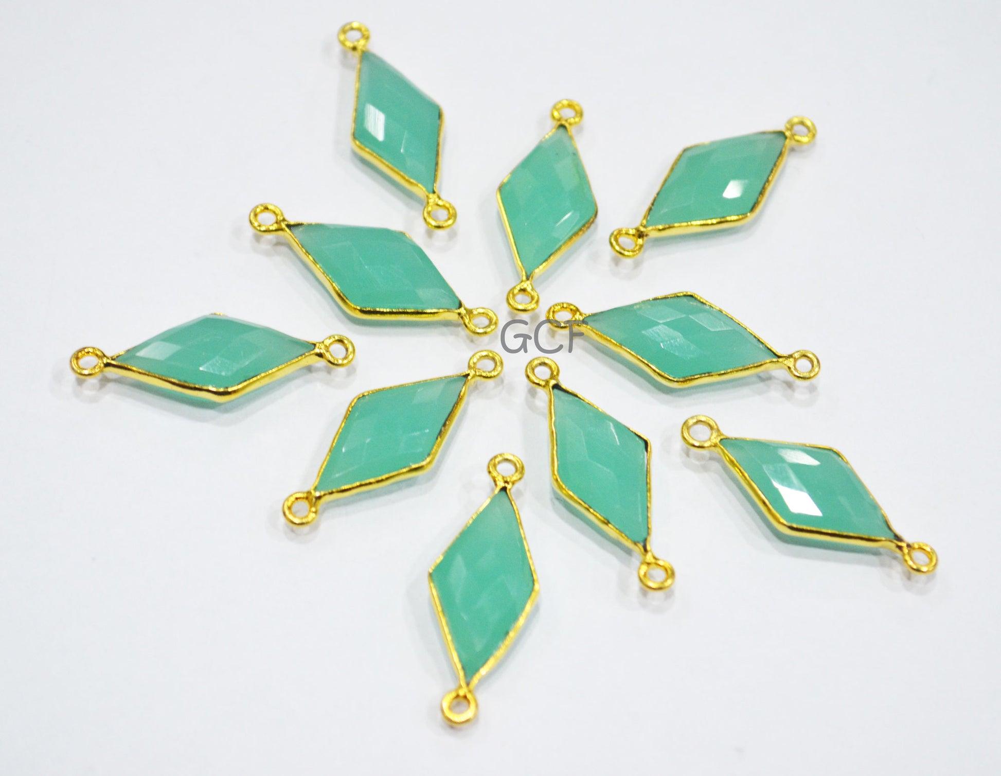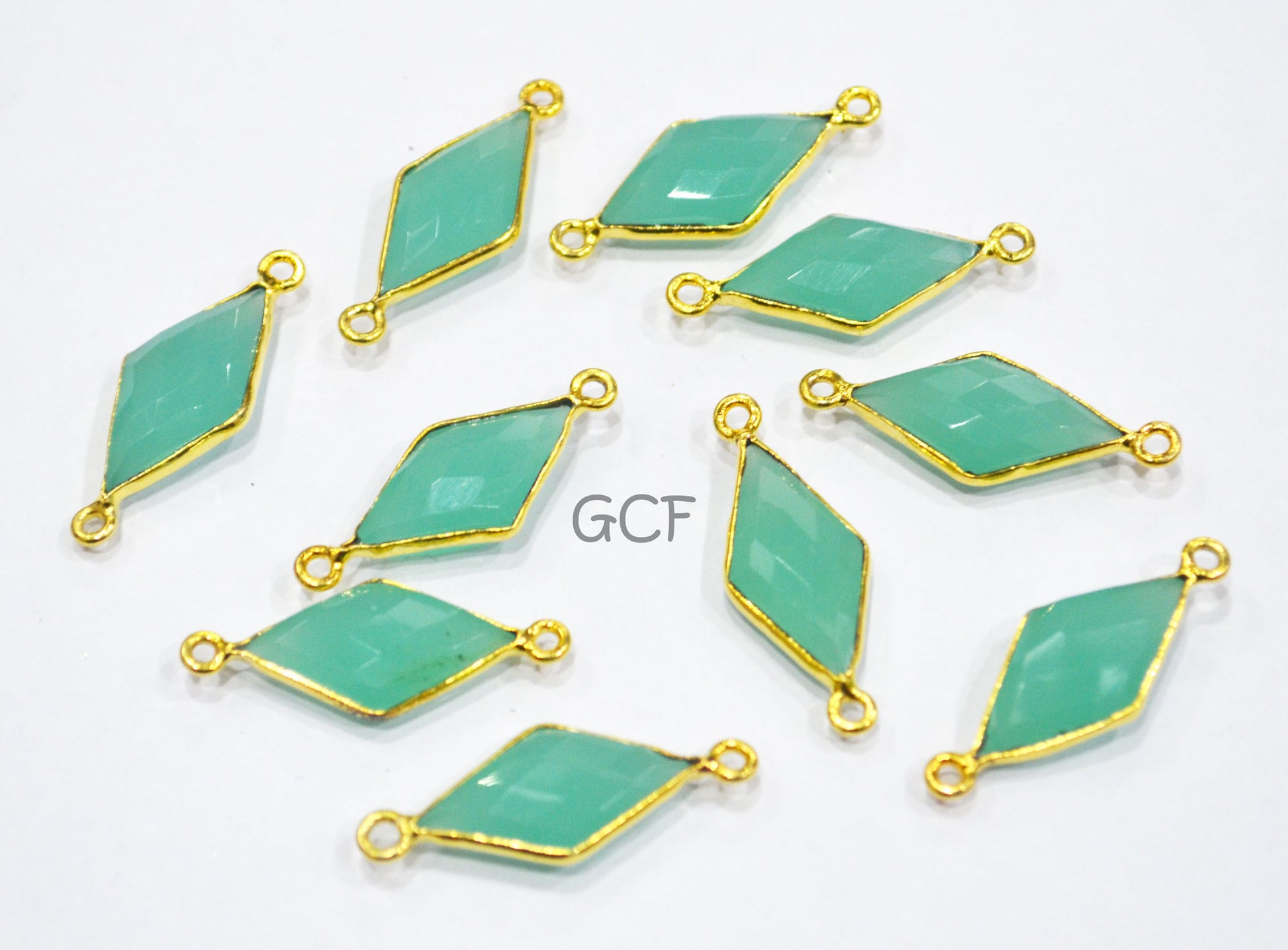 Aqua Chalcedony Diamond Shape Single And Double Bail Connector ,Aqua Chalcedony Hydro Glass Faceted Charm,Sold By Piece , 10x20 mm ,RB-6944B