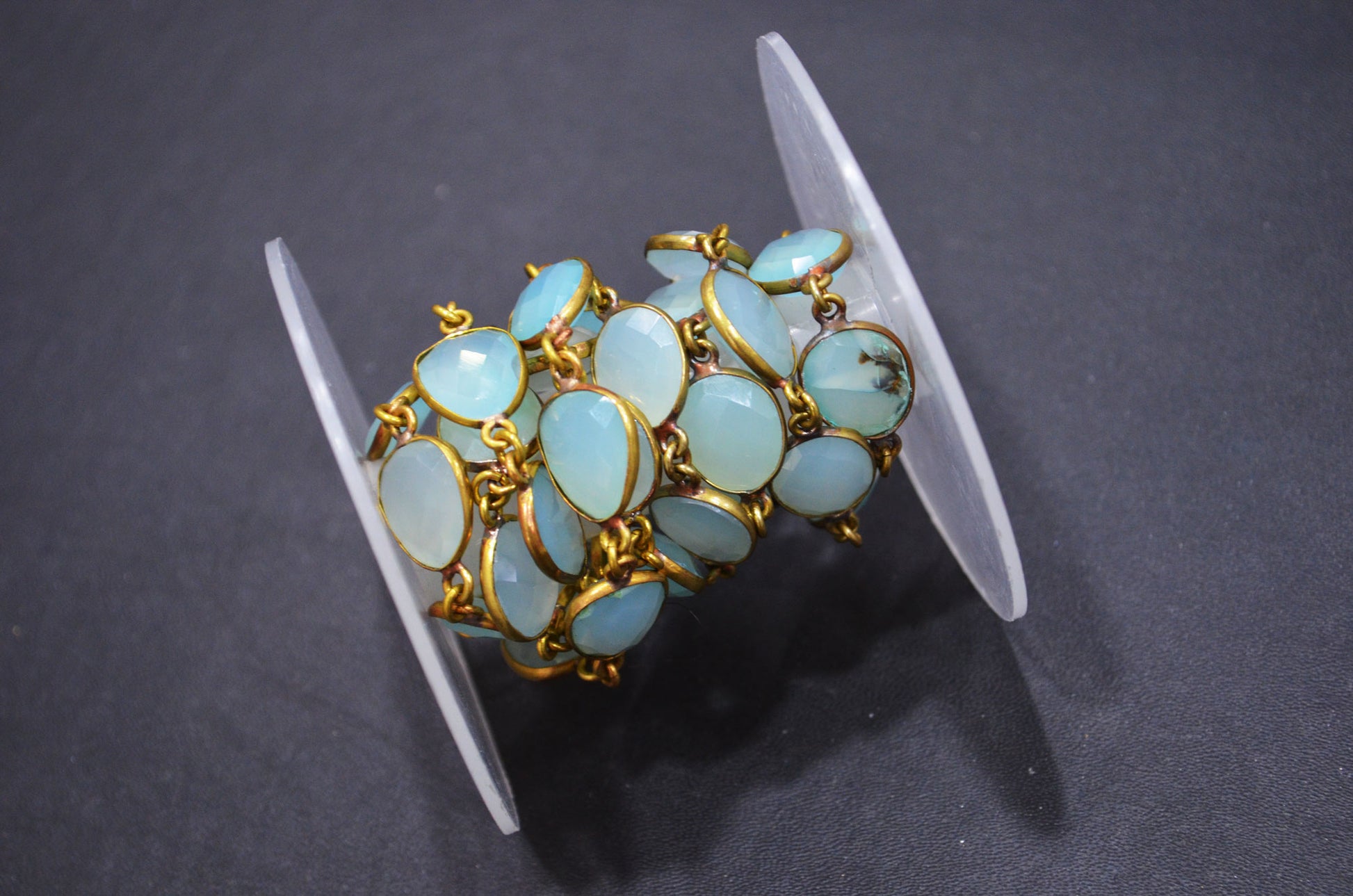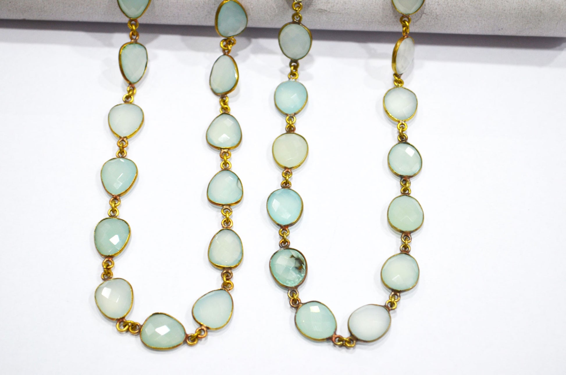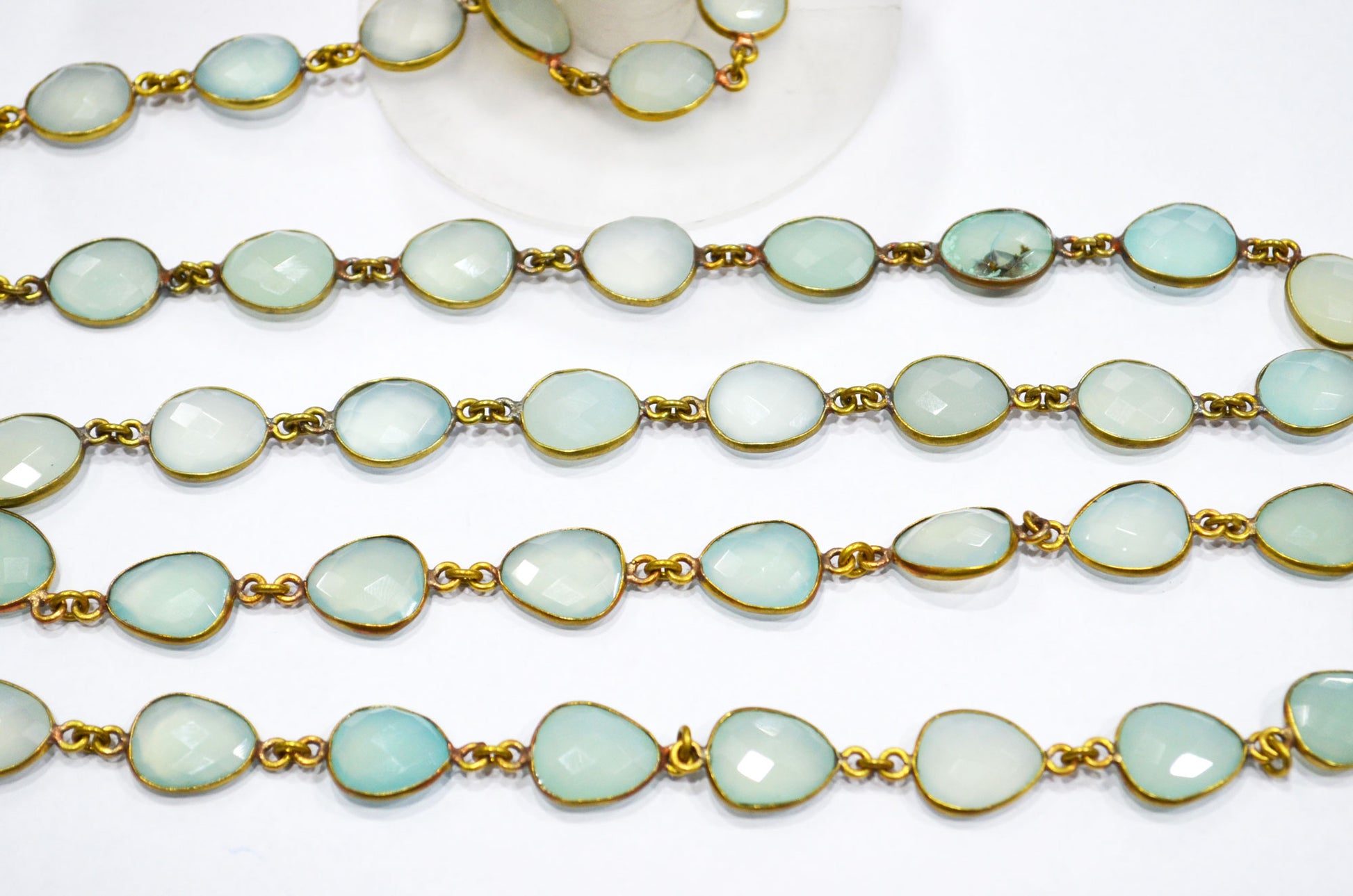 Aqua Chalcedony Faceted Connector Chain , Aqua Chalcedony Egg Shape Bezel Link Chain , 12x13 mm , RB-5849