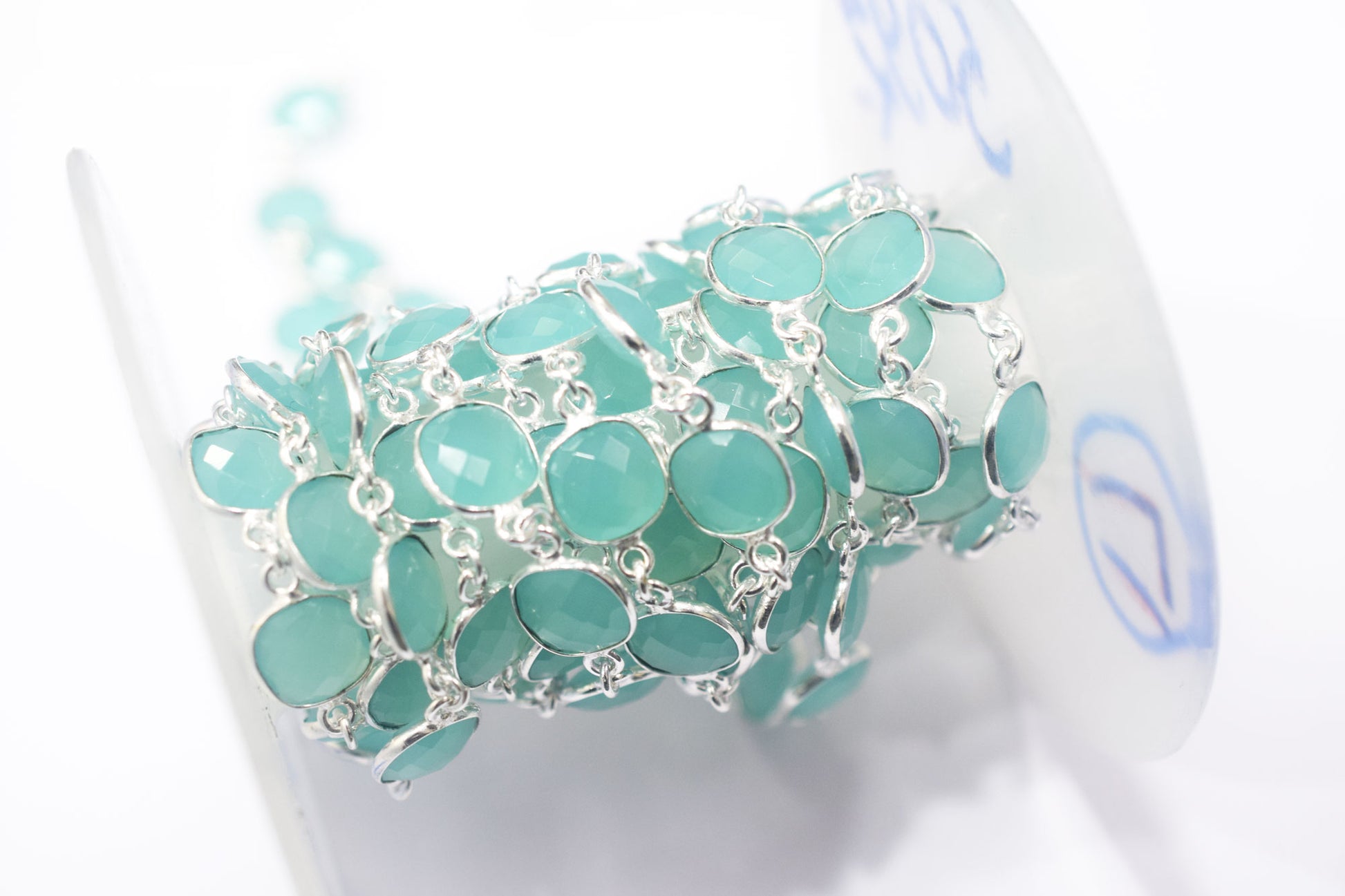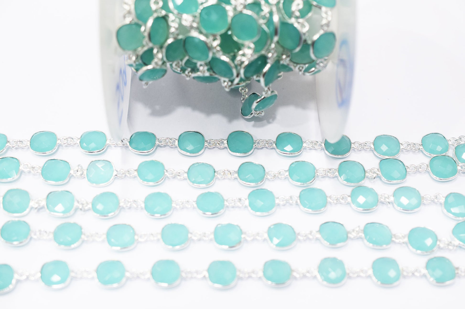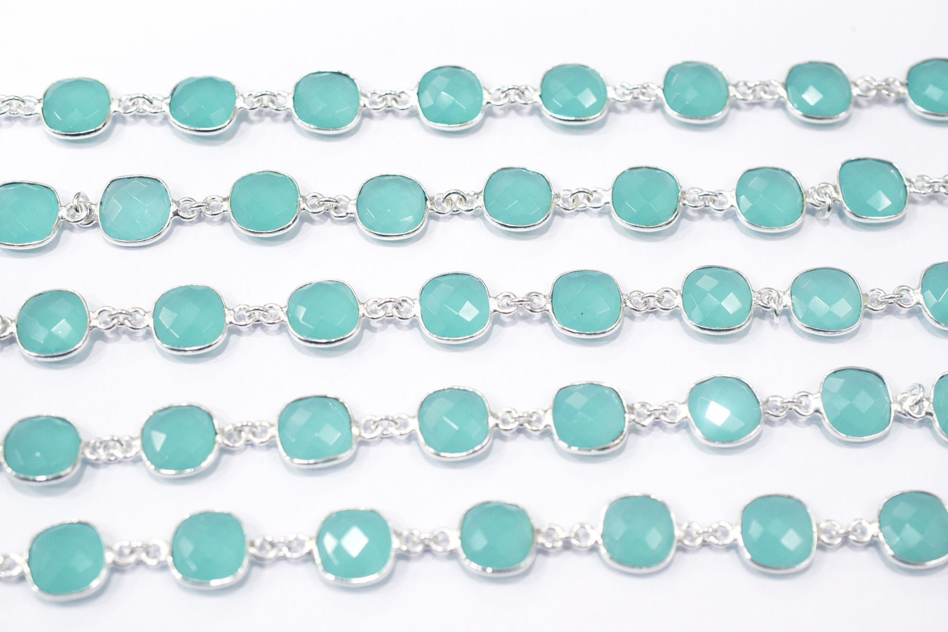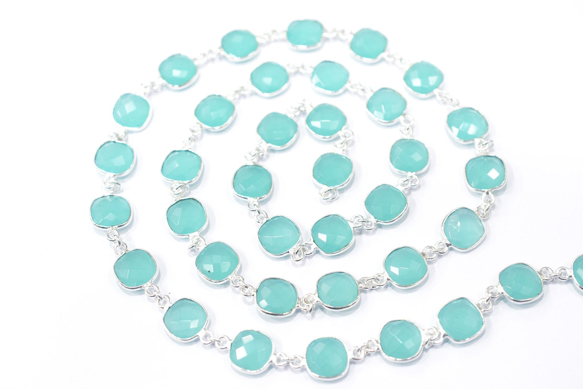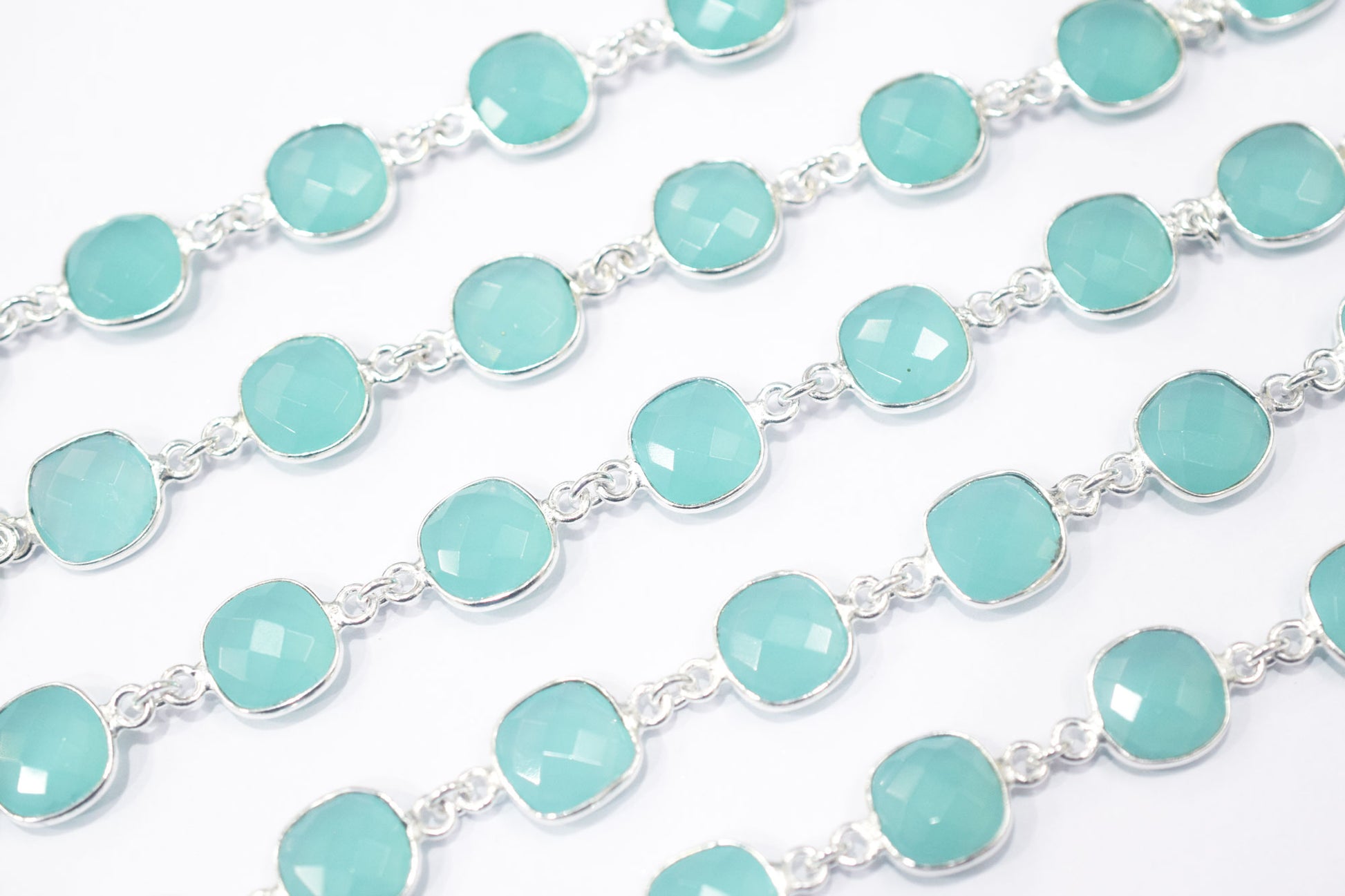 Aqua Chalcedony Faceted Cushion Shape Connector Chain , Aqua Chalcedony Cushion Shape Bezel Link ChainΒ , 11.50 mm , RB-6455