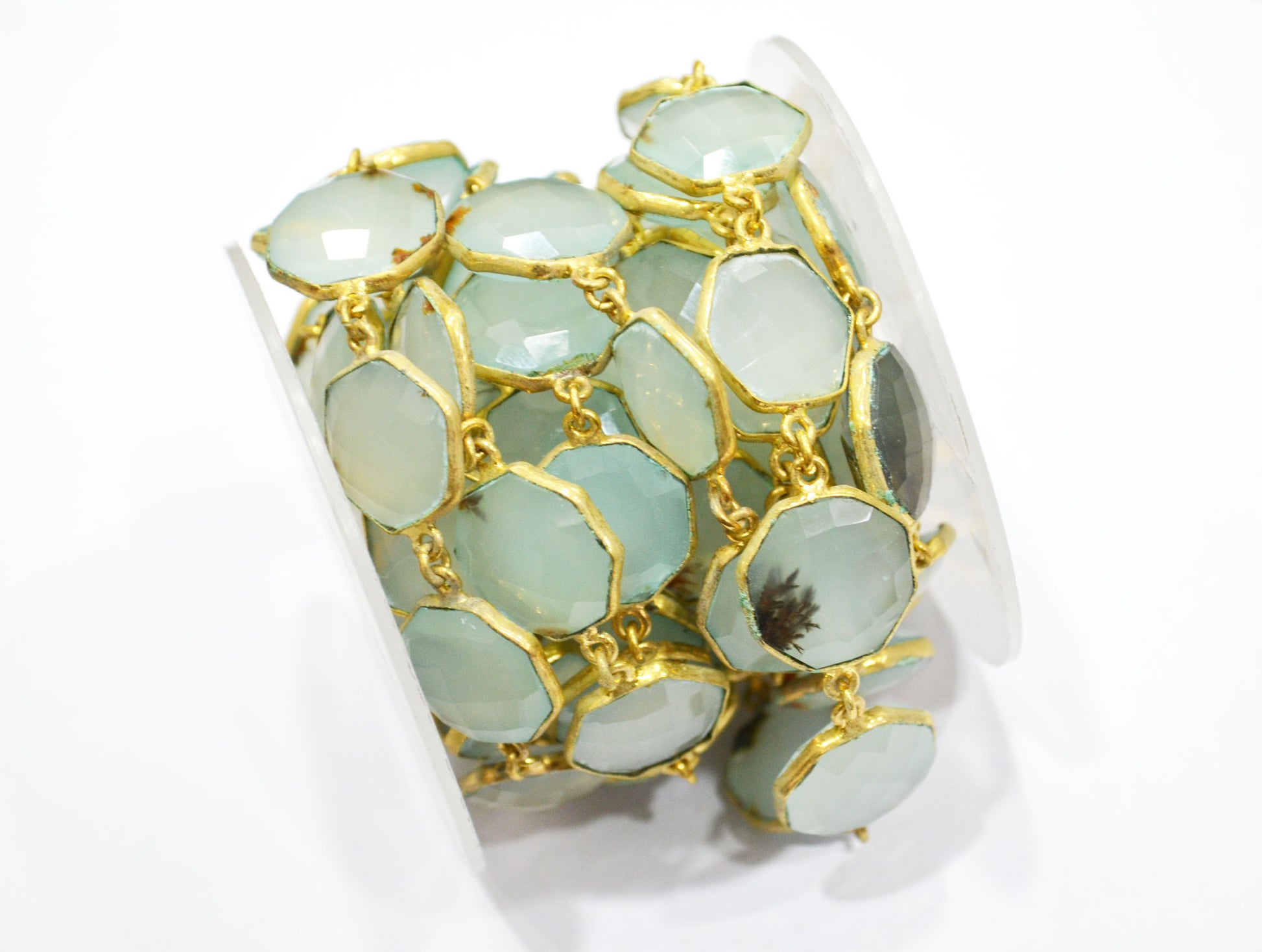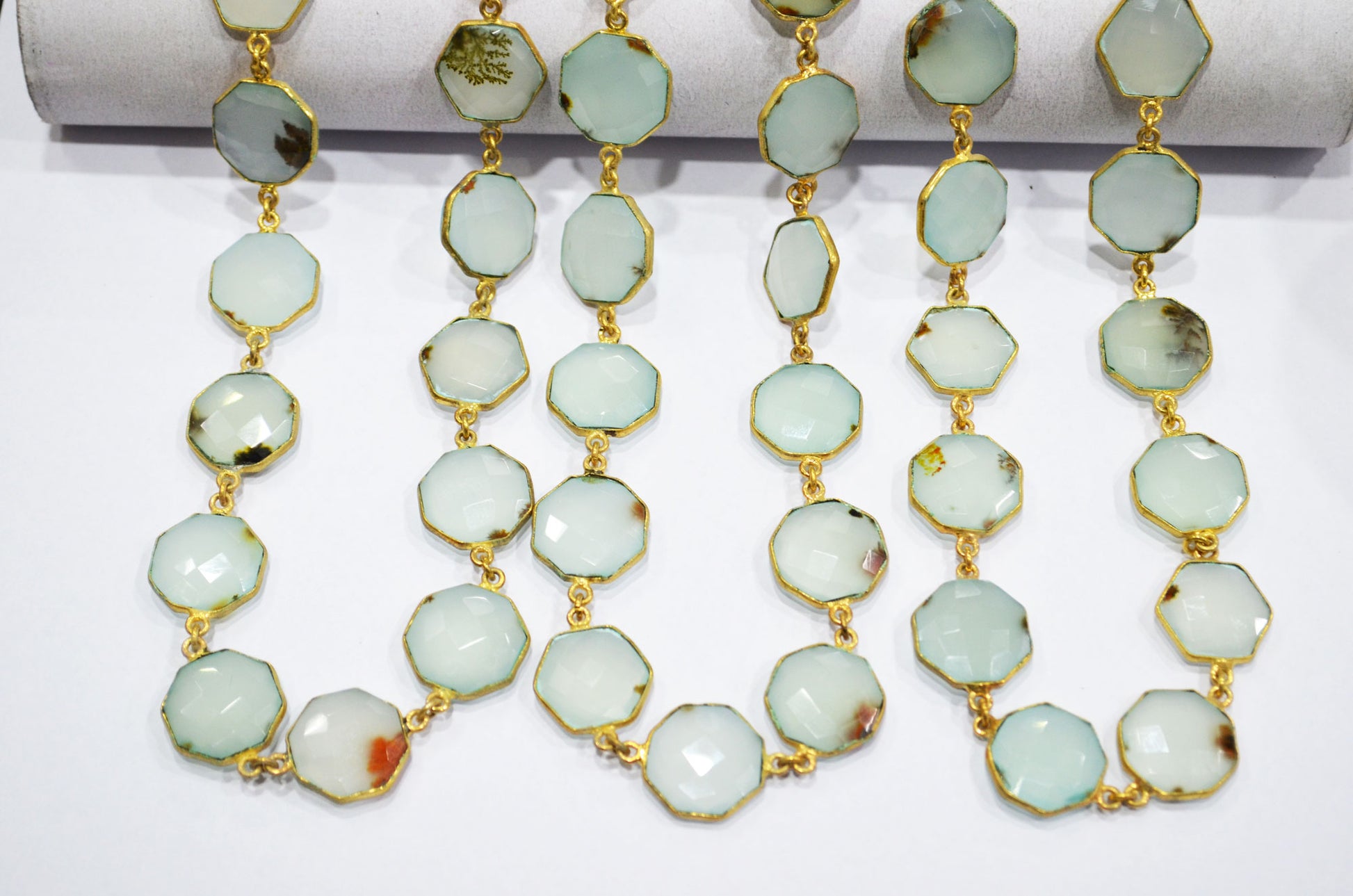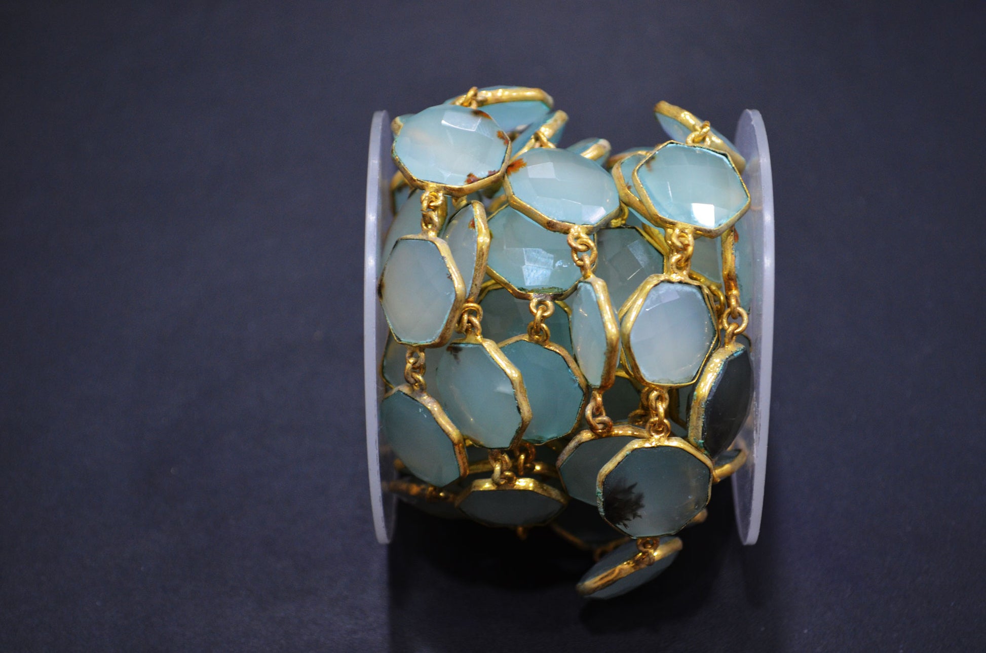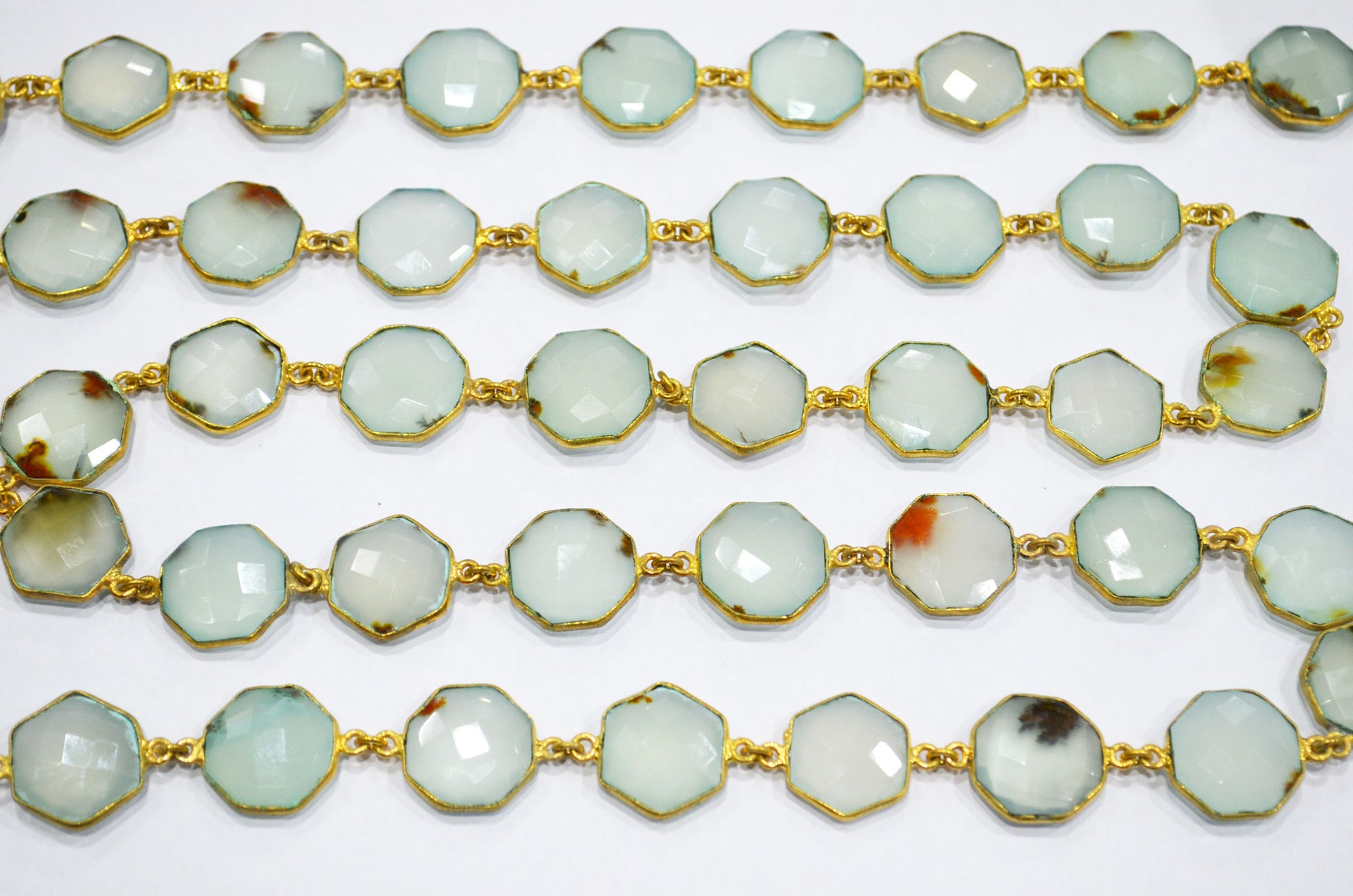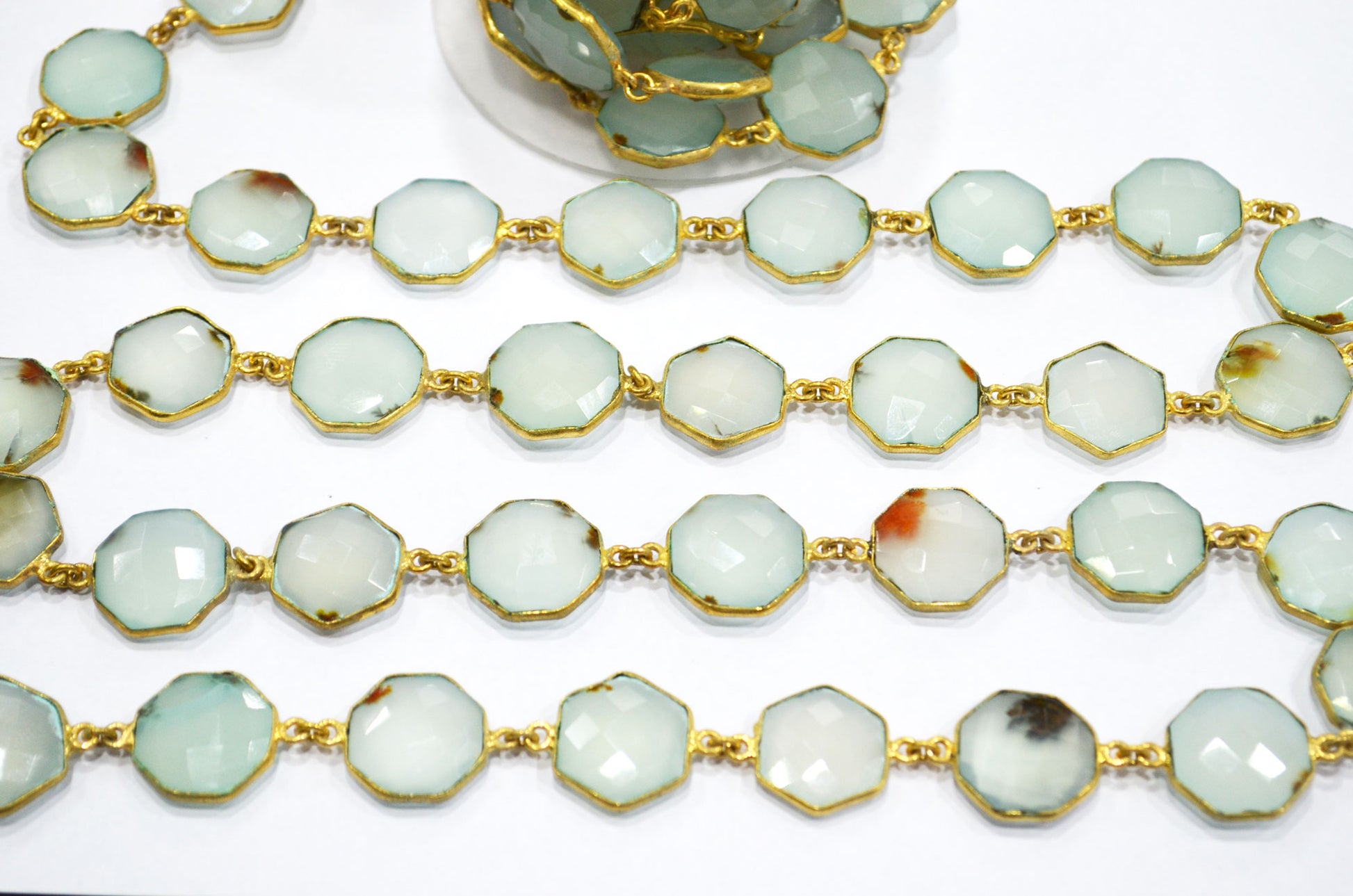 Aqua Chalcedony Faceted Octagon Shape Connector Chain , Aqua Chalcedony Octagon Shape Bezel Link ChainΒ , 17 mm , RB-6056A