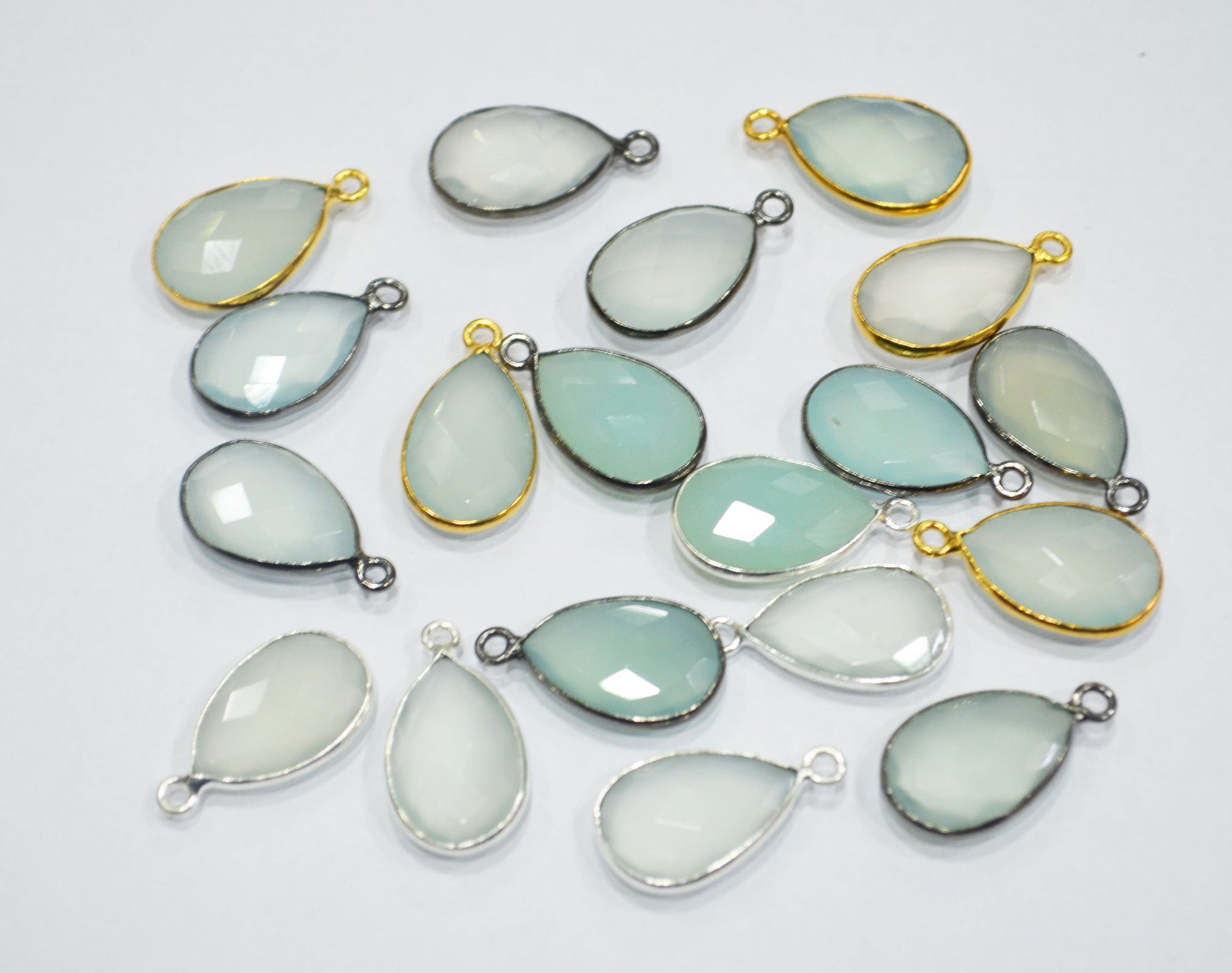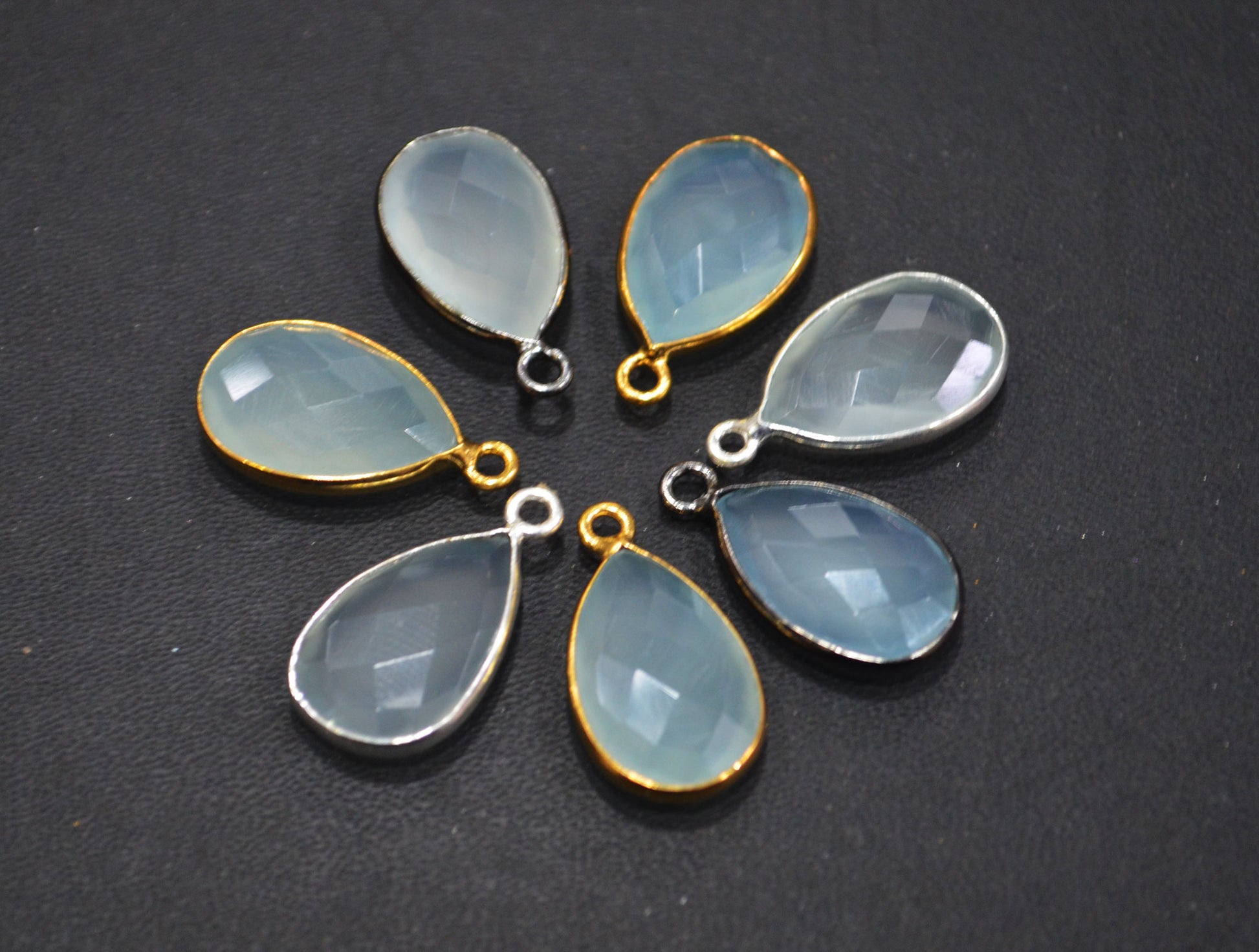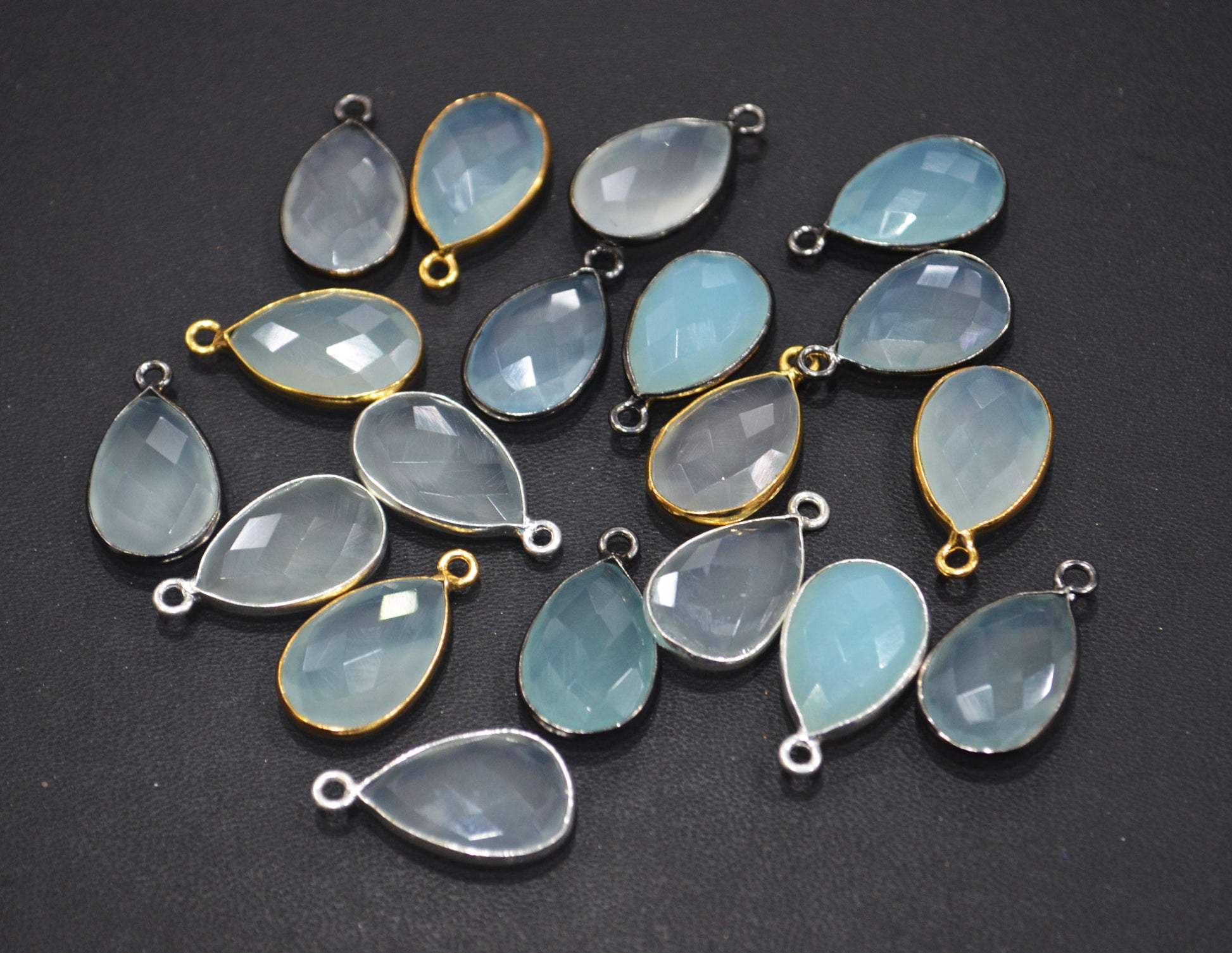Aqua Chalcedony Faceted Pear Shape Connector , Aqua Chalcedony Pear Shape Single Bail Bezel Connector , Sold By Piece , 10x20 mm , RB-6370