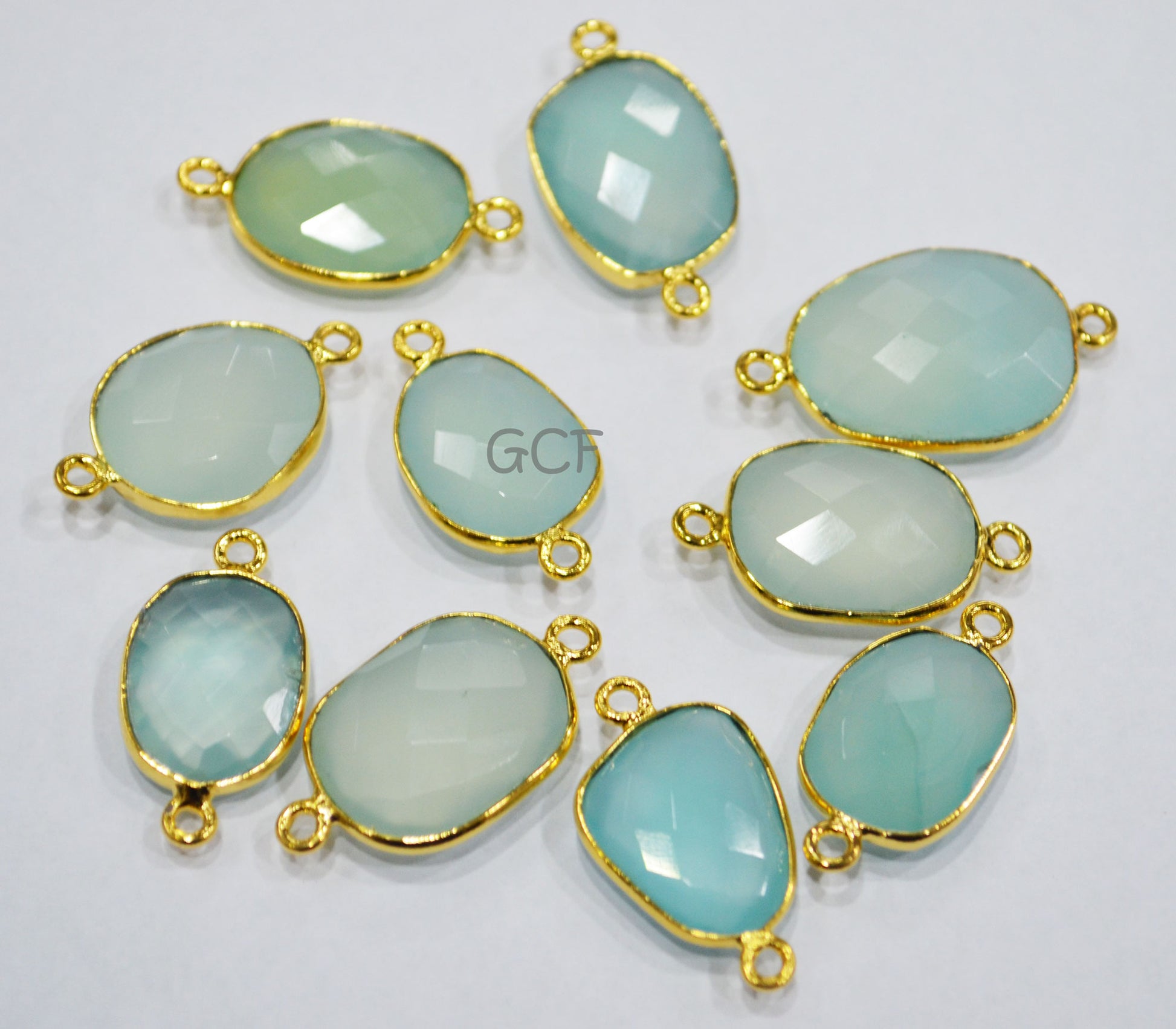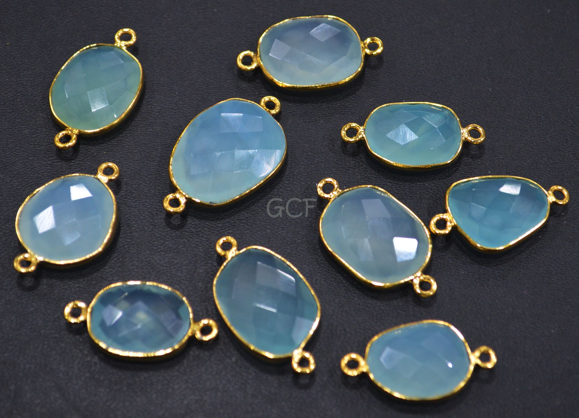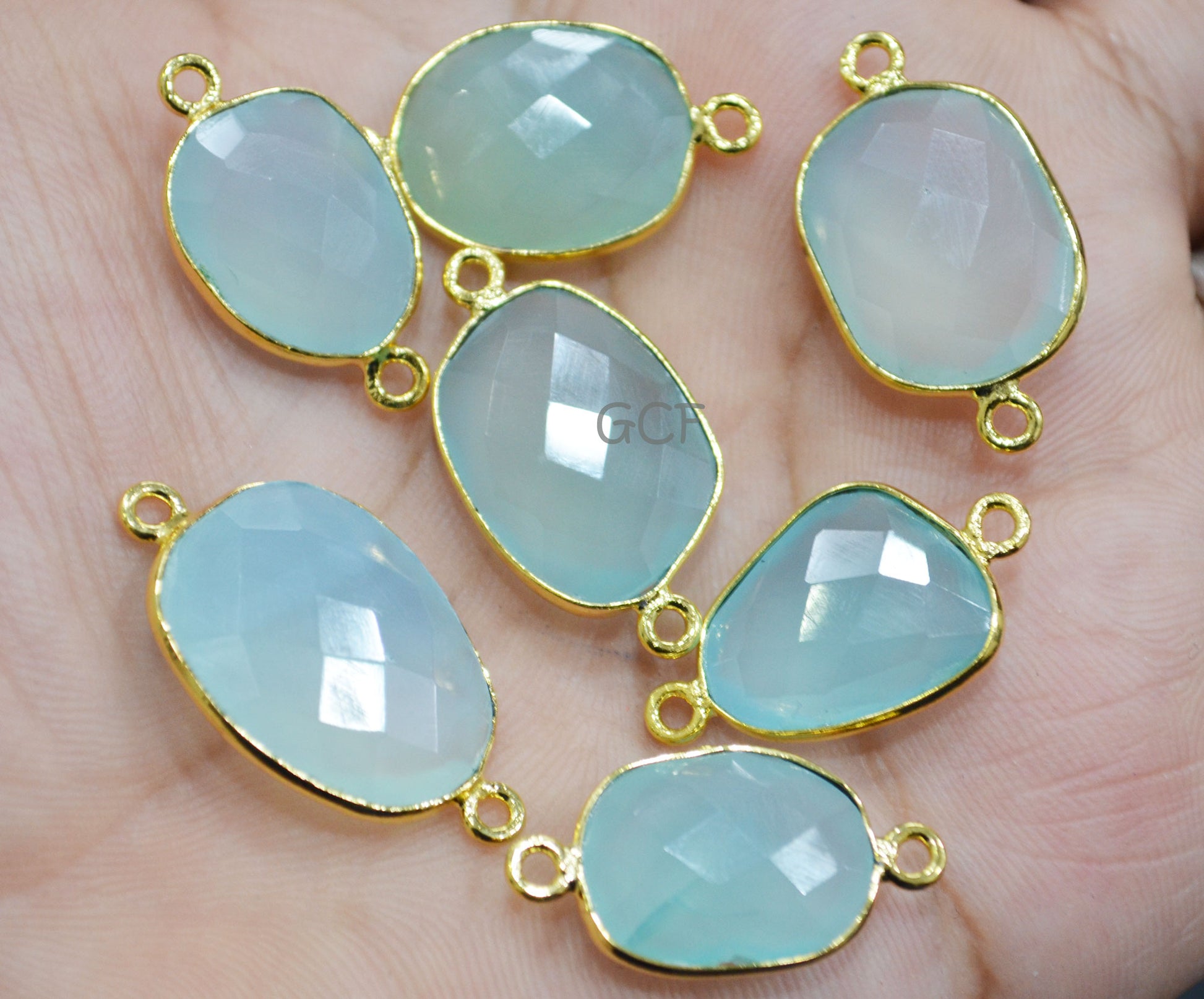 Aqua Chalcedony Faceted Slice Shape Double Bail Connector , Aqua Chalcedony Free Form Connector , Sold By Piece , 13x15 - 16x18 mm , RB-6844