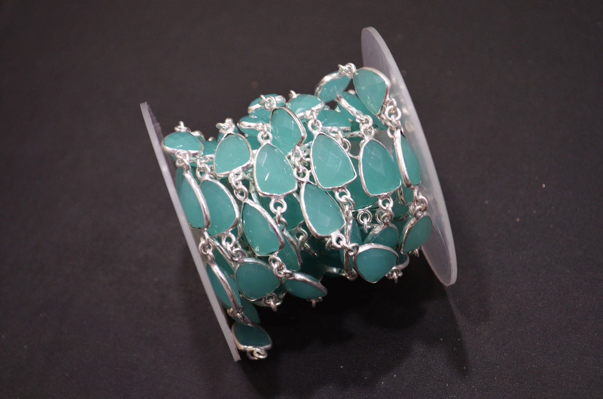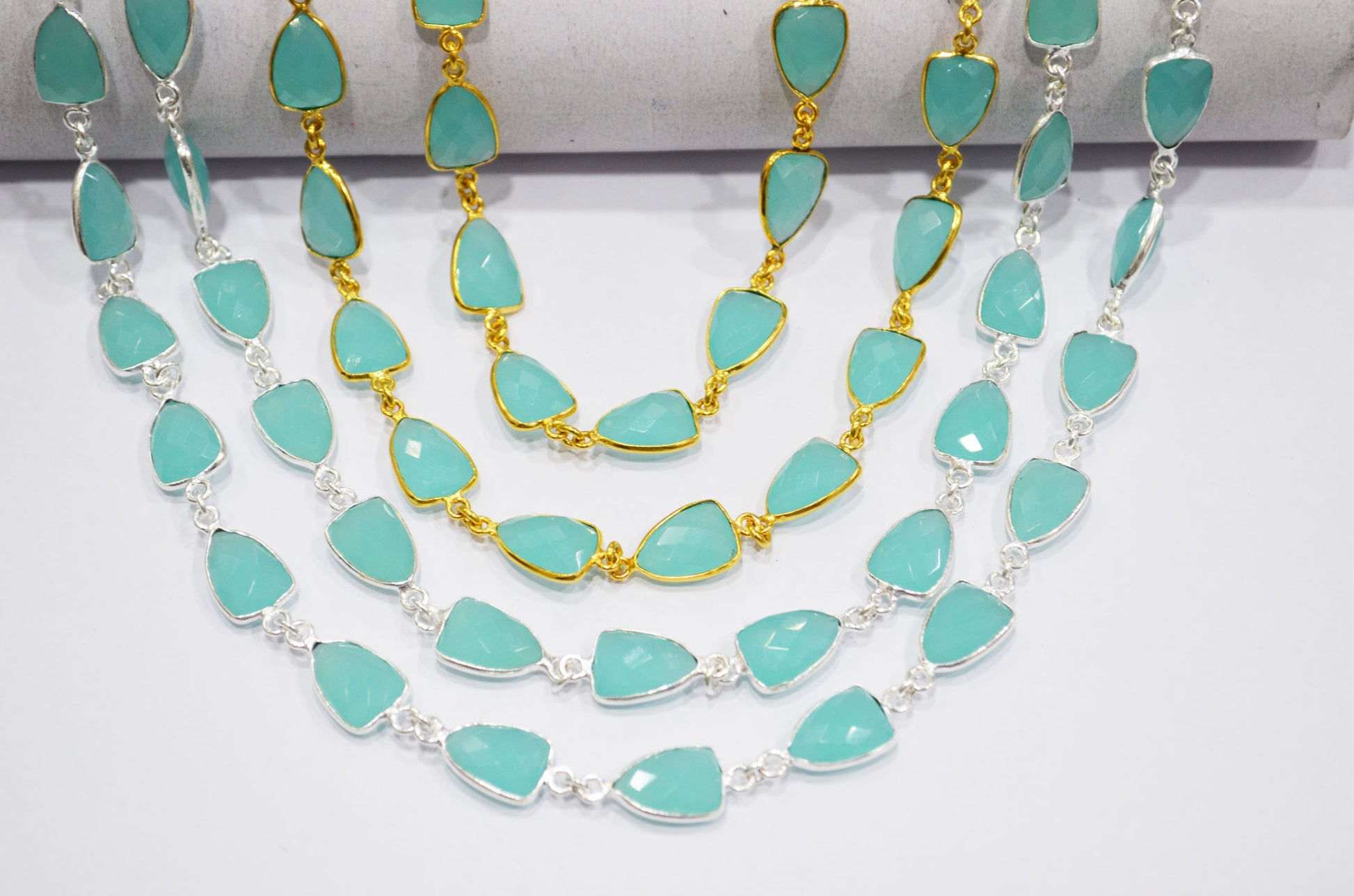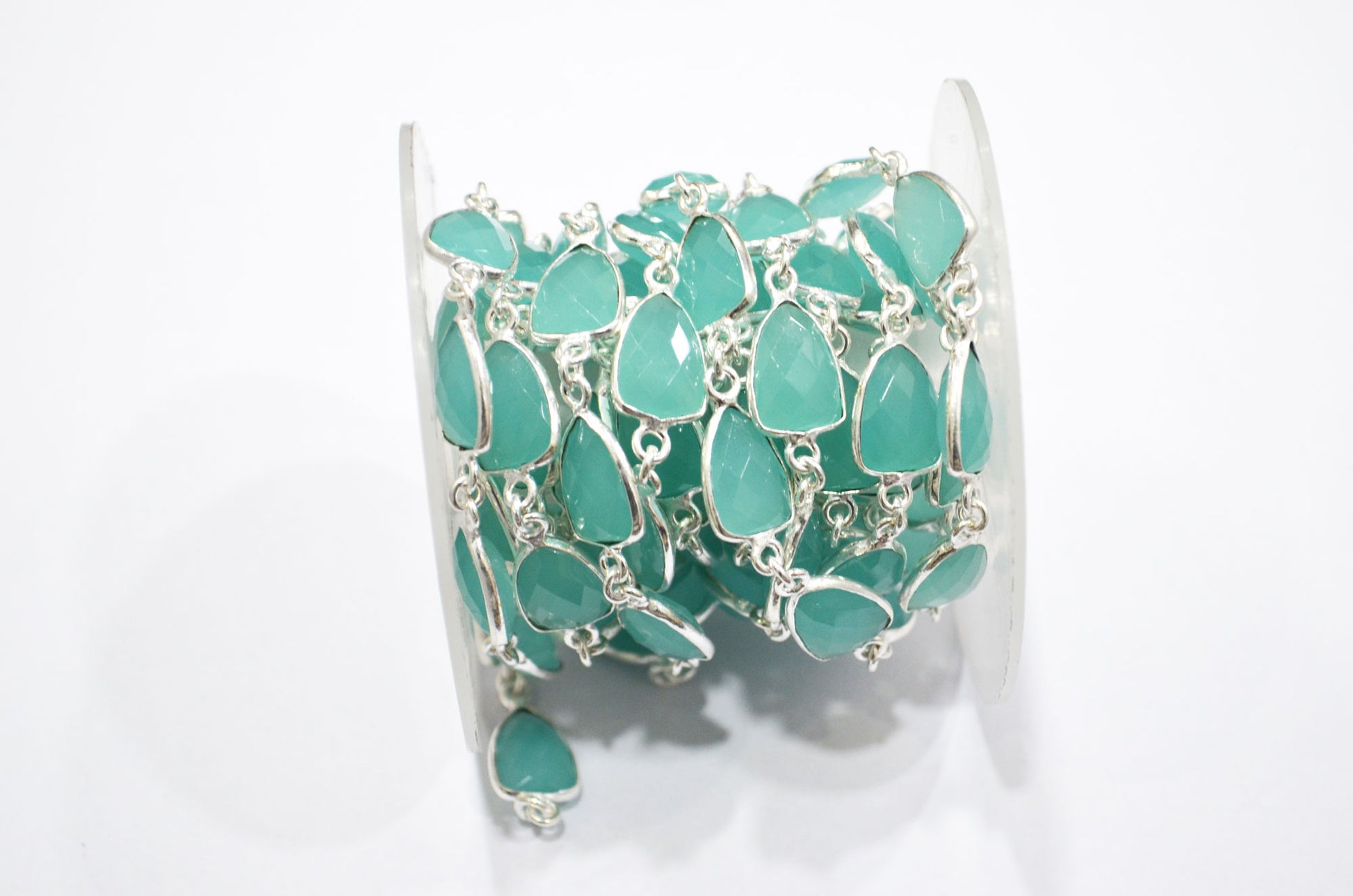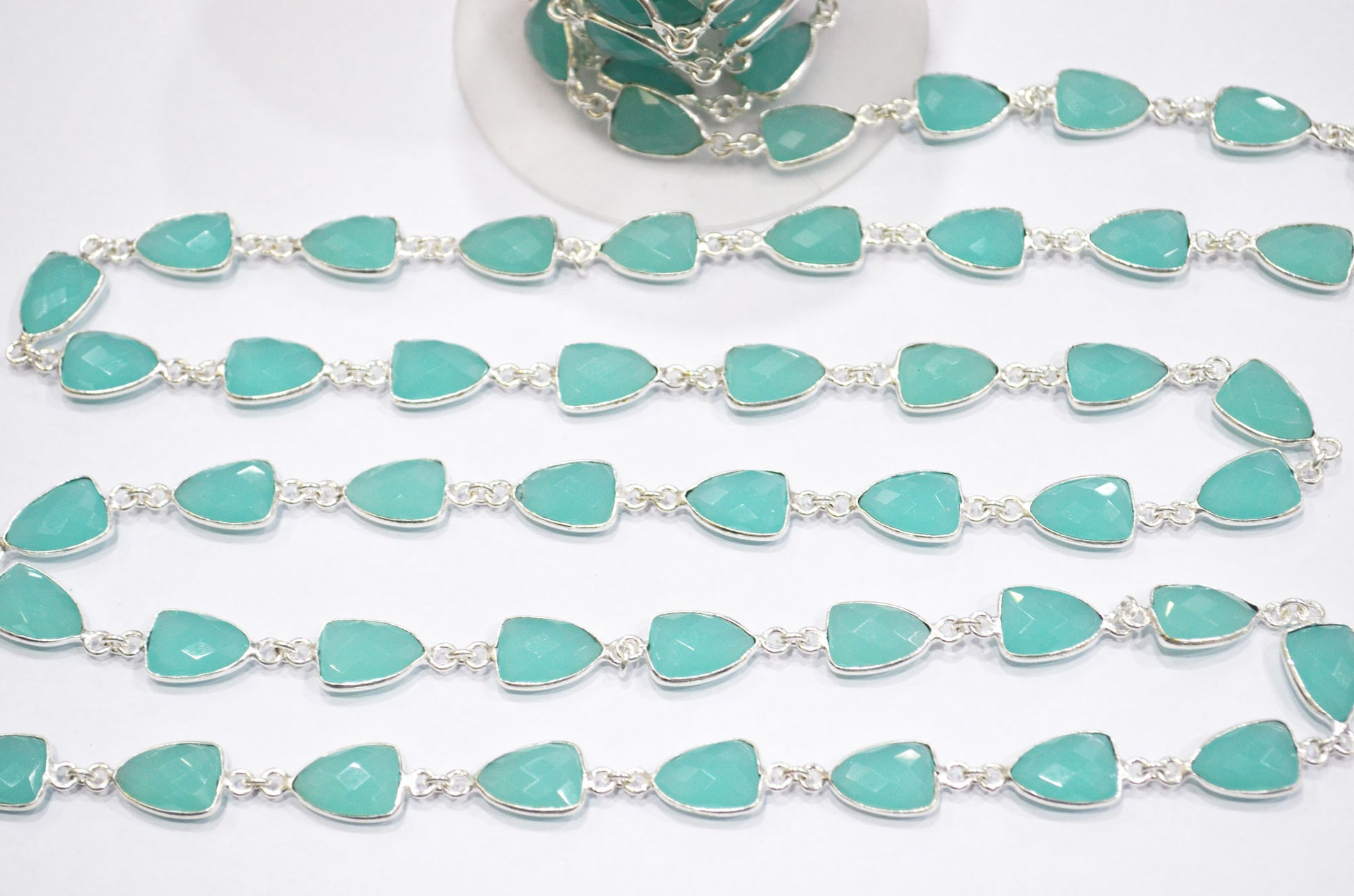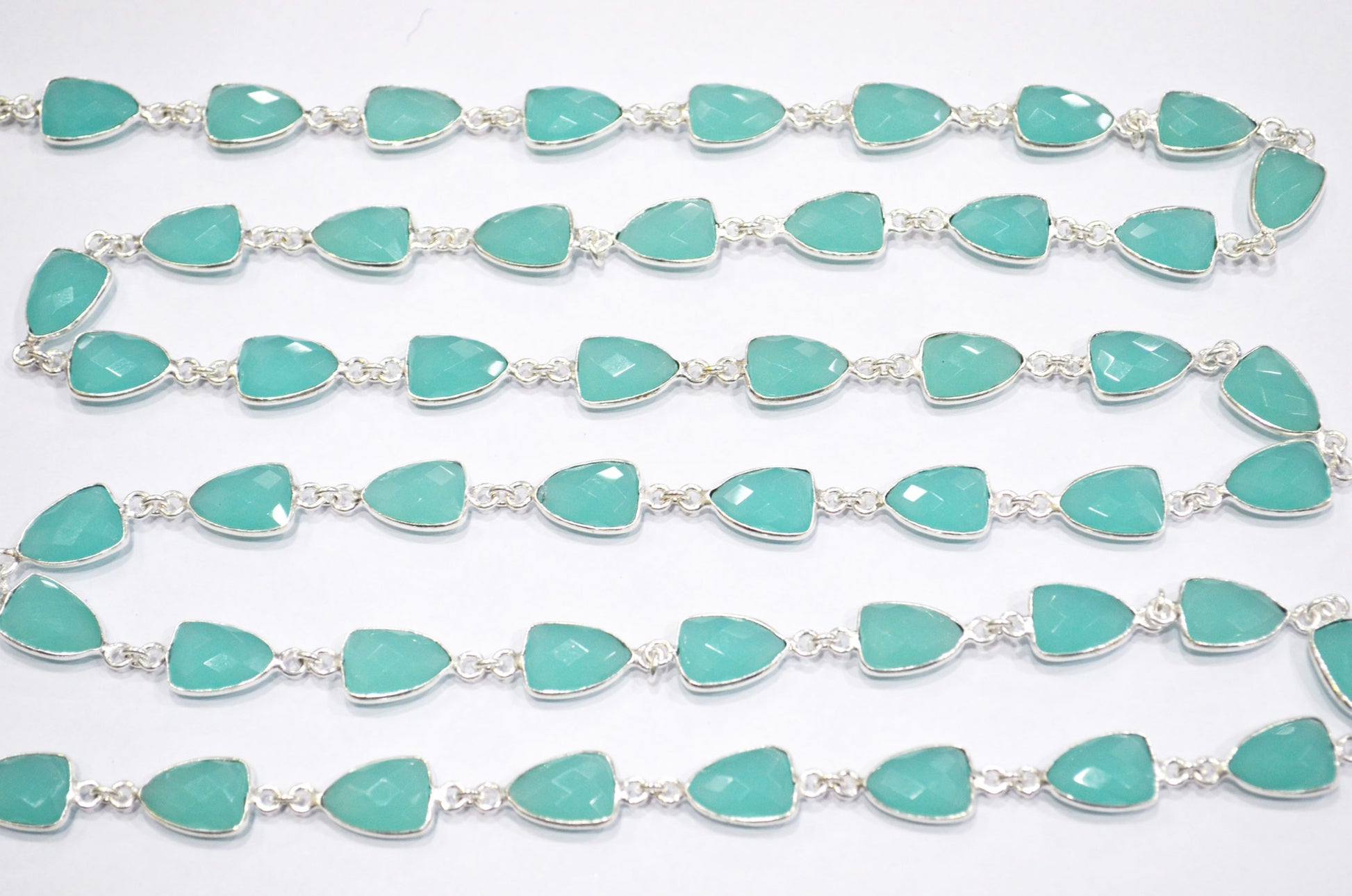 Aqua Color Hydro Quartz Faceted Trillion Shape Connector Chain , Aqua Color Hydro Quartz Bezel Link Chain , 10x13 mm , RB-6043