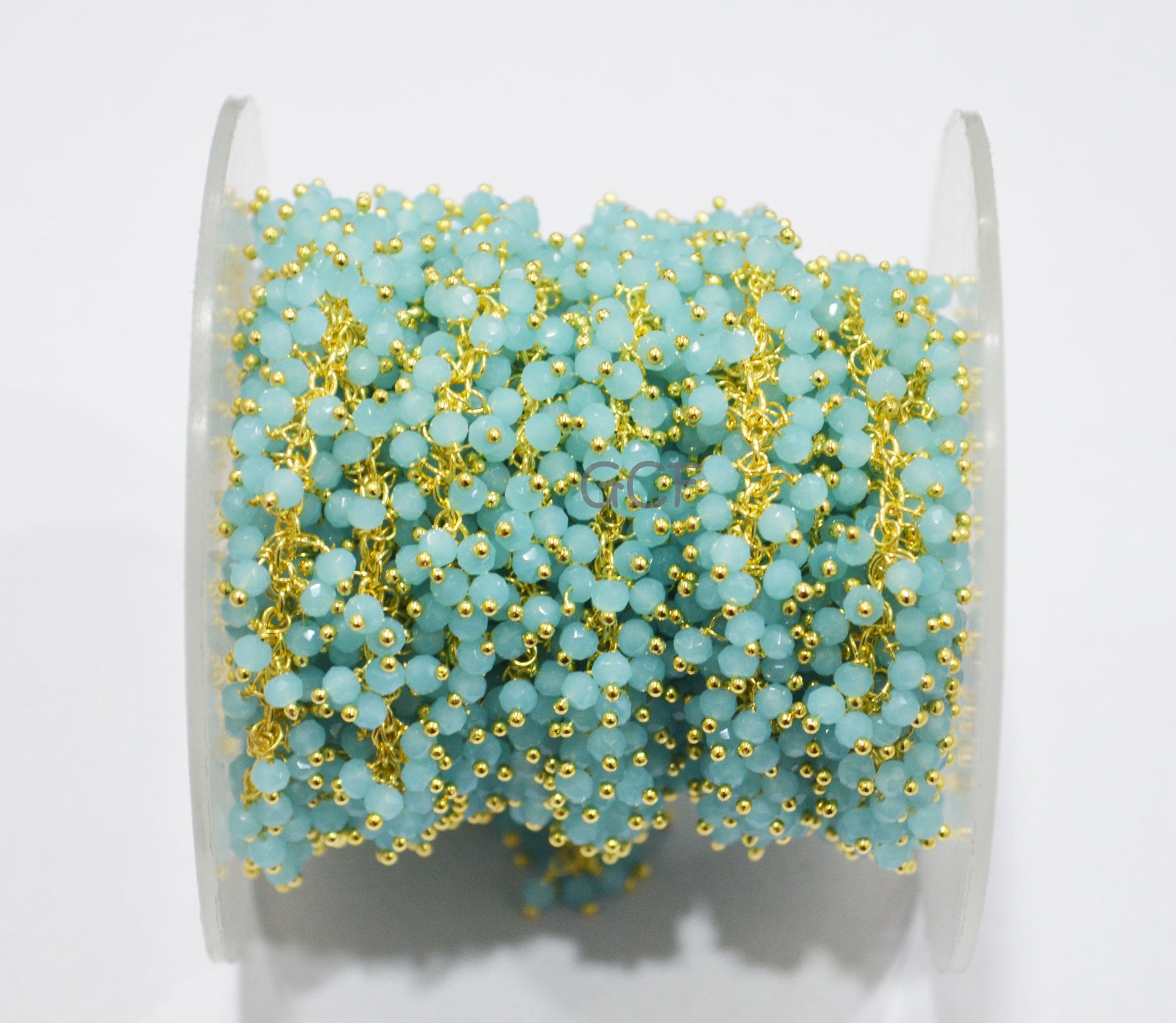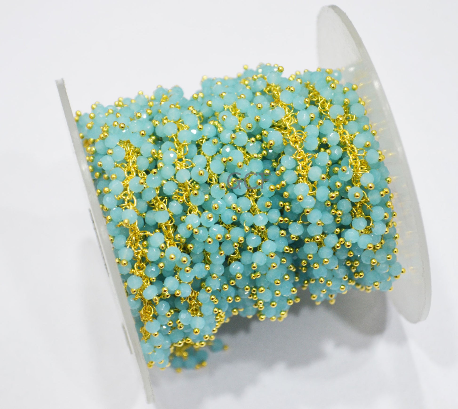 Aqua Hydro Quartz Faceted Rondelle Shape Grape Chain , Aqua Hydro Quartz Angoori Cluster Wire Wrapped Chain , 2.50 mm , 6897