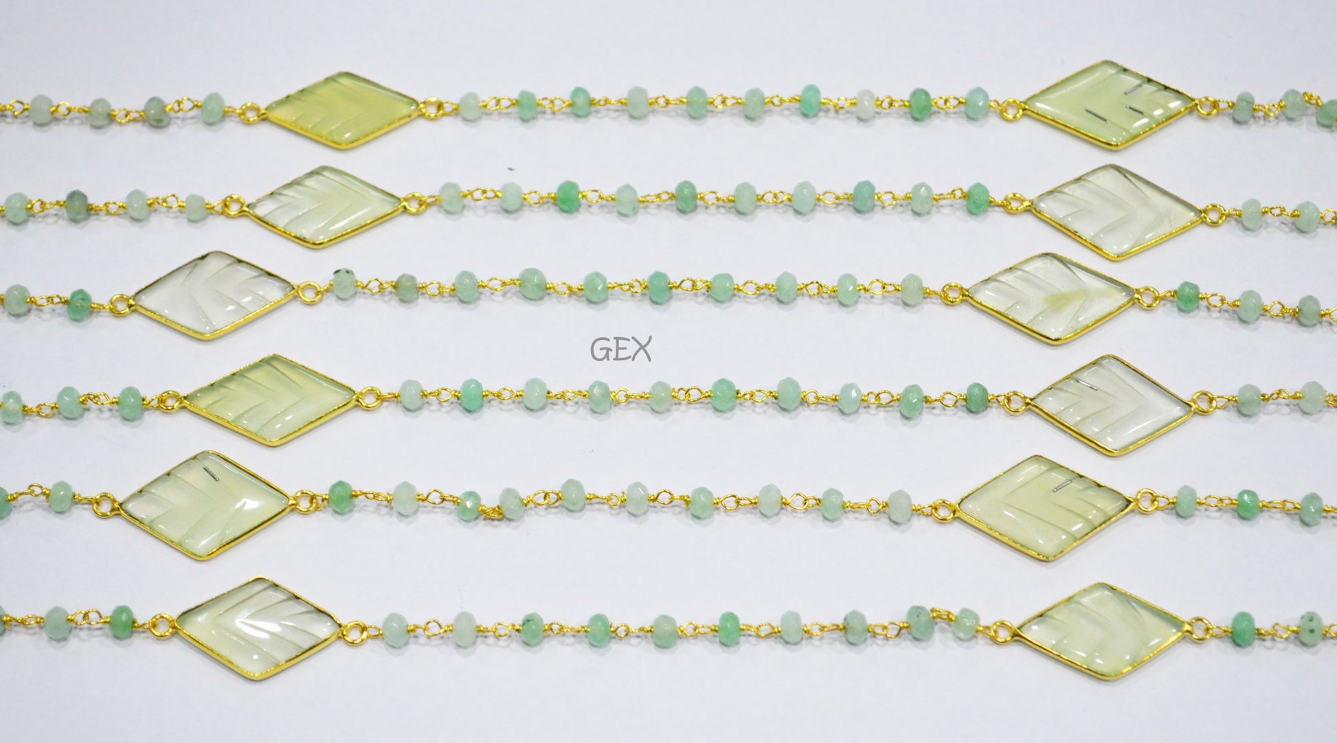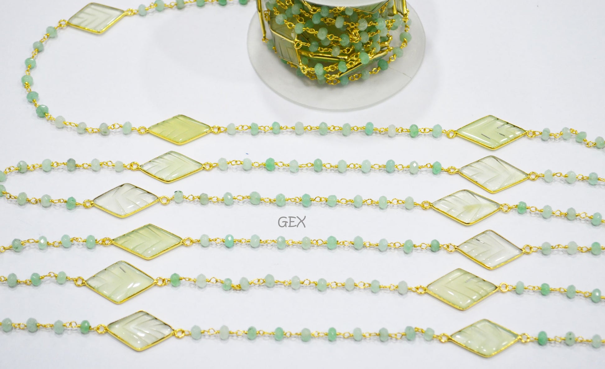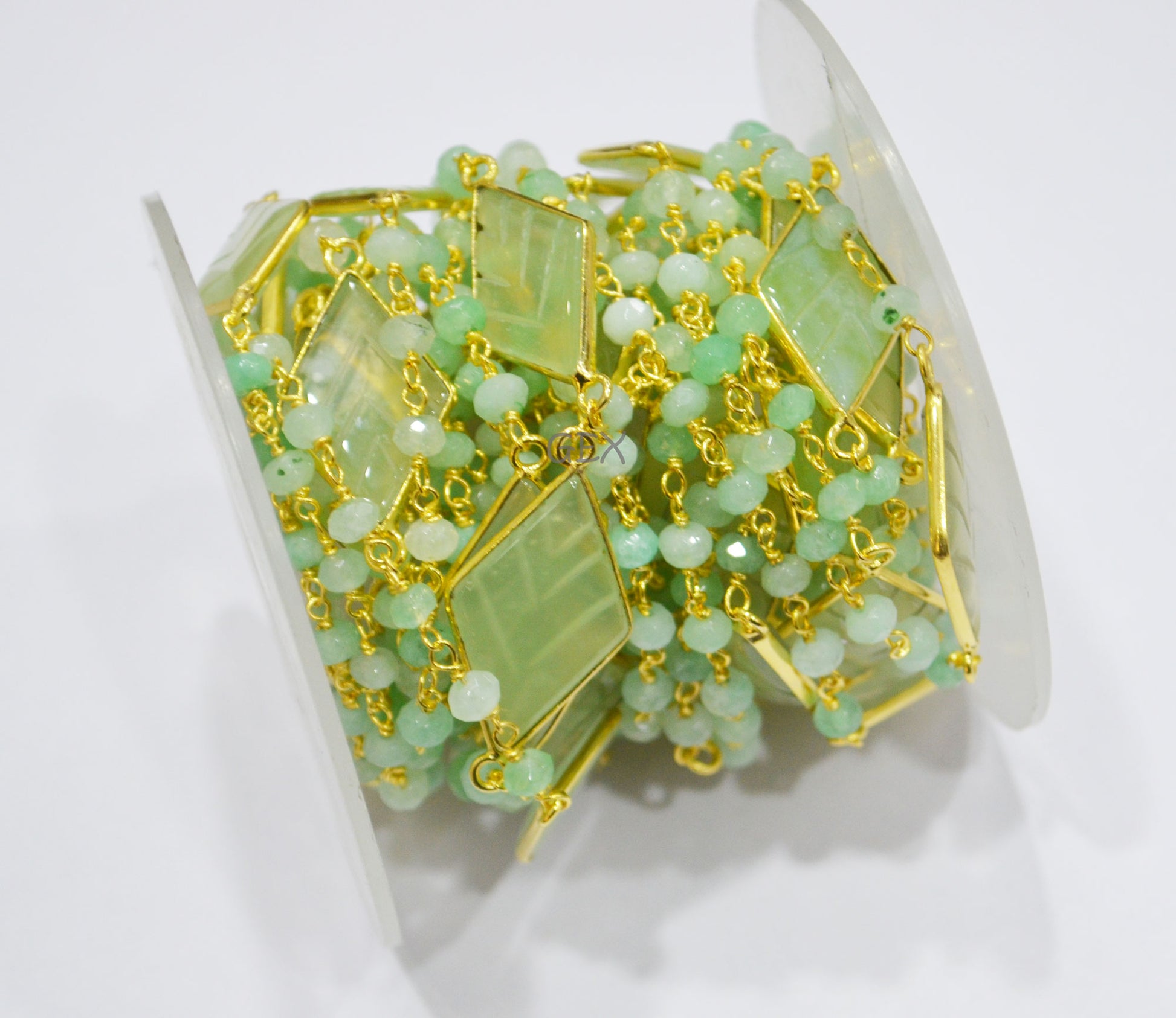 Aqua Jade Faceted Rondelle Shape Rosary Beaded Chain , Aqua Chalcedony Carved Diamond Shape Connector Wire Wrapped Chain , 4 mm , RB-7166