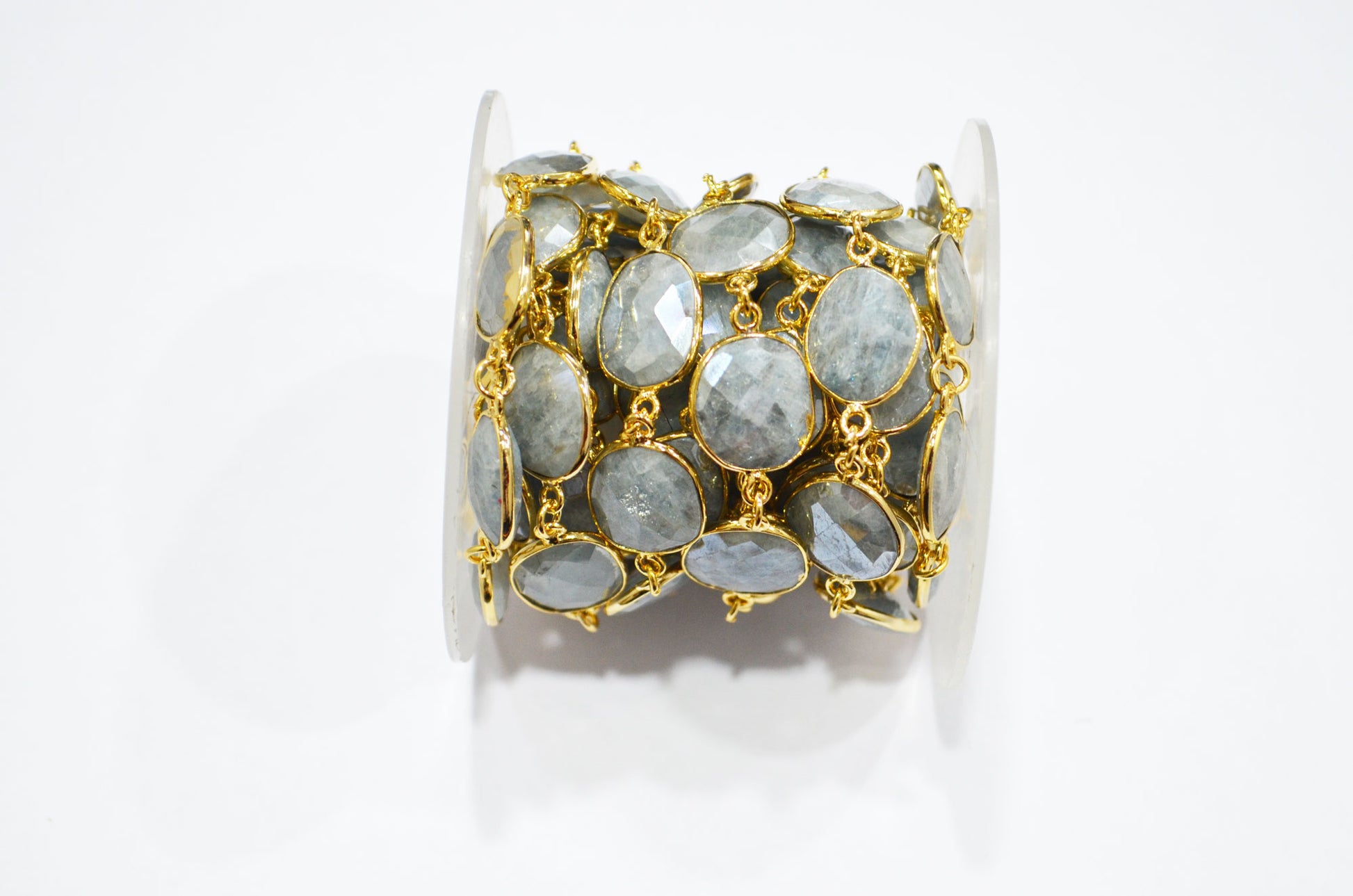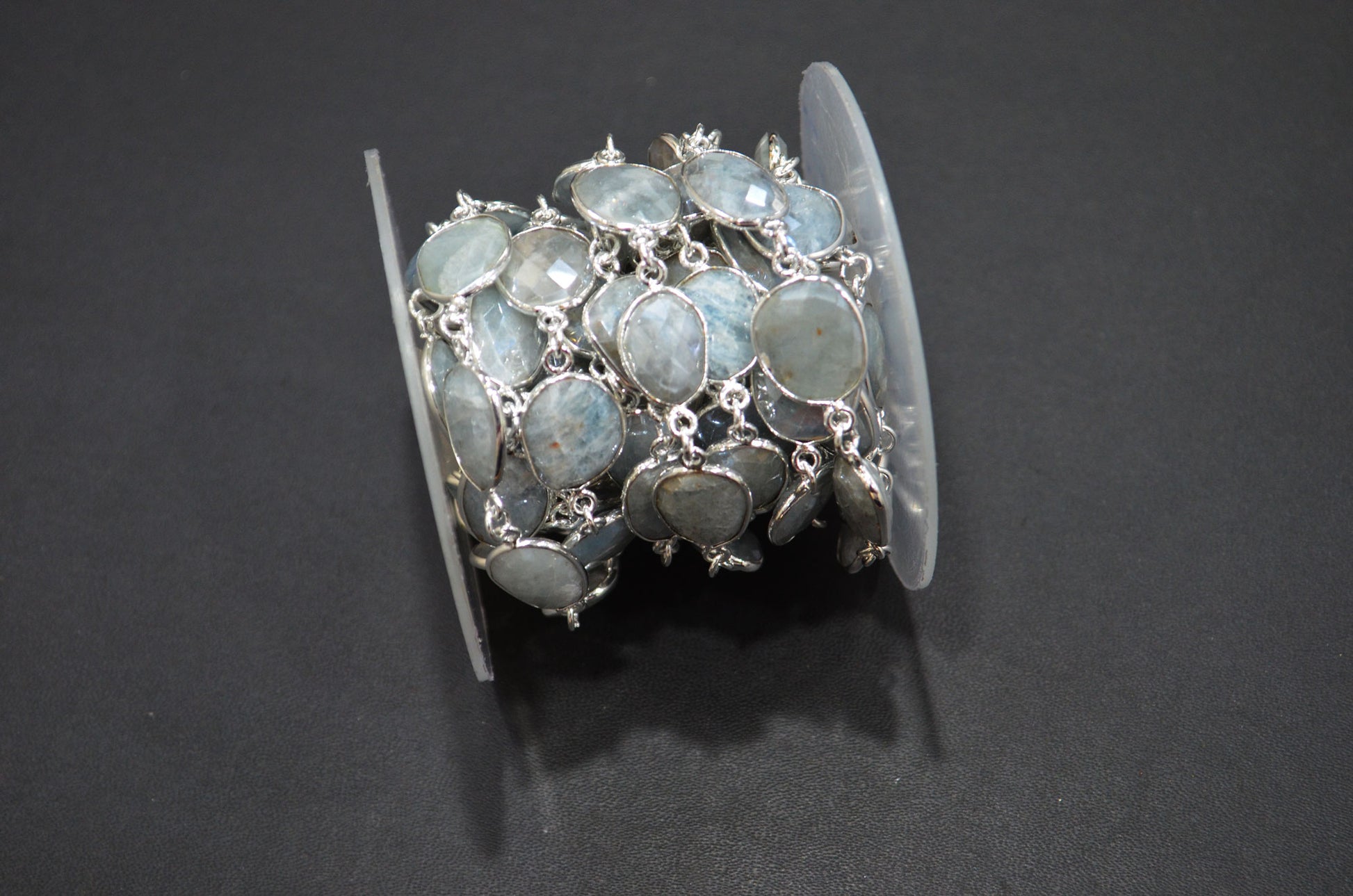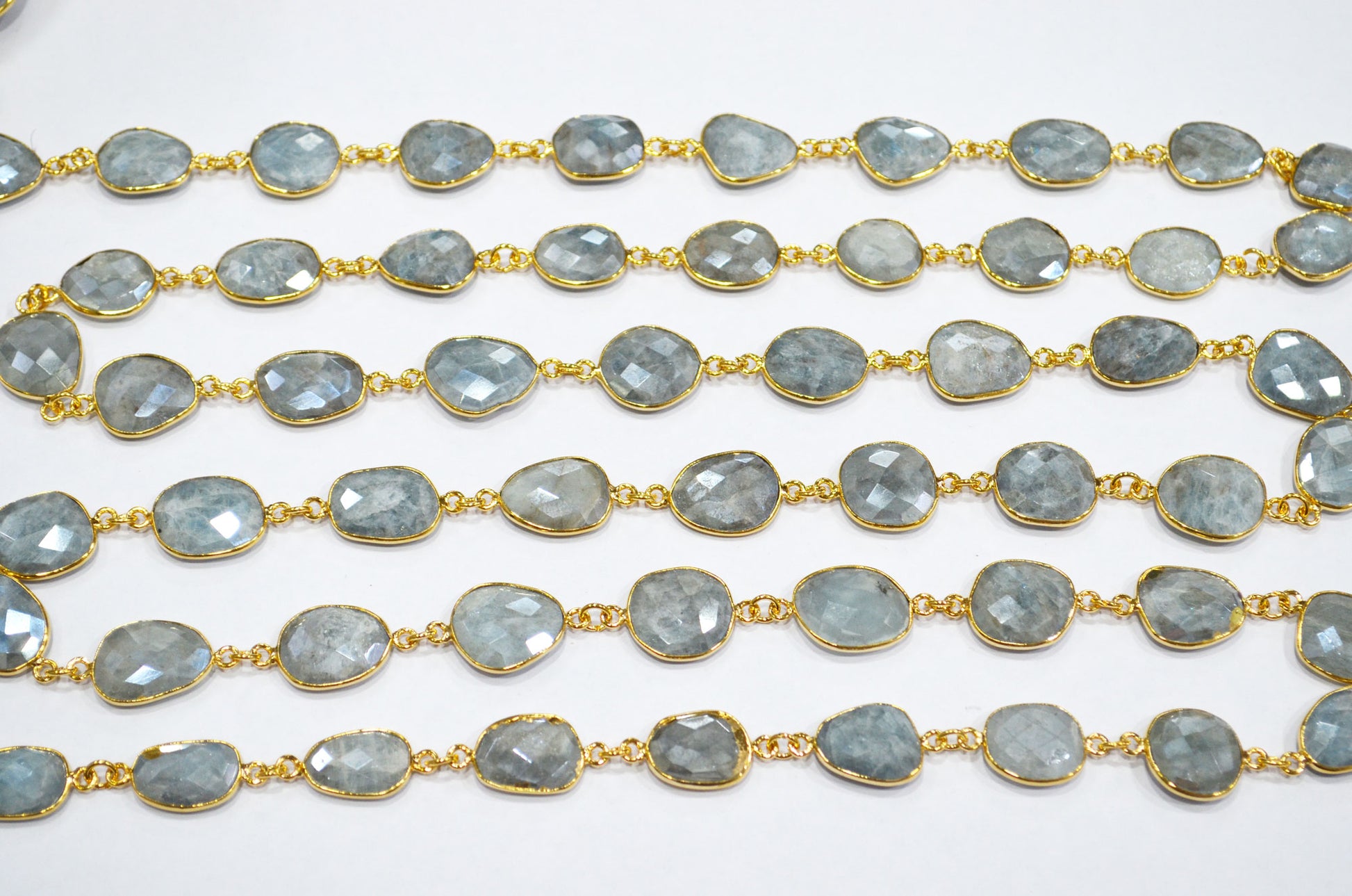 Aquamarine AB Coated Faceted Slice Shape Connector Chain , Aquamarine AB Coated Bezel Link Chain , 12x14 - 15x18 mm , RB-7380