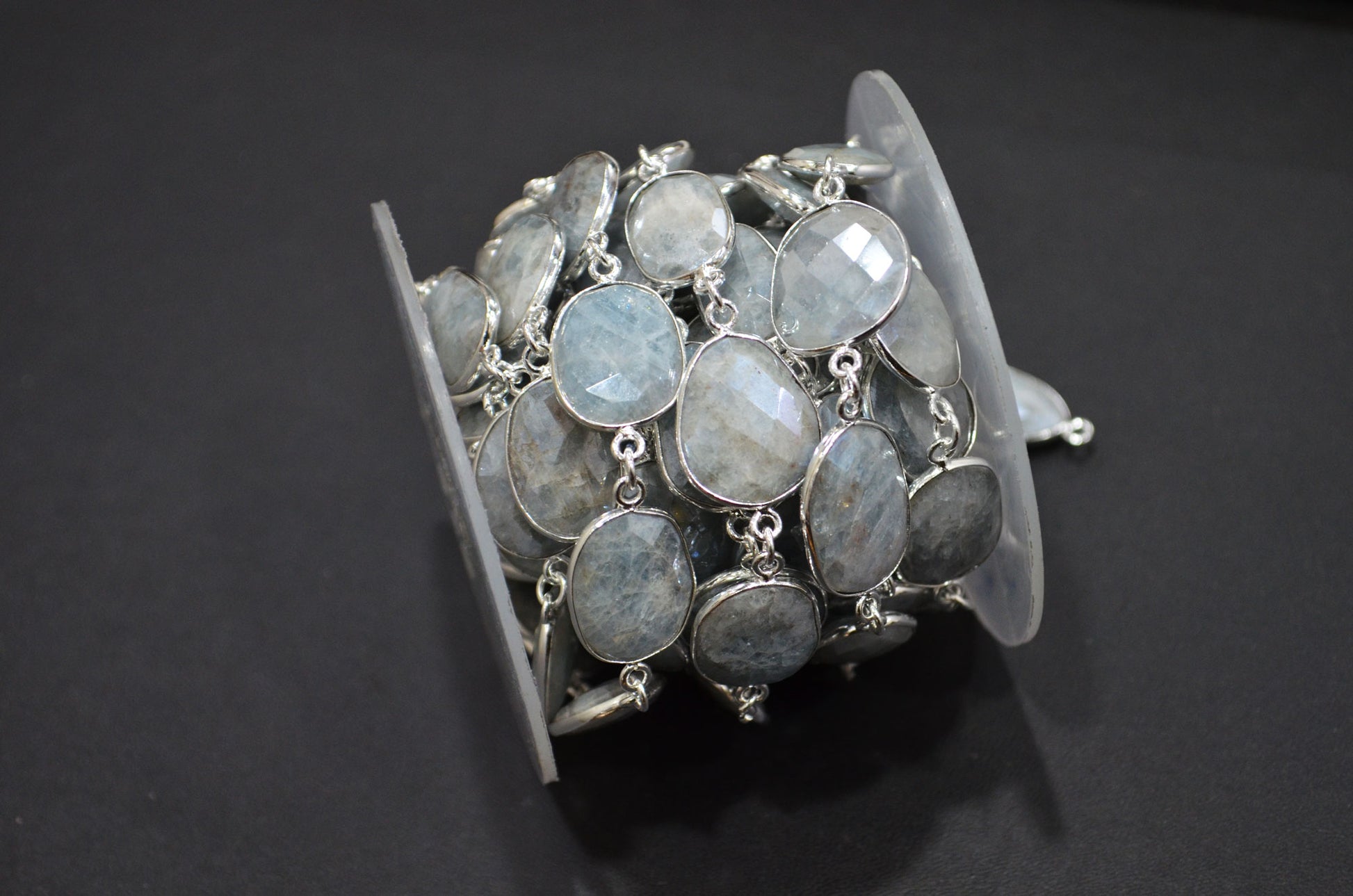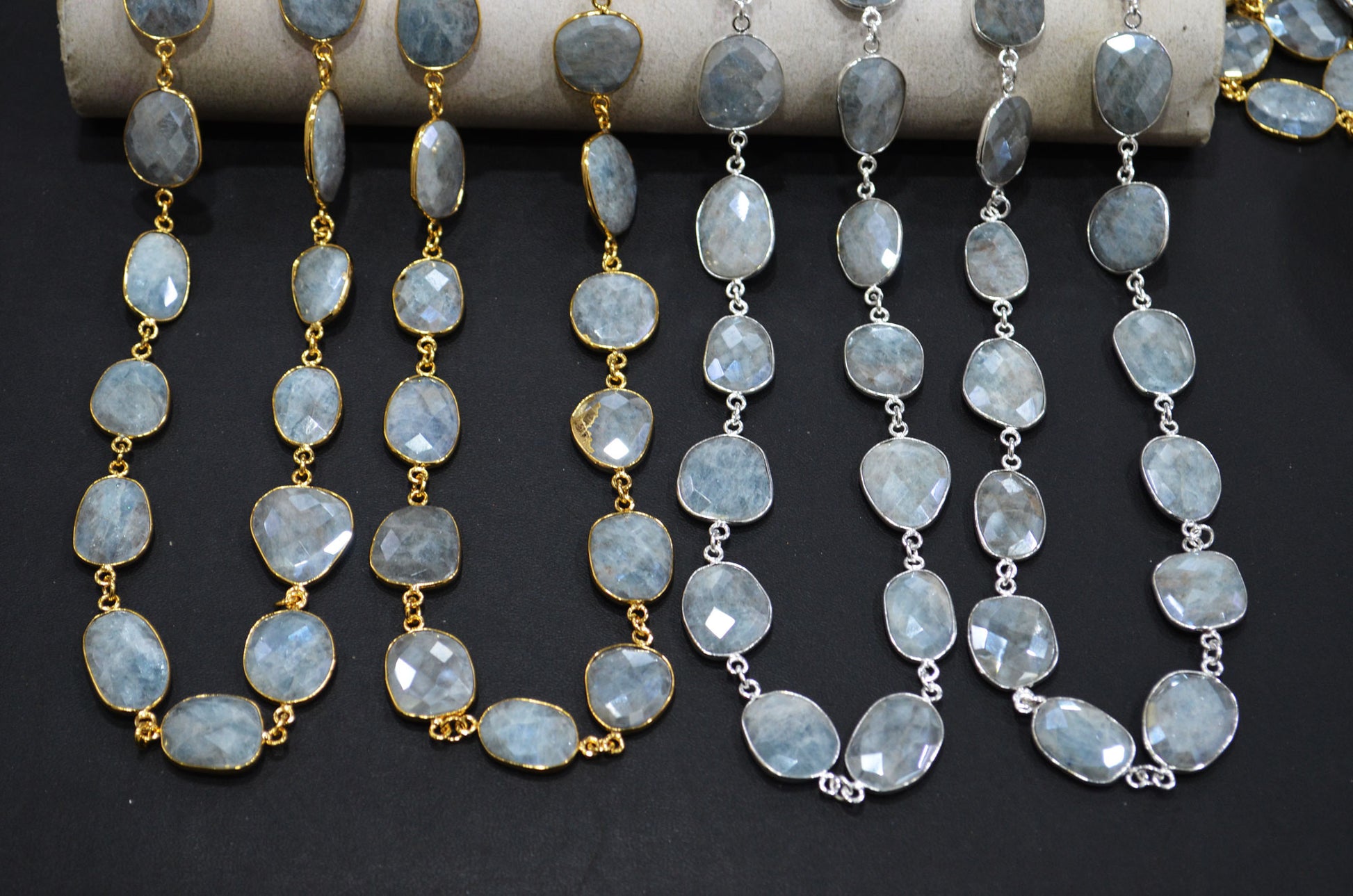 Aquamarine AB Coated Faceted Slice Shape Connector Chain , Aquamarine AB Coated Bezel Link Chain , 14x16 - 17x19 mm , RB-7412