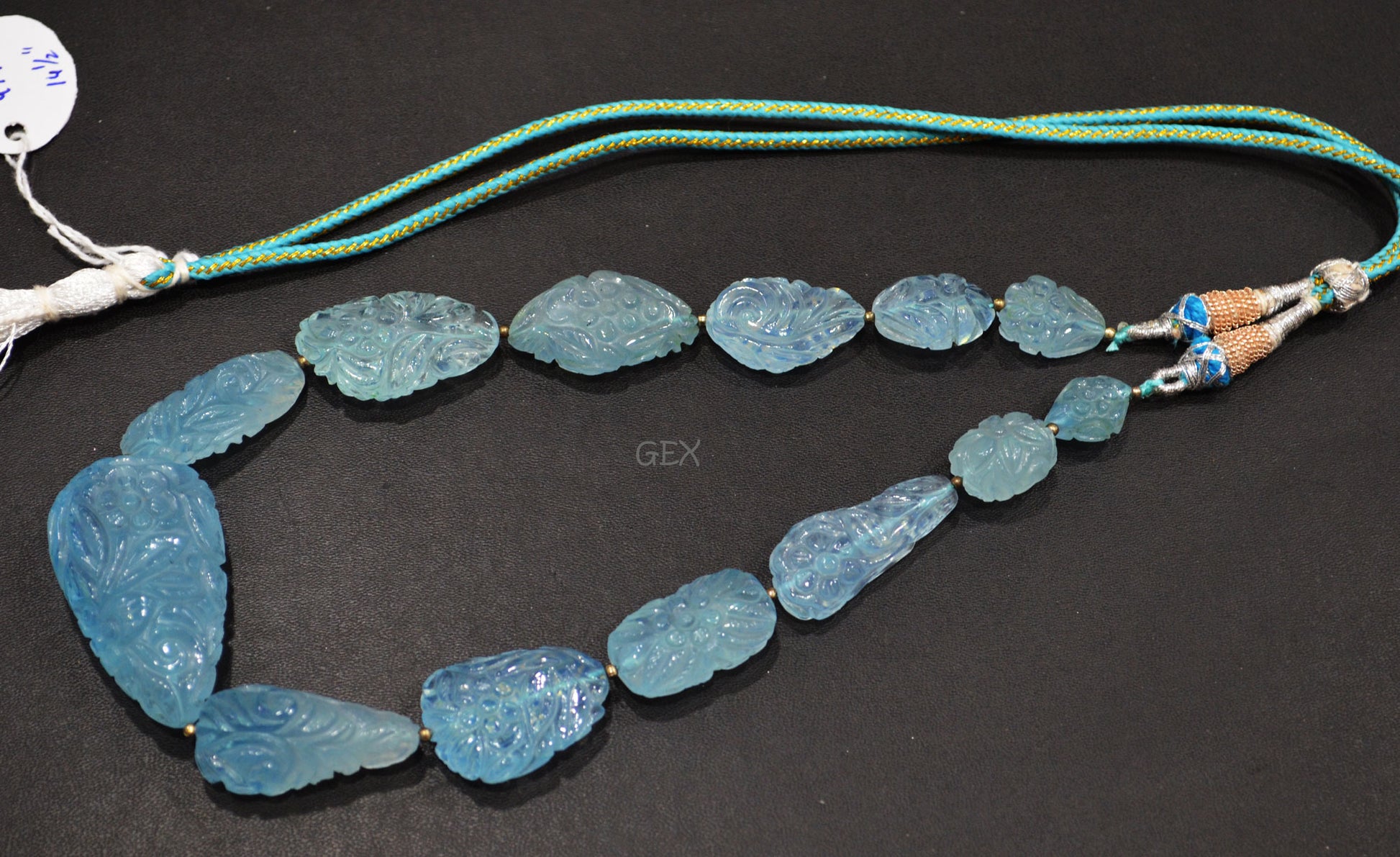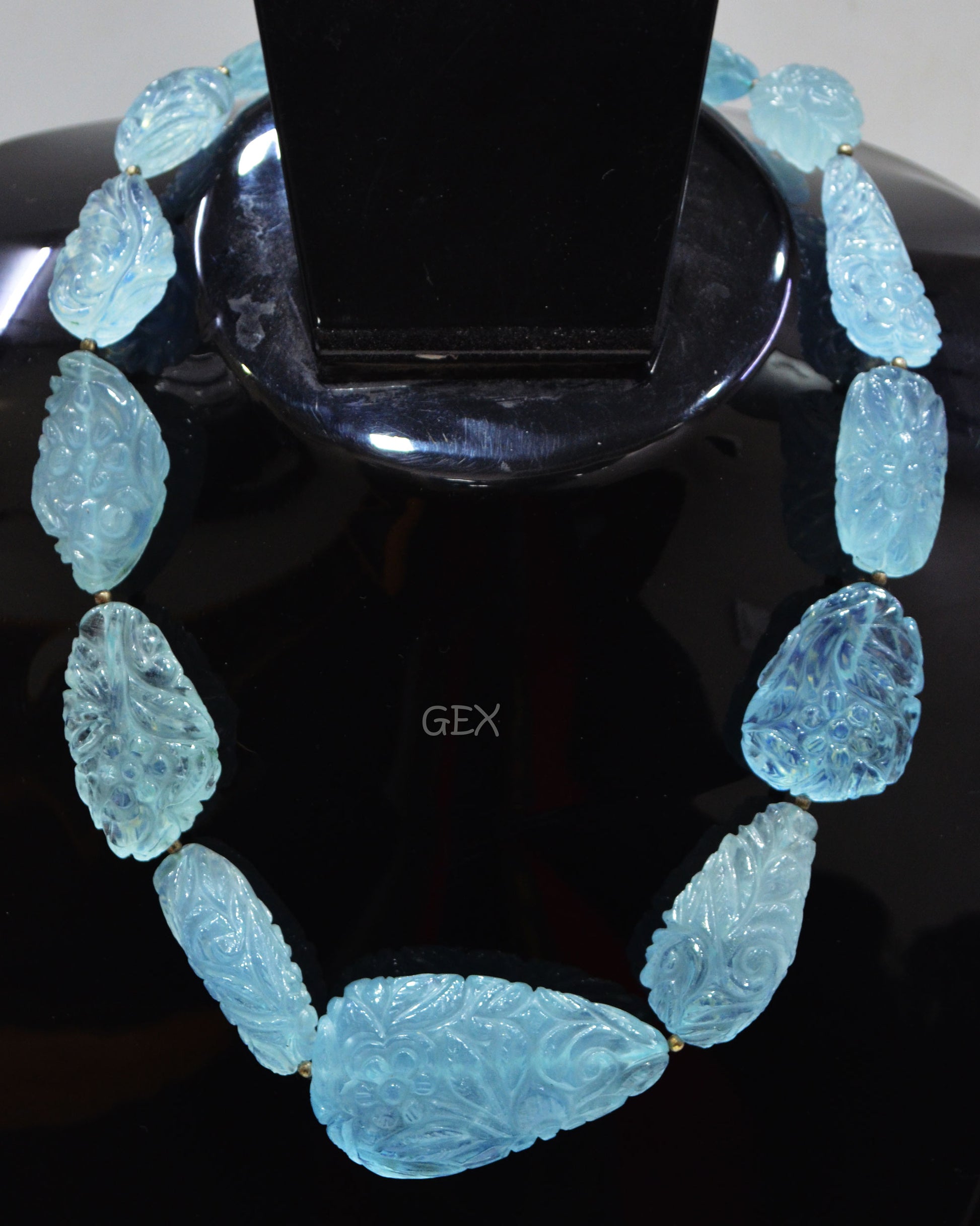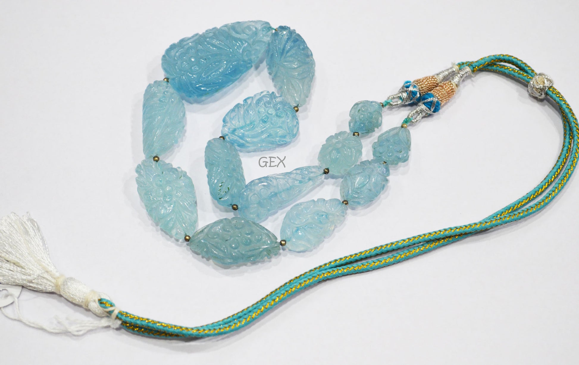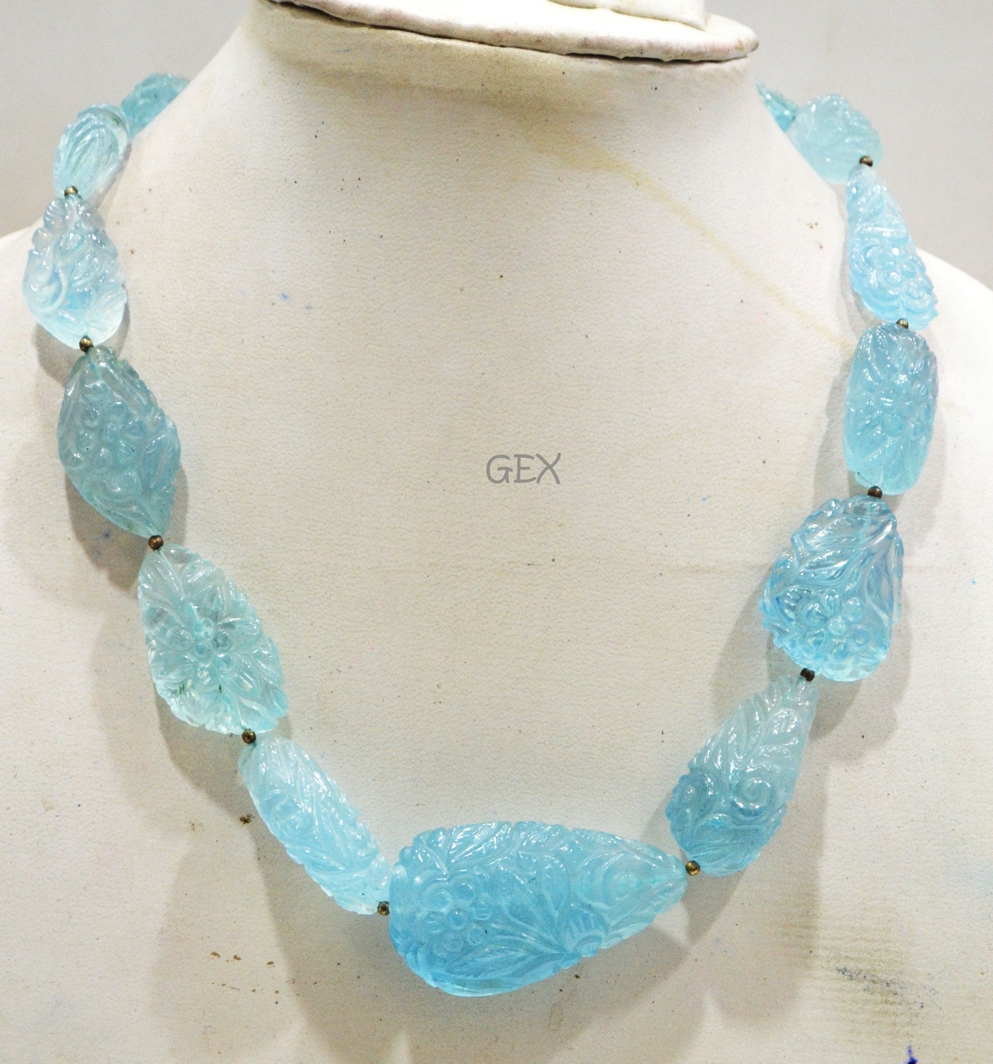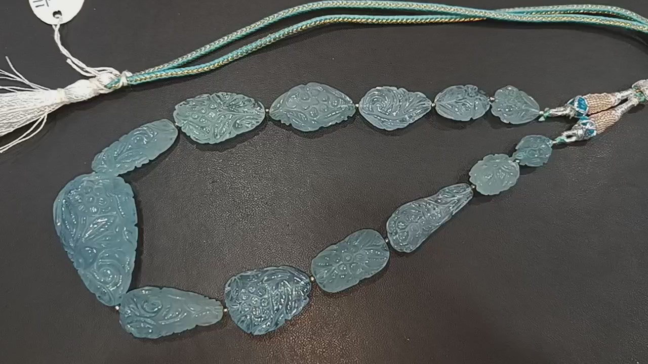 Aquamarine Carved Nuggets Shape Necklace , Aquamarine 1 Line Necklace 14.5 Inches Long With Adjustable Tussle , 13x17 - 26x46 mm , 31892
