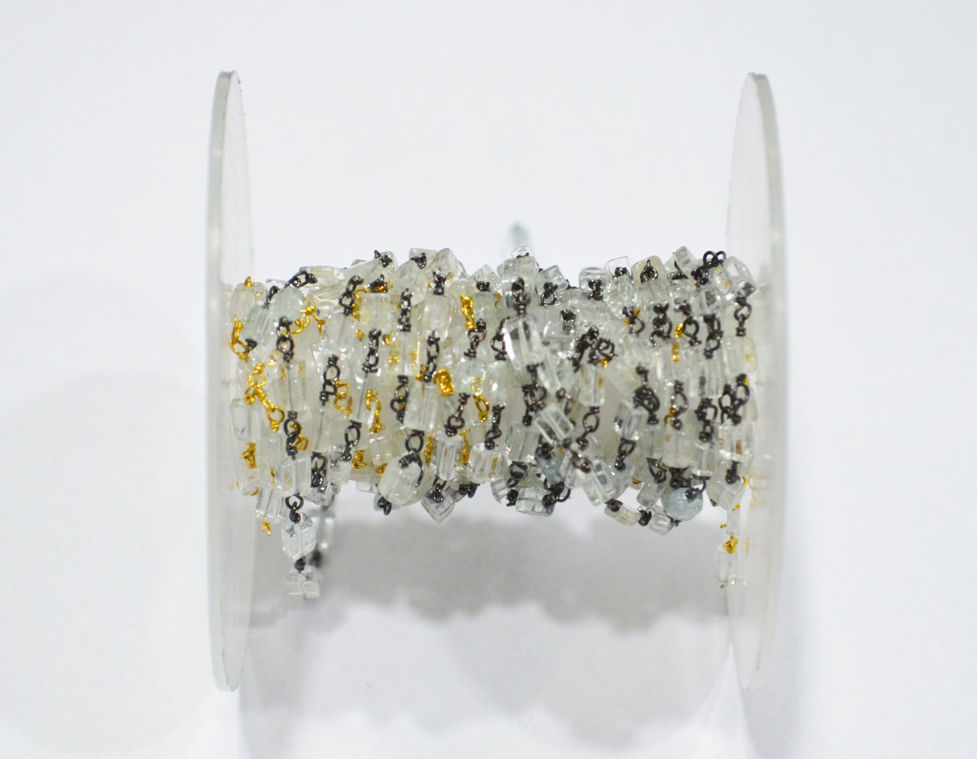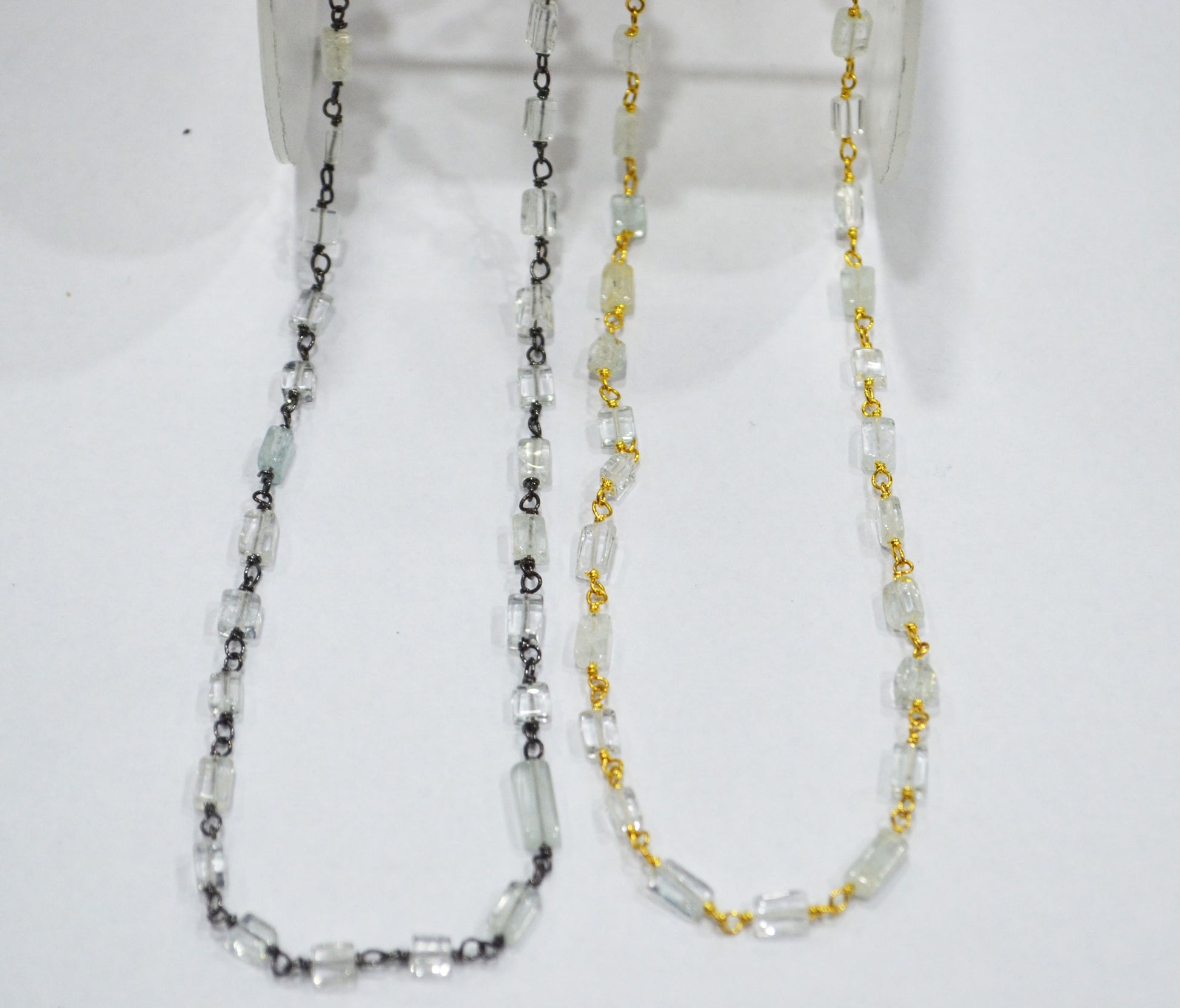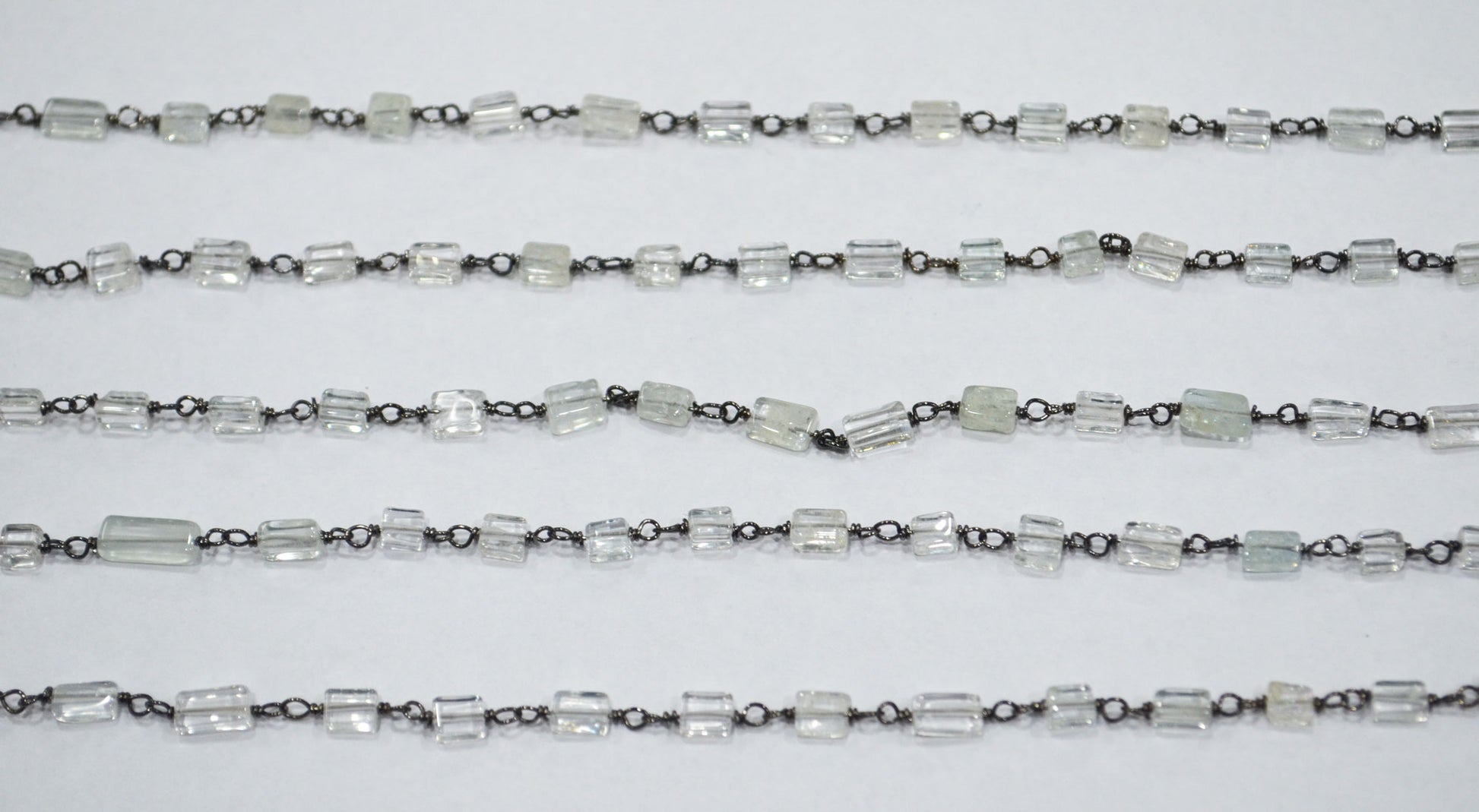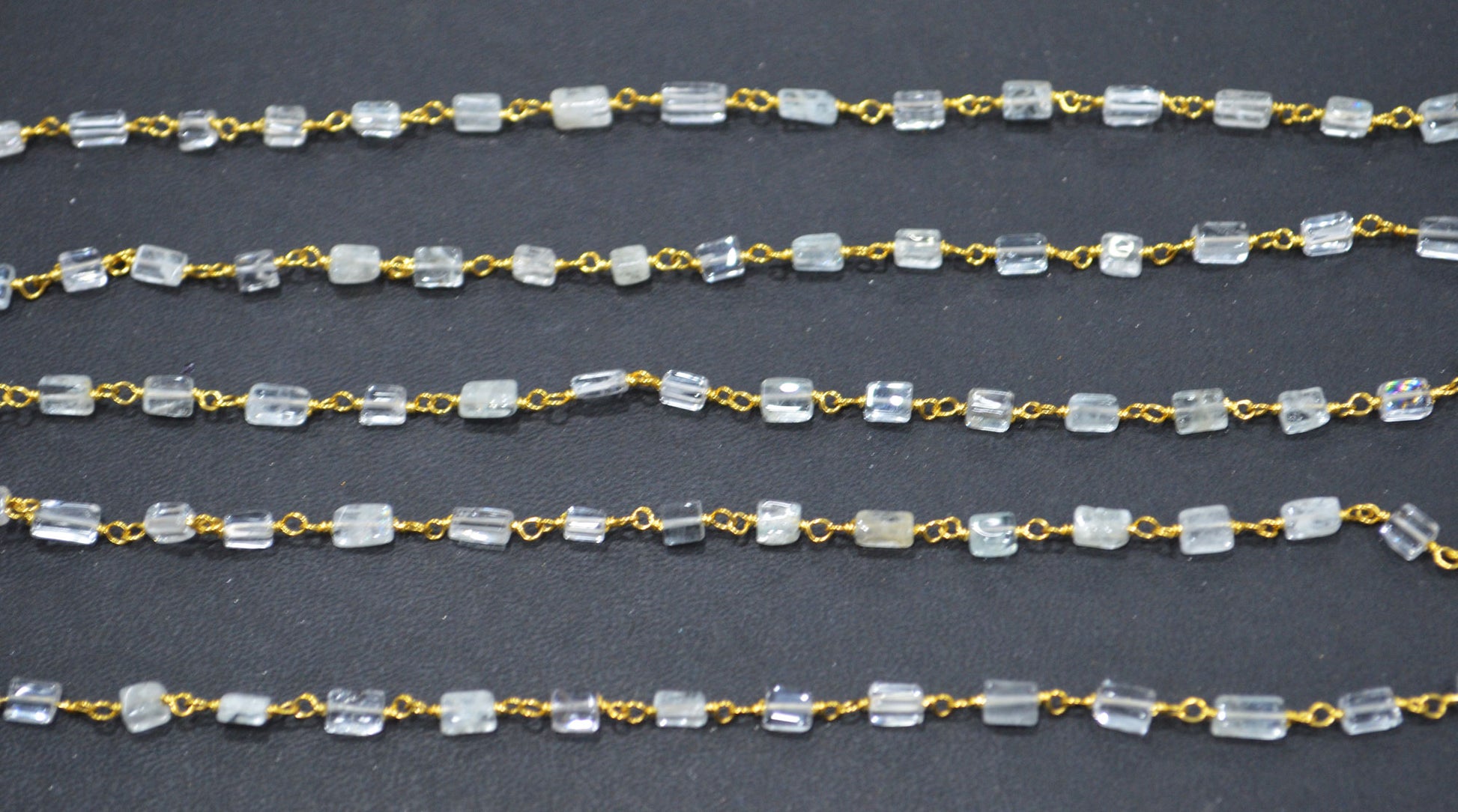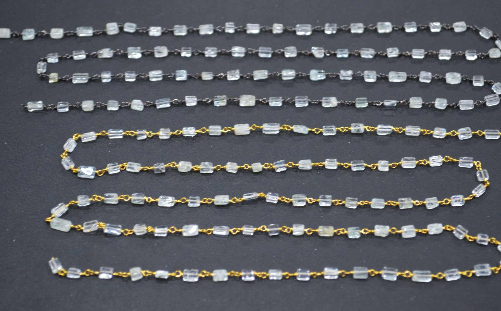 Aquamarine Smooth Rectangle Shape Rosary Beaded Chain , Aquamarine Wire Wrapped Chain , 2 - 5 mm , RB-6415