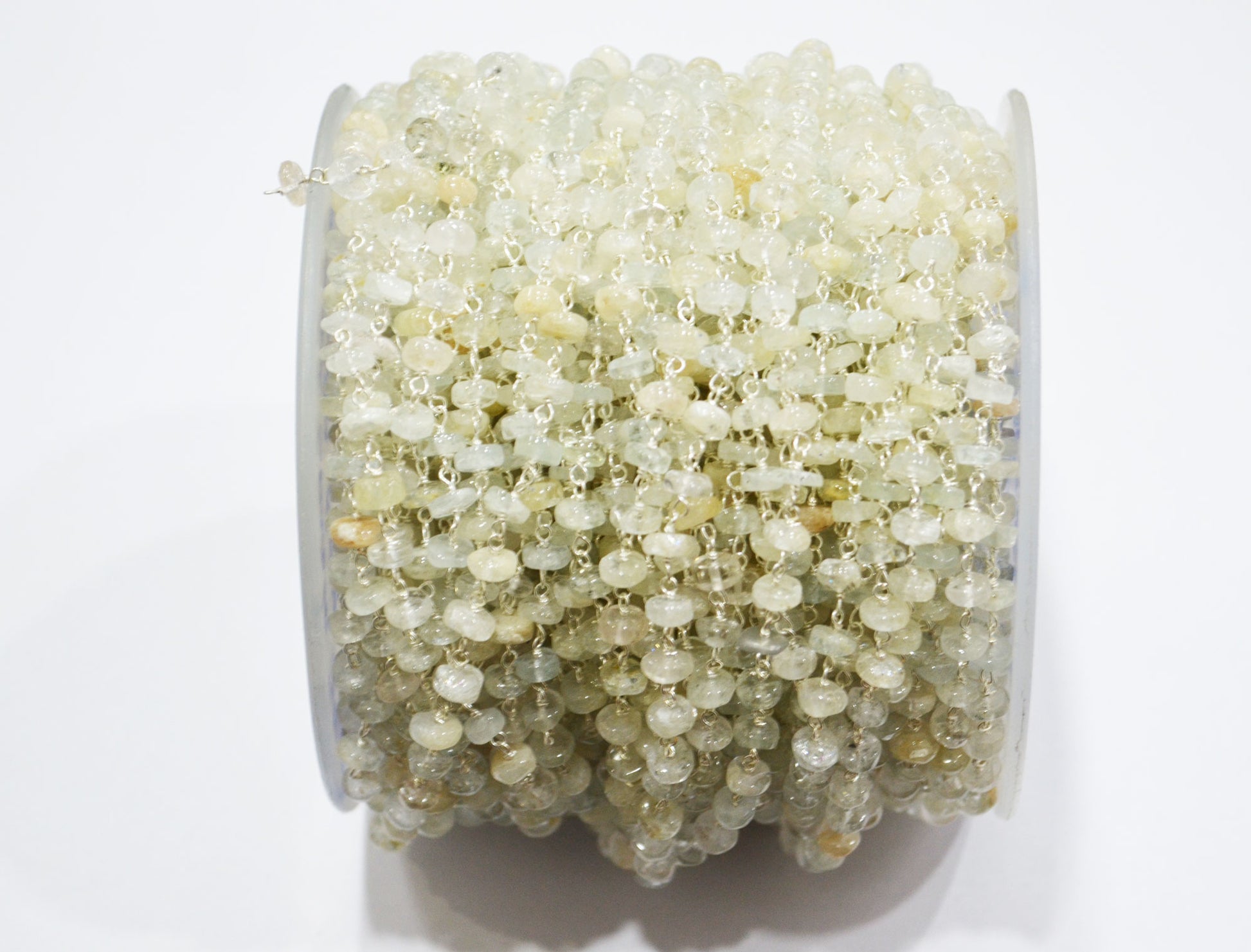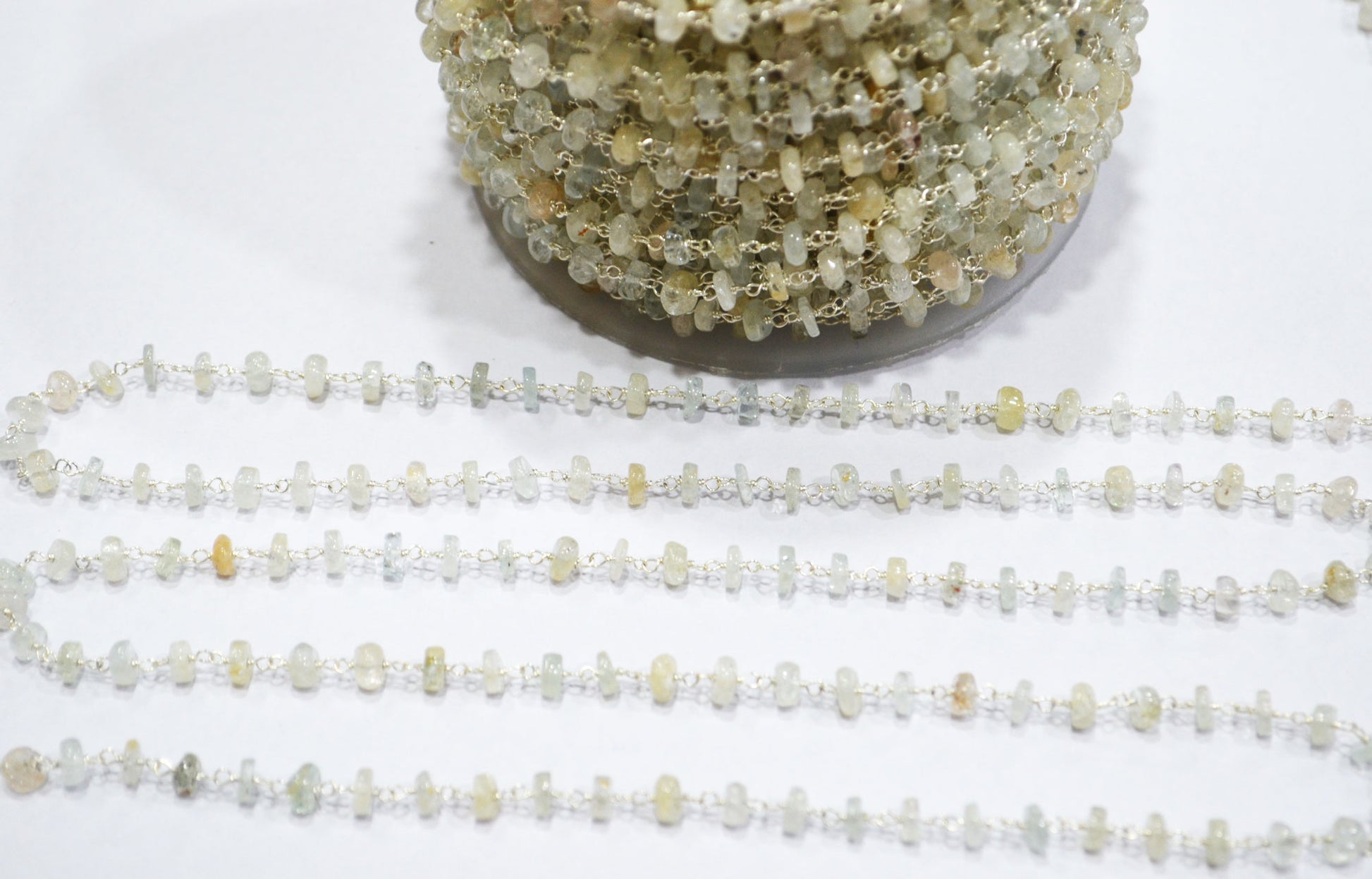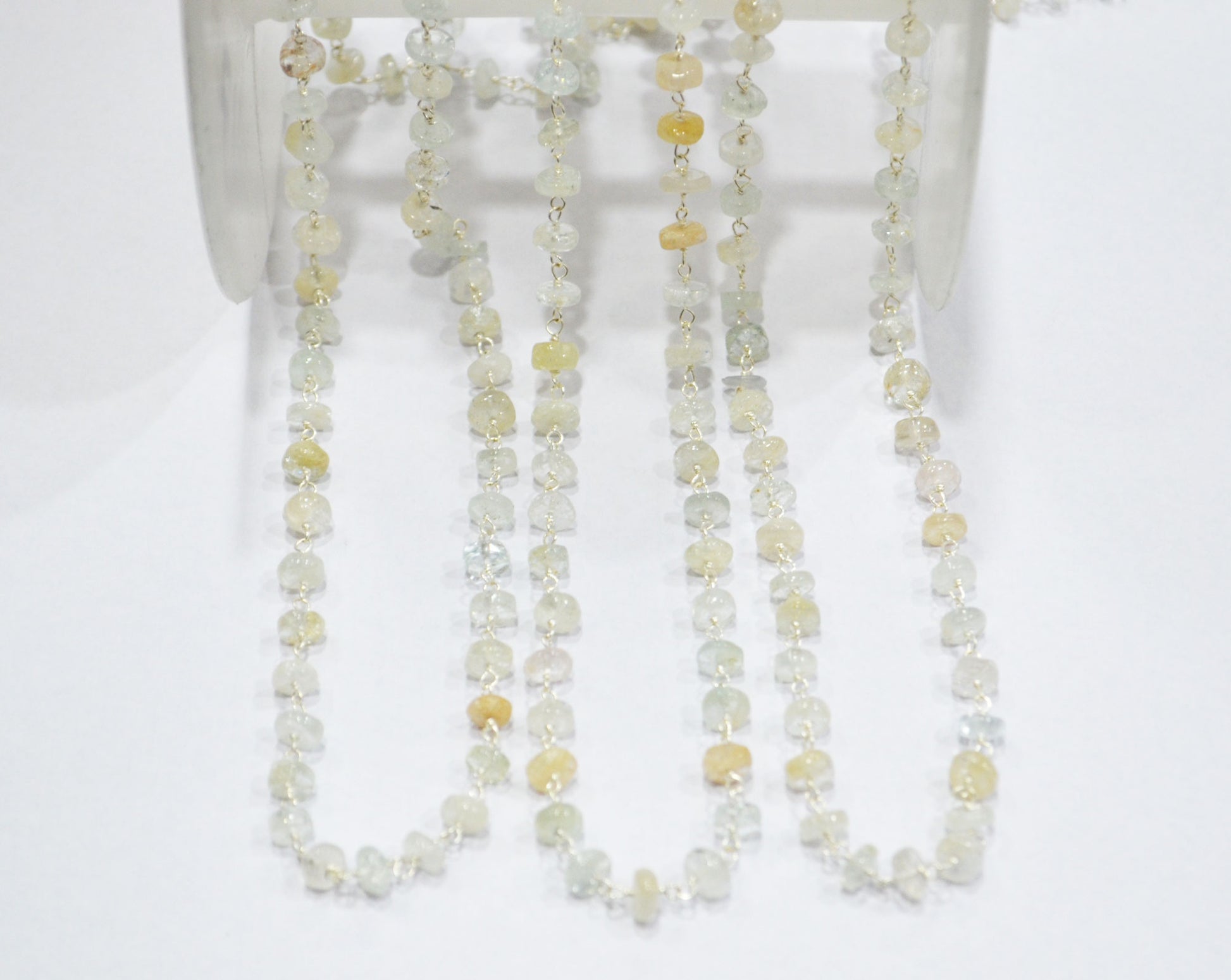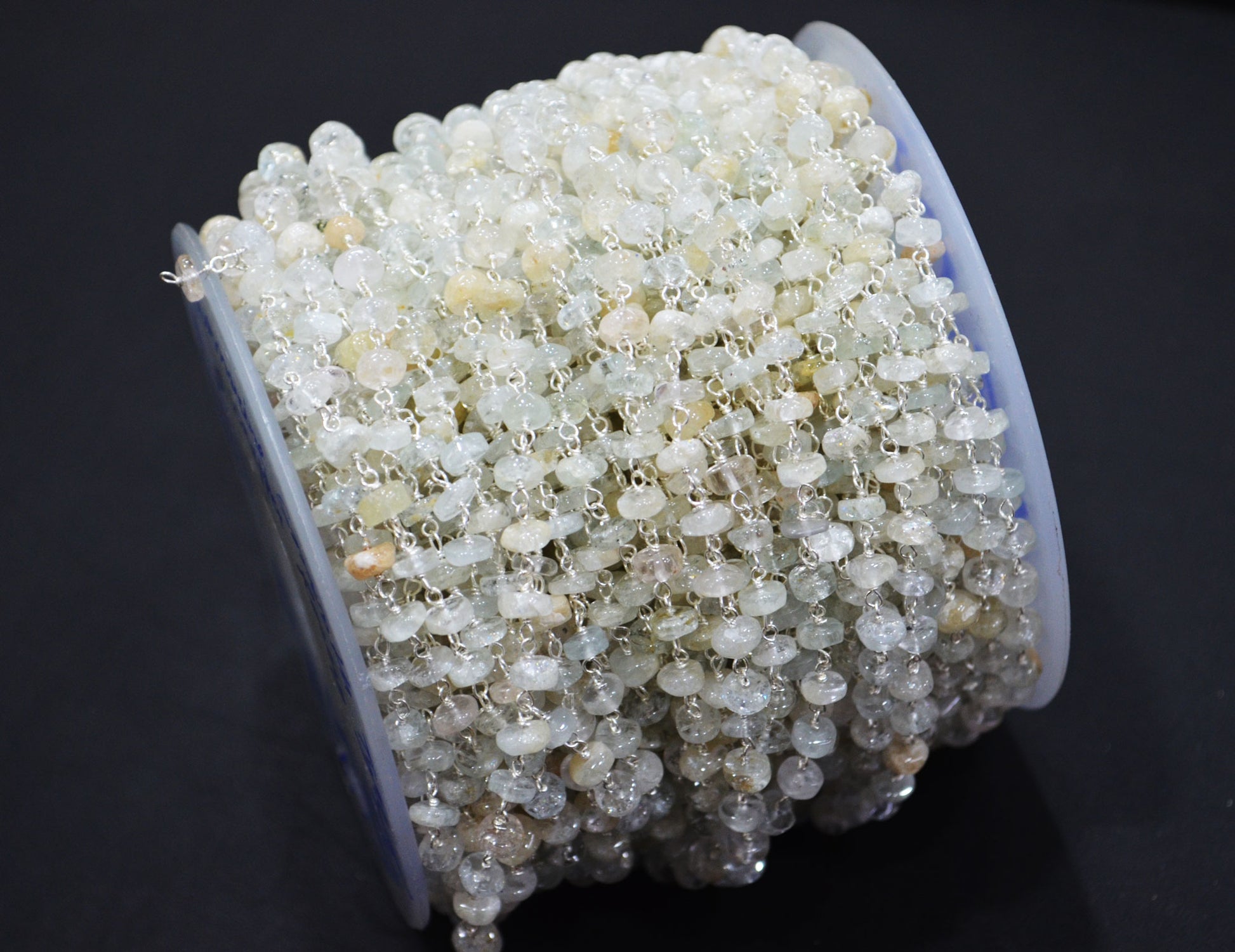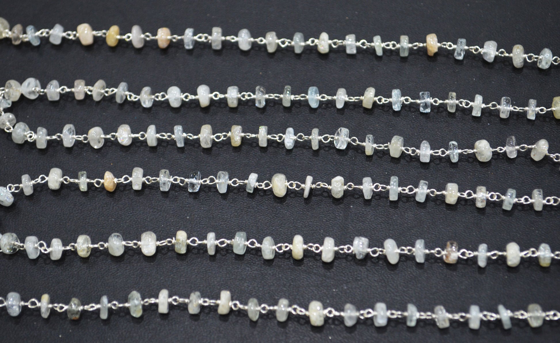 Aquamarine Smooth Tyre Shape Rosary Beaded Chain , Aquamarine Wire Wrapped Chain , 5 mm , RB-6304