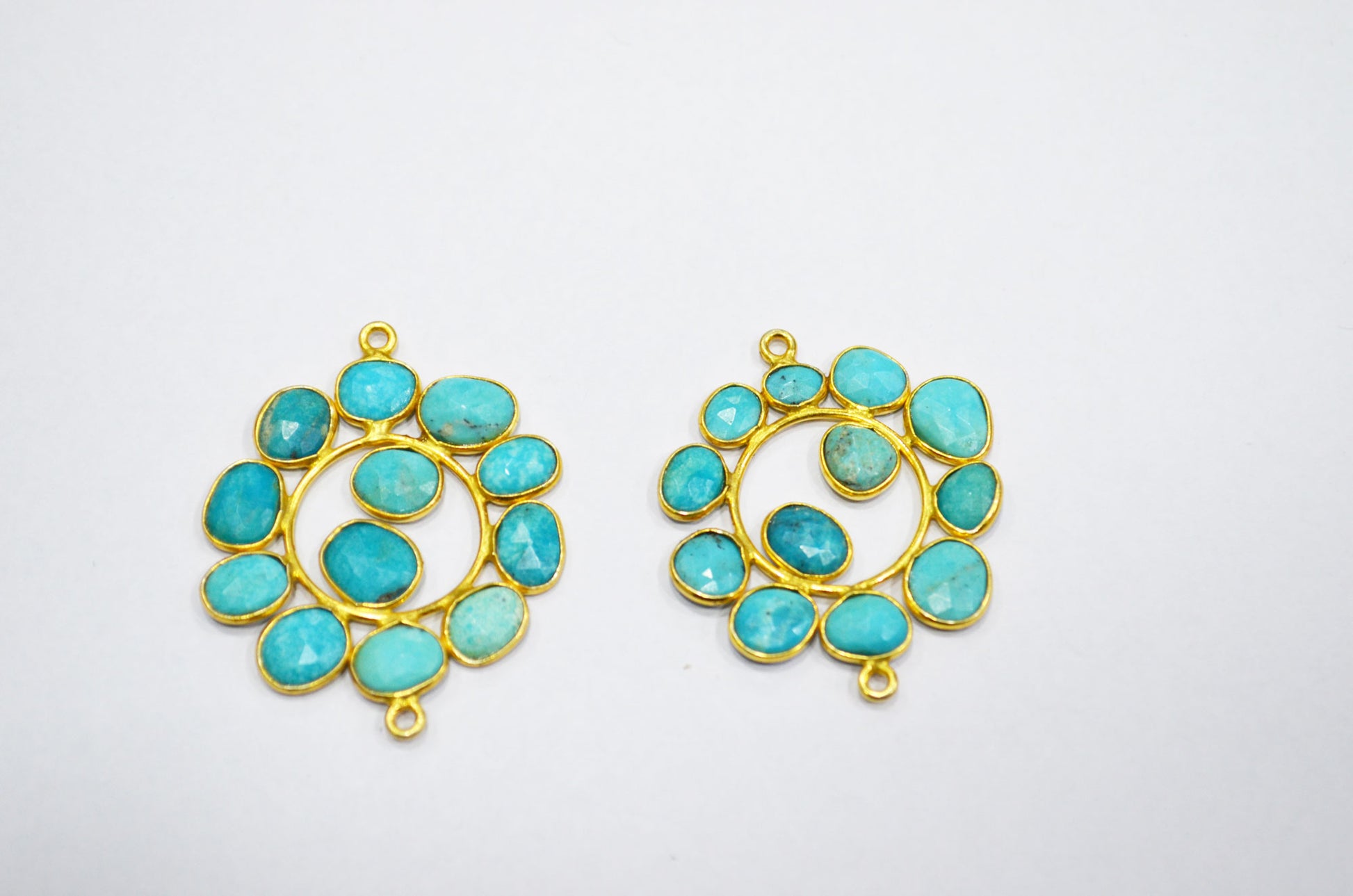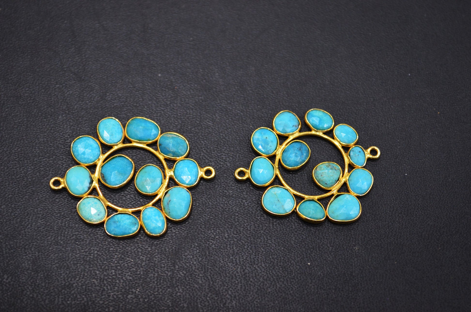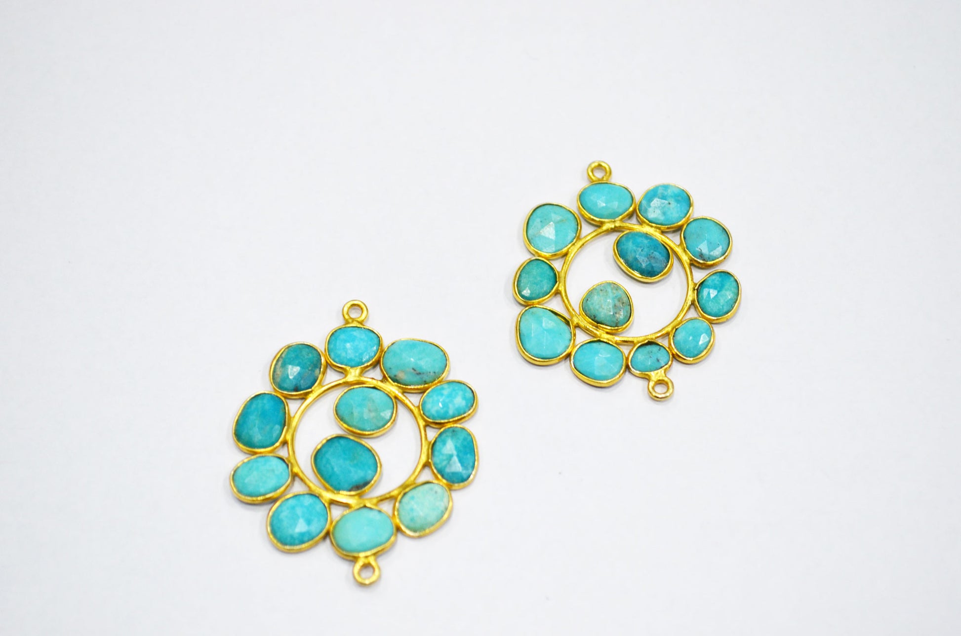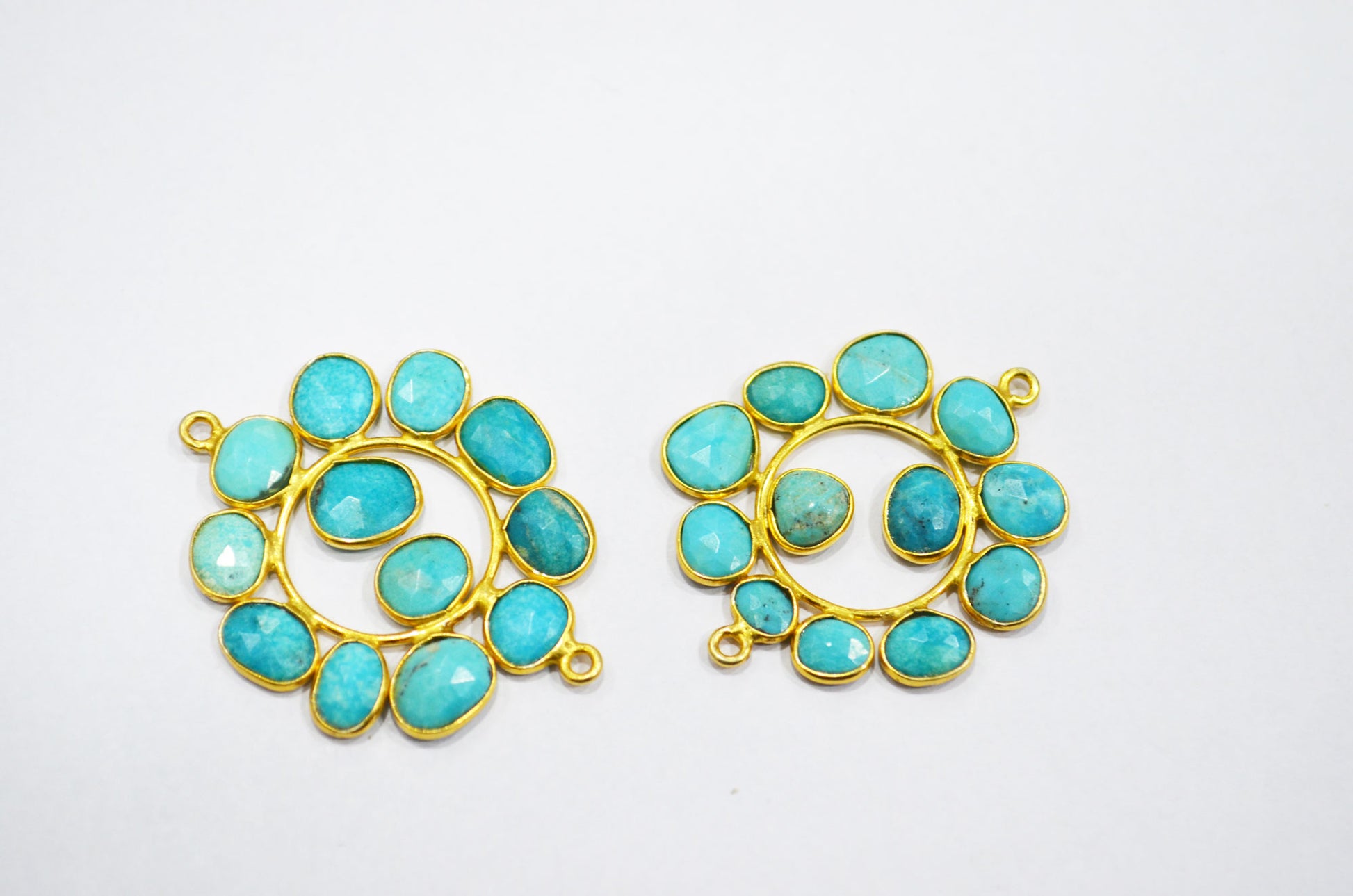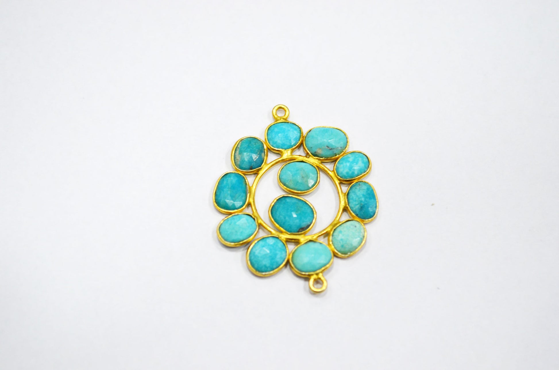 Arizona Turquoise Sterling Silver Coin Shape Connector , Natural Arizona Turquoise Faceted Double Bail Connector , Sold By Piece , 3 - 3.50 cm , RB-6073