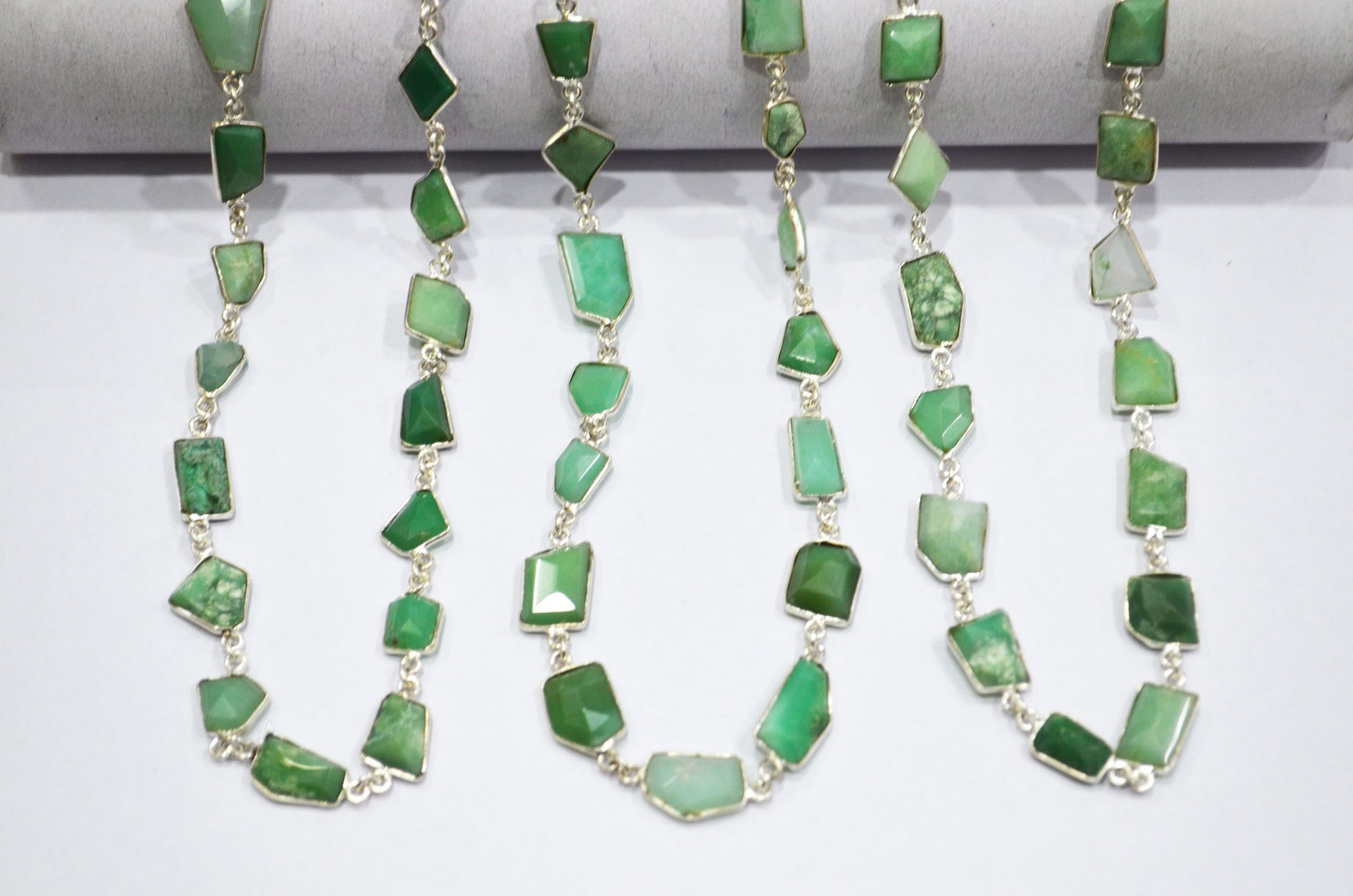 Australian Chrysoprase Fancy Cut Shape Connector Chain , Australian Chrysoprase Bezel Link Chain , Β 8 - 16 mm , RB-6111