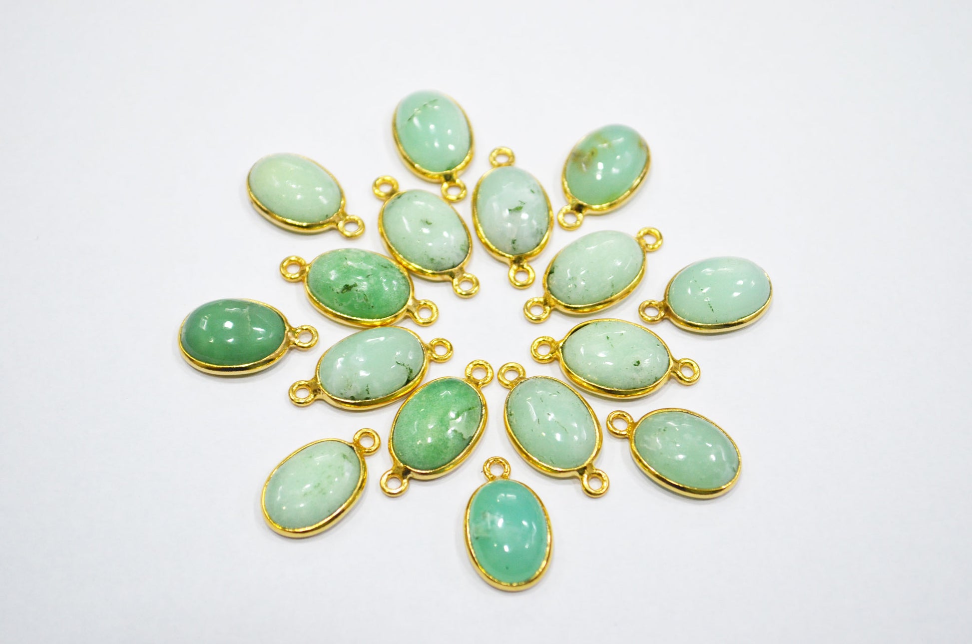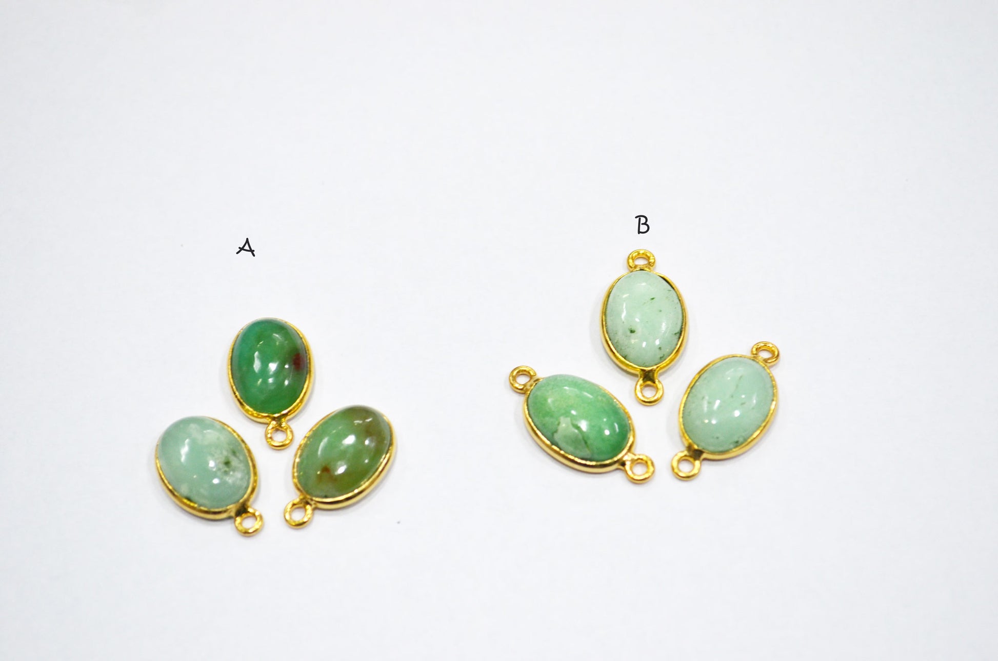 Australian Chrysoprase Smooth Oval Shape Single And Double Bail Connector , Sold By Piece , 10x14 mm , RB-6232