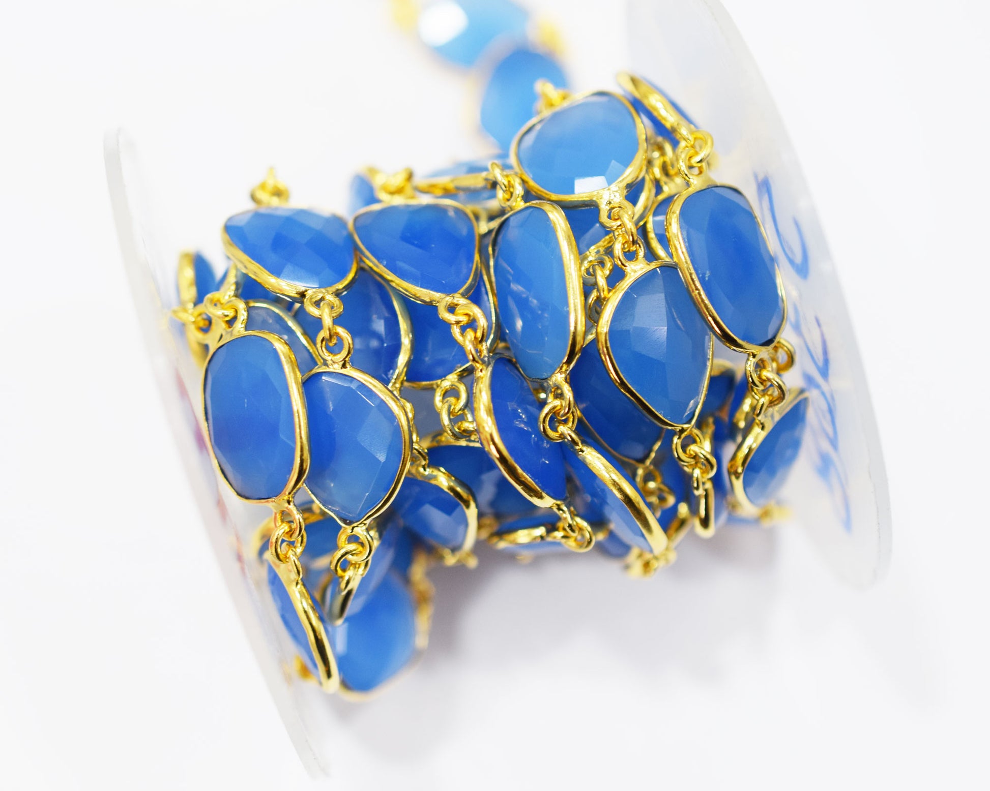 Baby Blue Chalcedony Slice Shape Connector Chain , Baby Blue Chalcedony Free Form Shape Bezel Link Chain , 13x14 - 14x16 mm , RB-6586