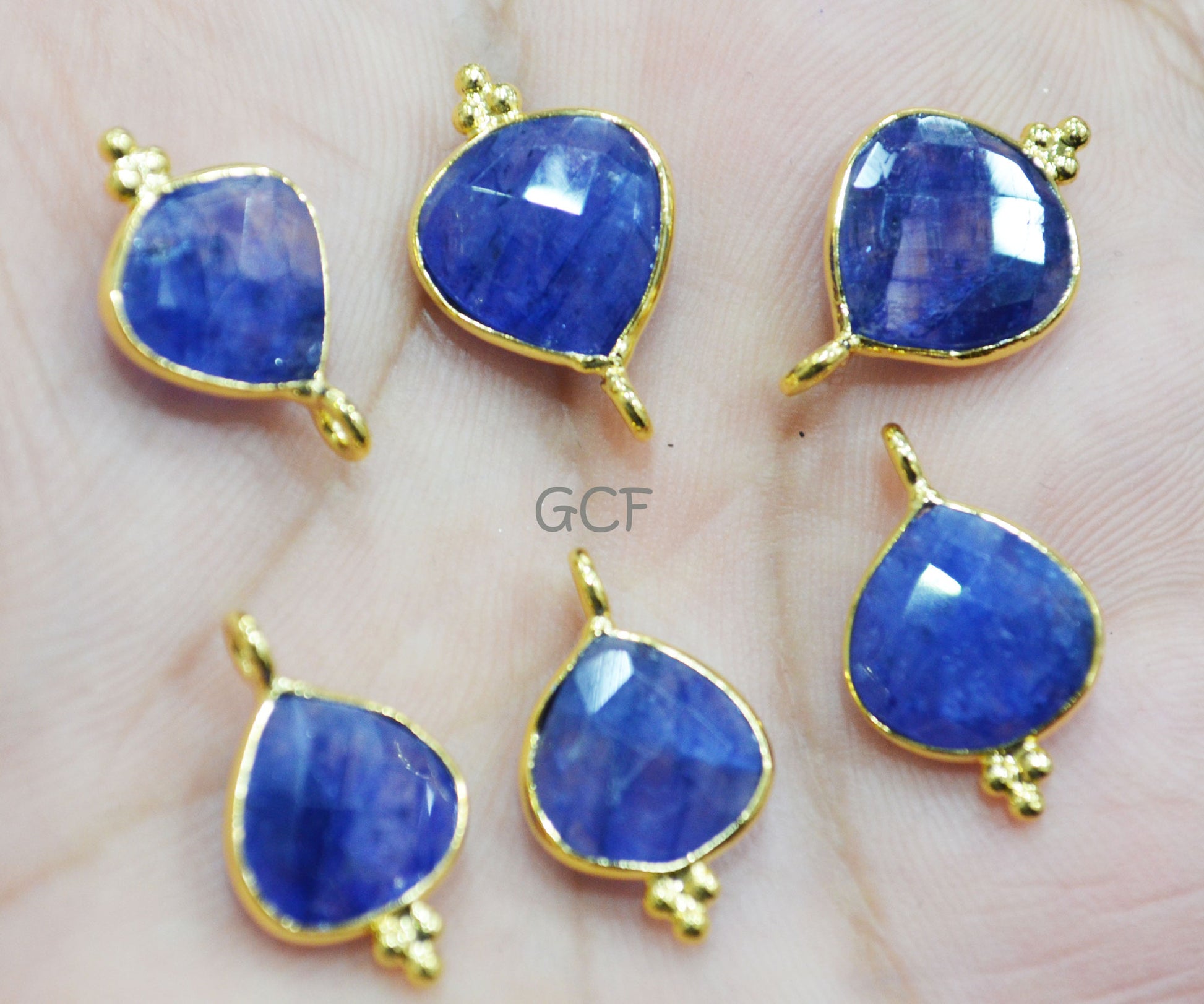 Beryl Sapphire Faceted Heart Shape Connector , Beryl Sapphire Single Bail Heart Shape Bezel Connector , Sold By Piece , 11 mm , RB-6856