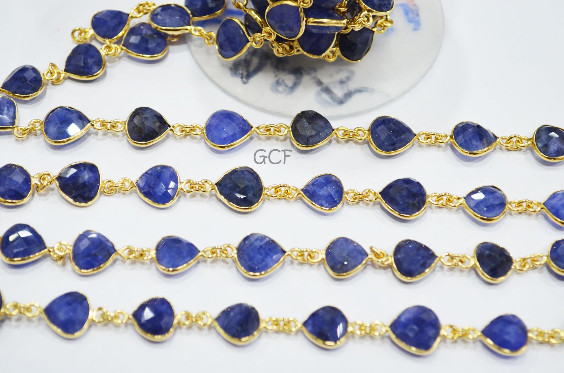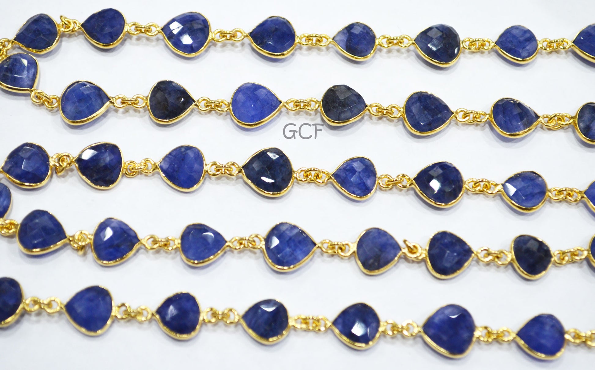 Beryl Sapphire Faceted Heart Shape Connector Chain , Beryl Sapphire Heart Shape Bezel Link ChainΒ , 11 - 12 mm , 6825