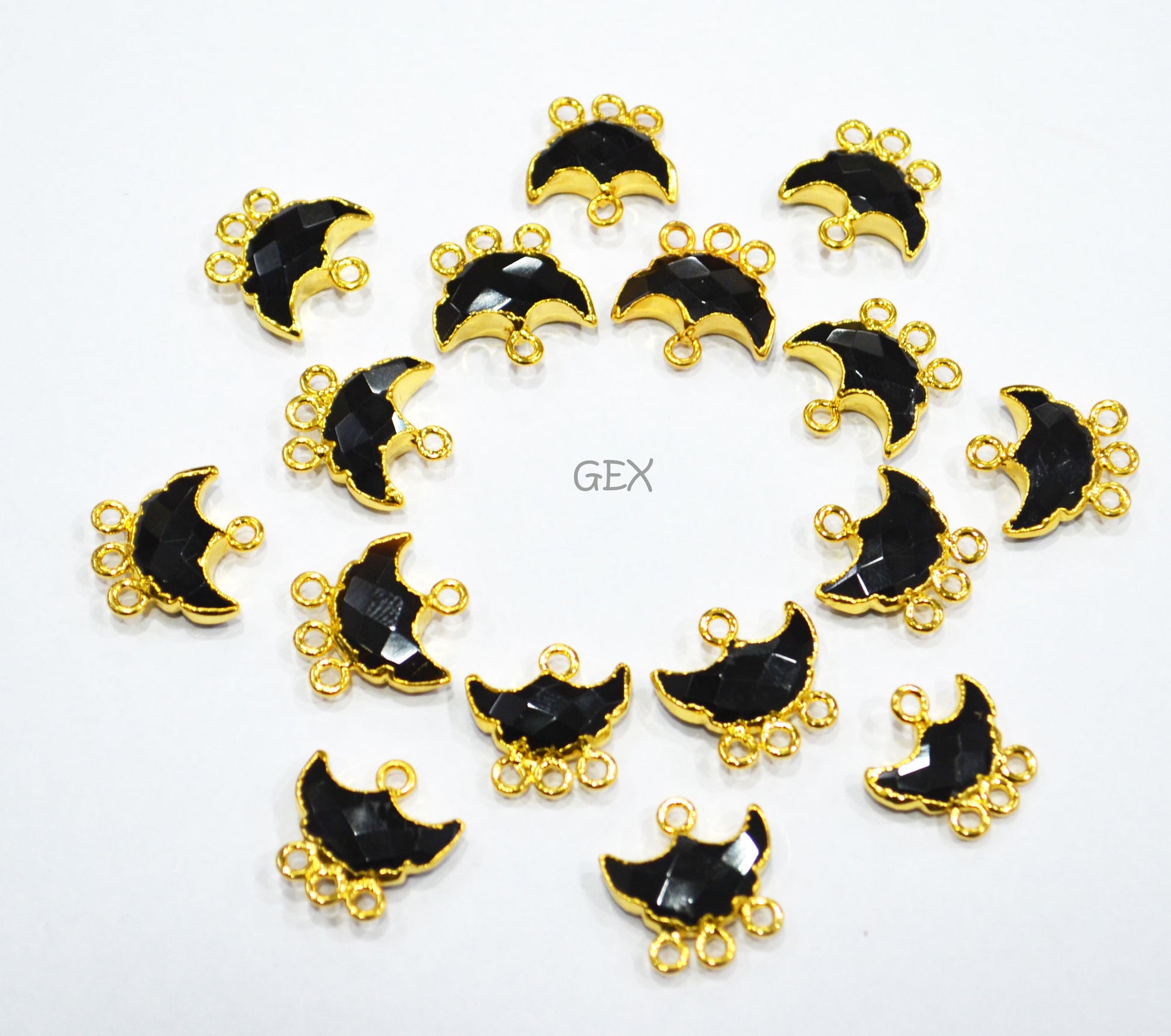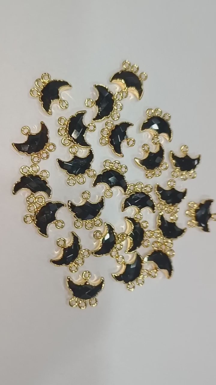 Black Onyx Electroplated Half Moon Shape Connector , Black Onyx Four Bail Faceted Connector Charm , Sold By Piece , 15 - 16 mm , 31909