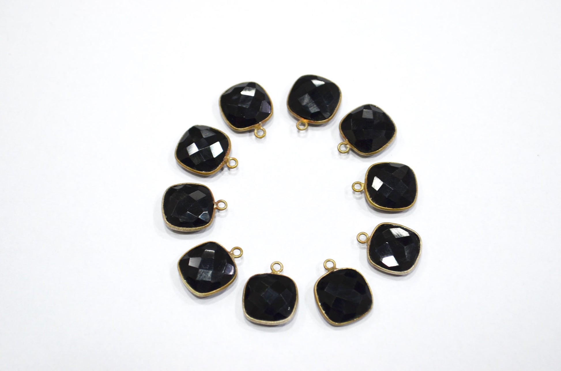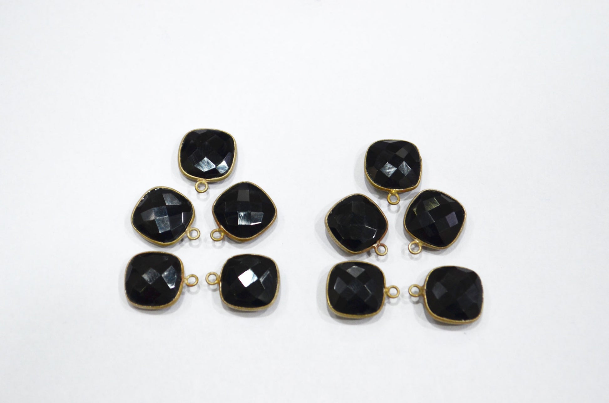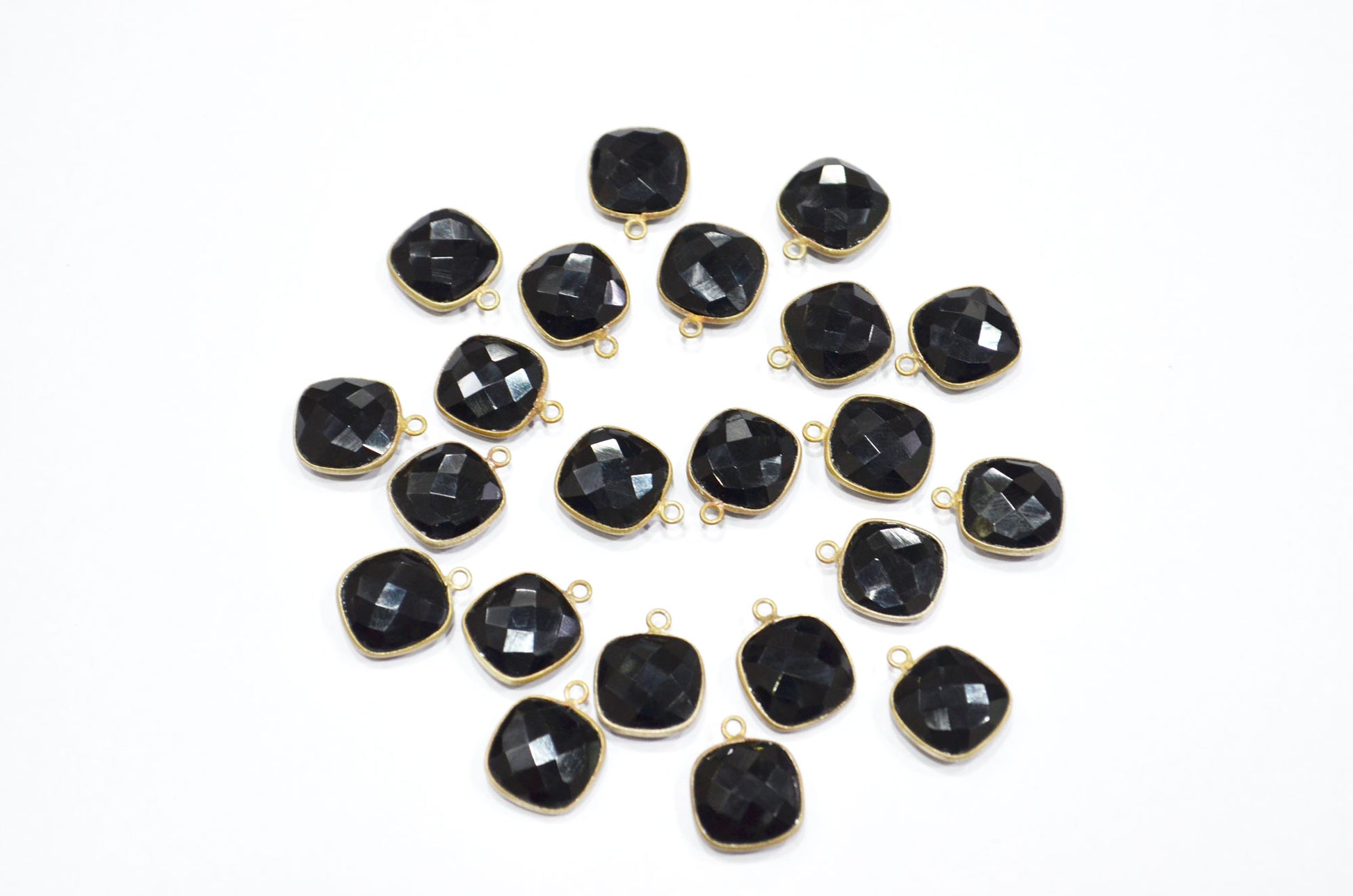 Black Onyx Faceted Cushion Shape Connector , Sold By Piece , 13 mm , RB-5826