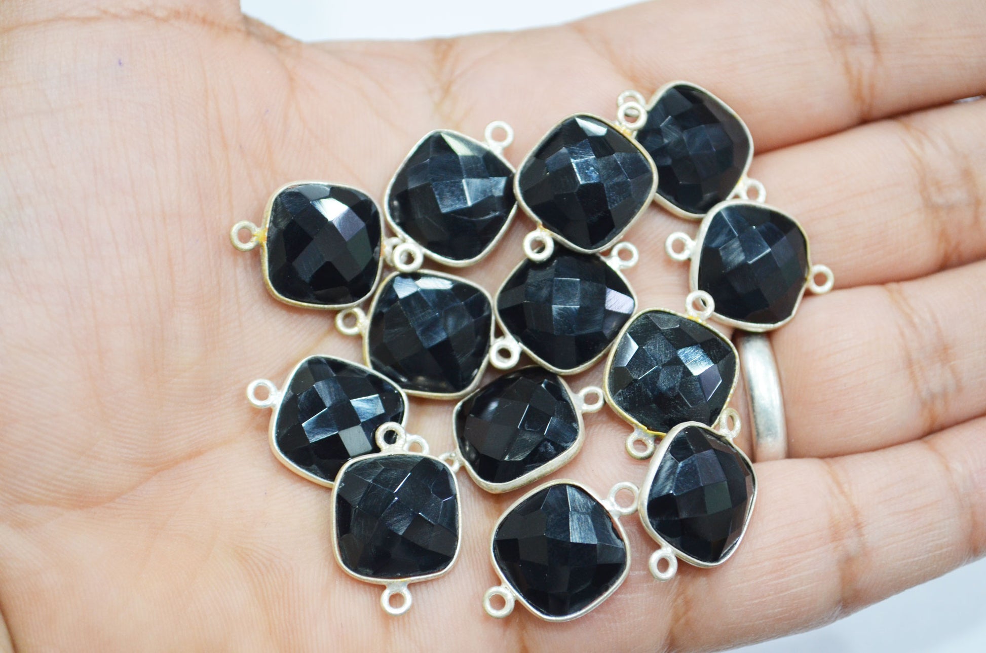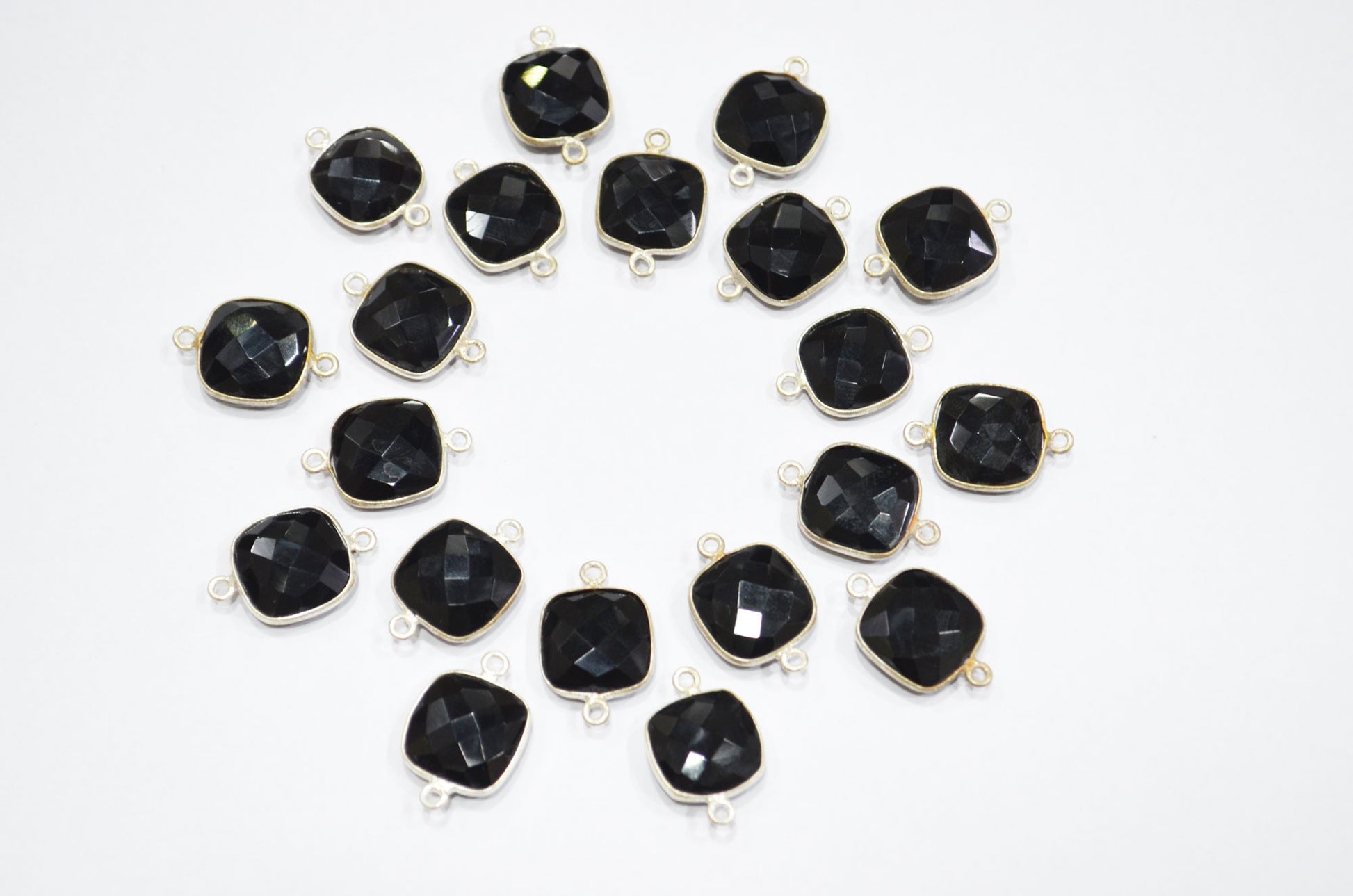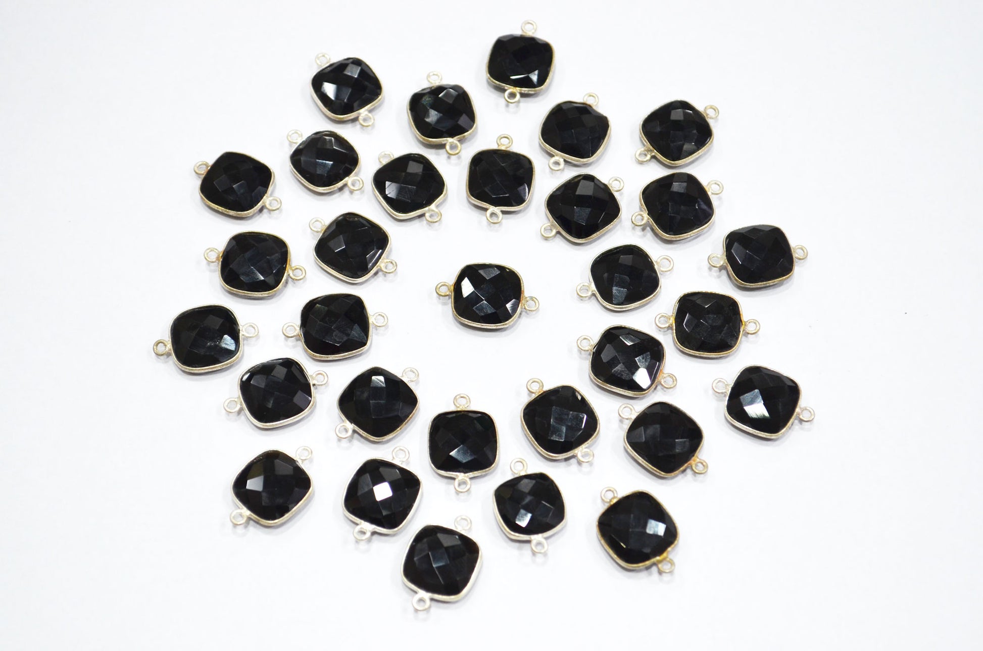 Black Onyx Faceted Cushion Shape Connector , Sold By Piece , 13 mm , RB-5827