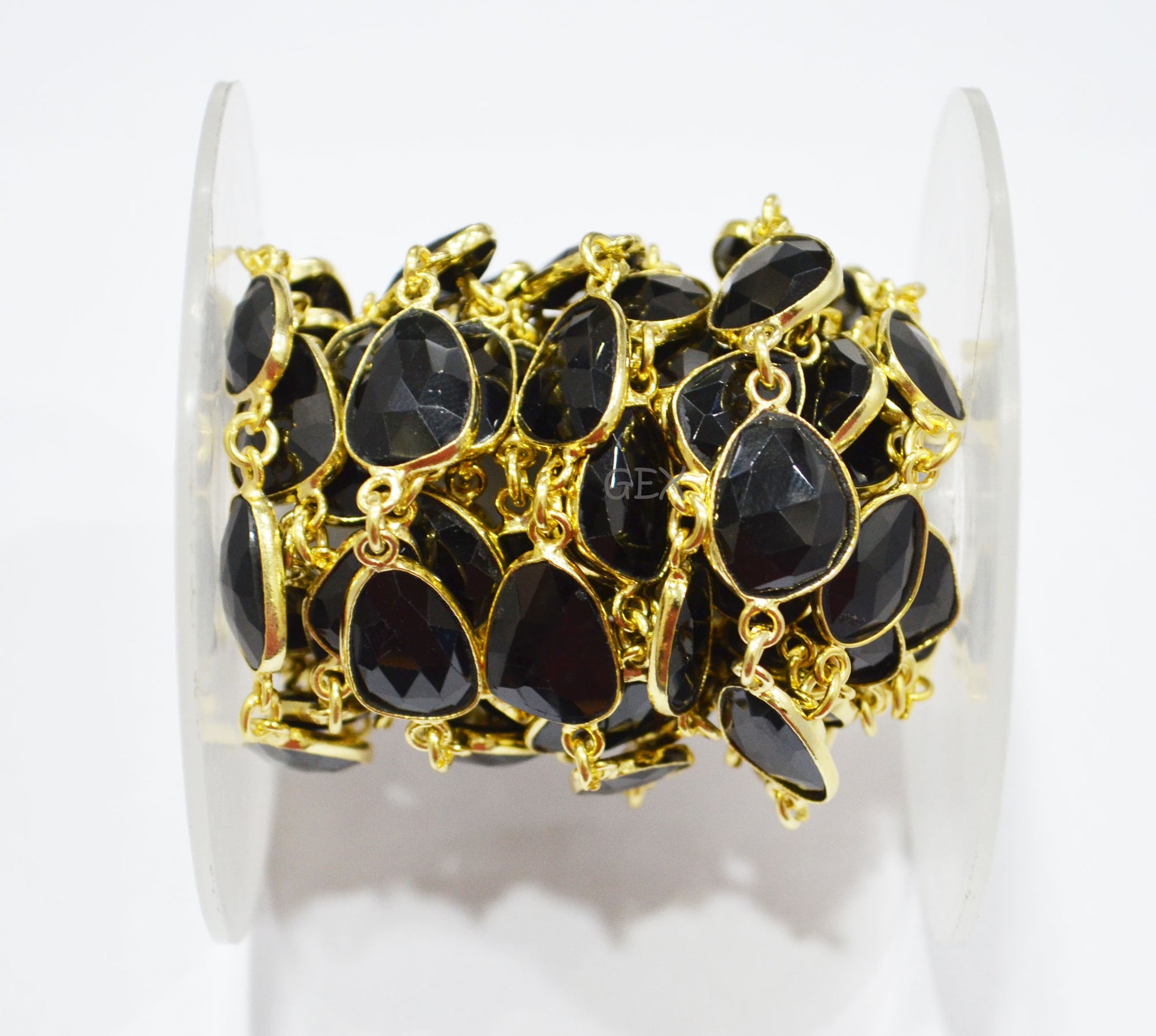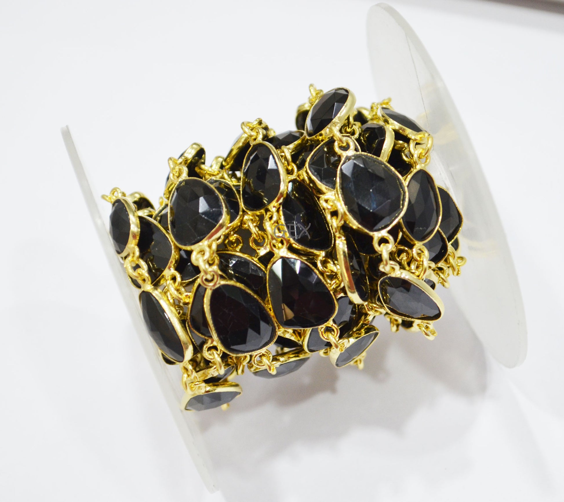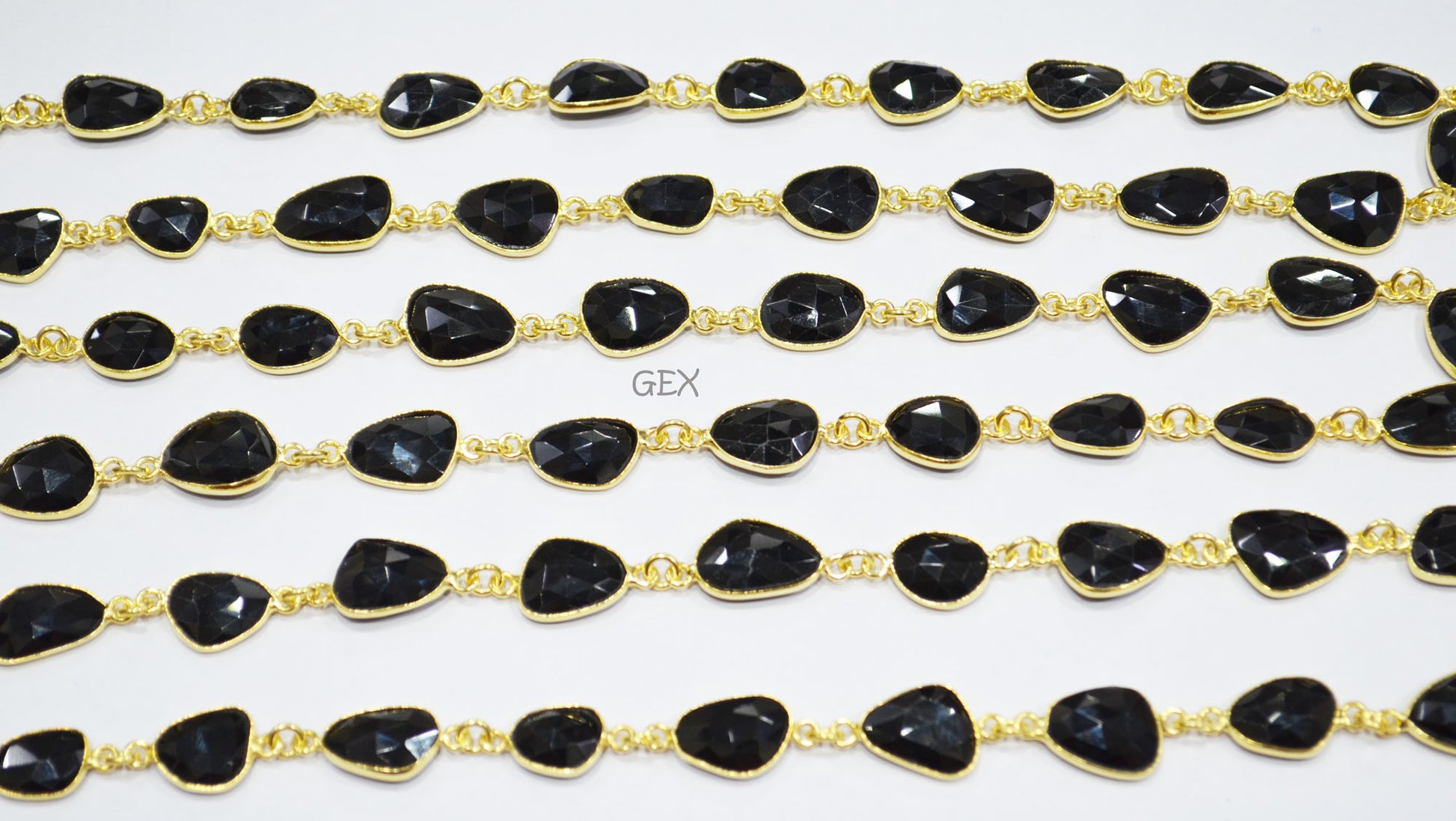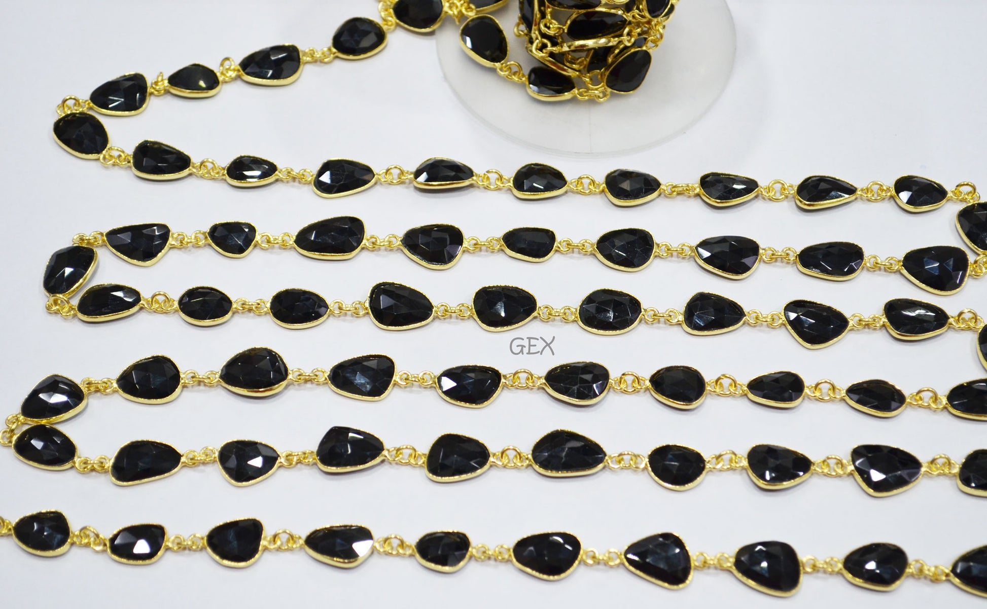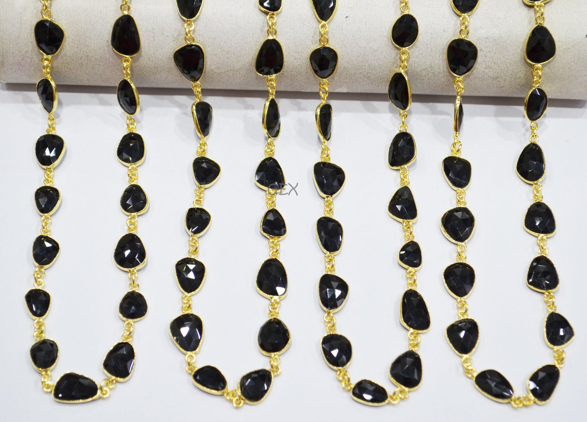 Black Onyx Faceted Flat Slice Shape Connector Chain , Black Onyx Free Form Shape Bezel Link Chain , 9x12 - 11x14 mm , RB-7198
