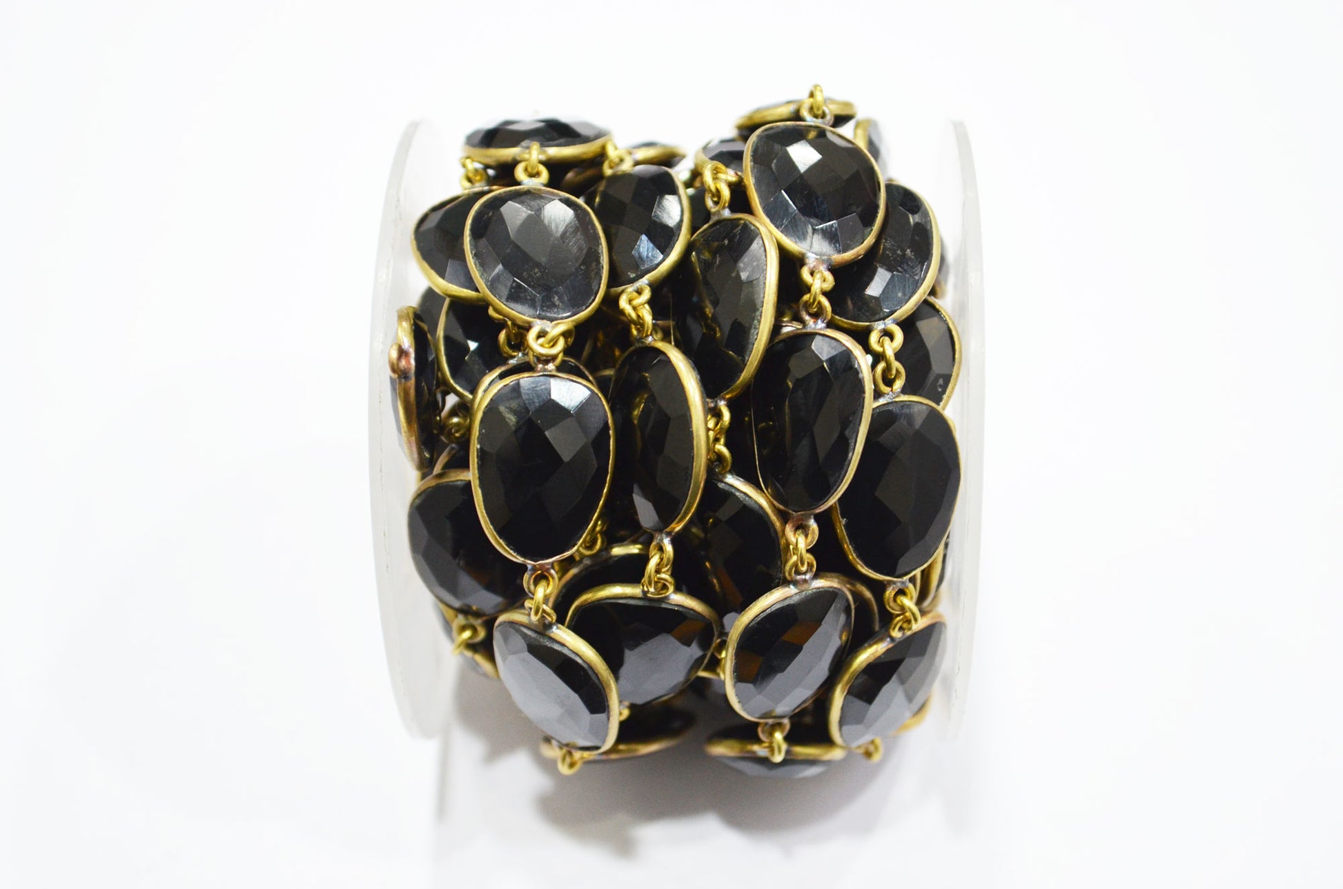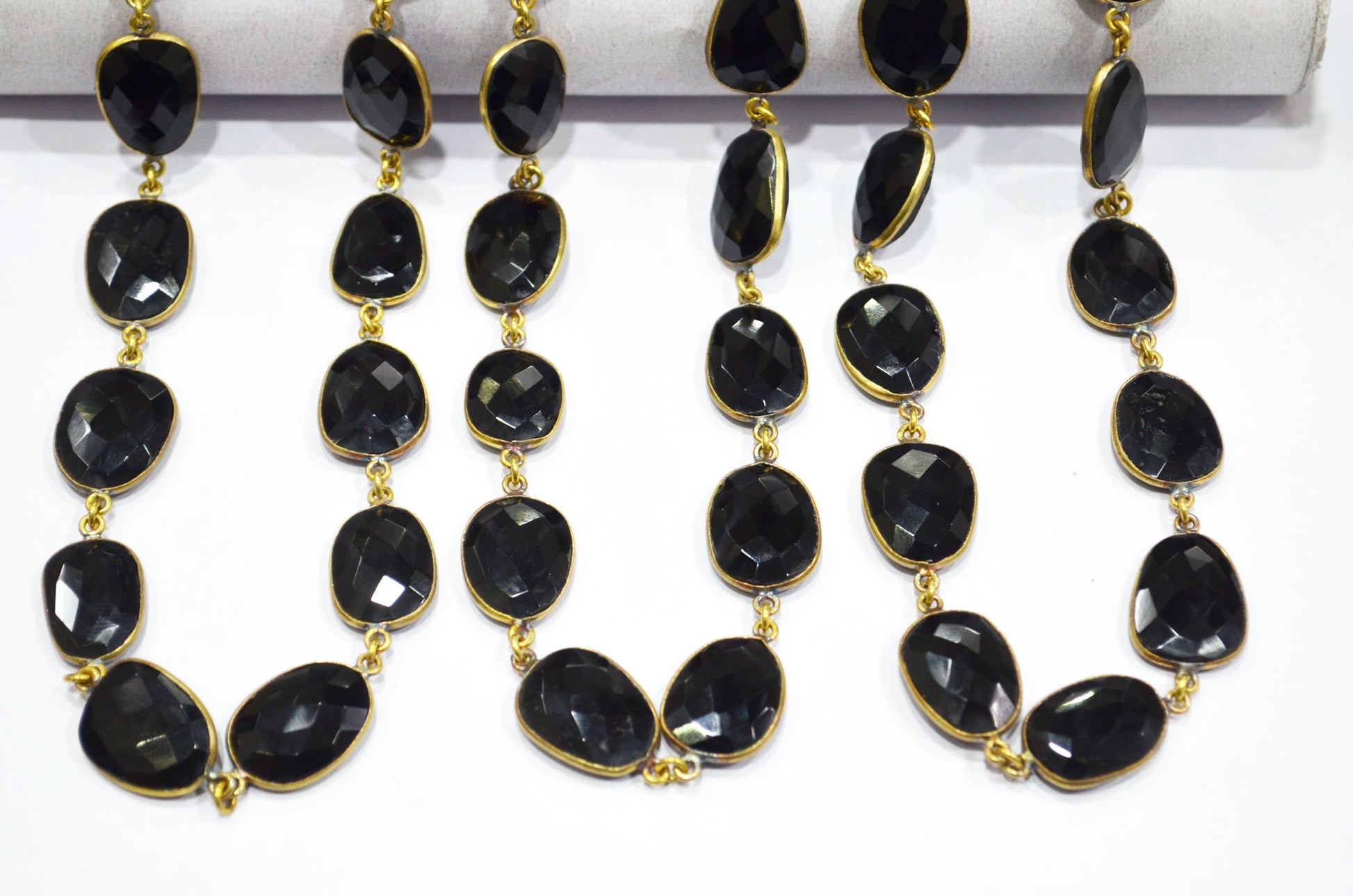 Black Onyx Faceted Slice Shape Connector Chain , Black Onyx Free Form Shape Bezel Link Chain , 14 - 19 mm , RB-5999