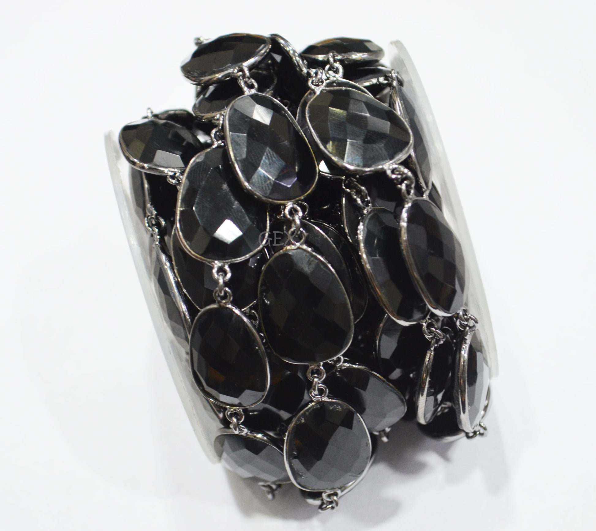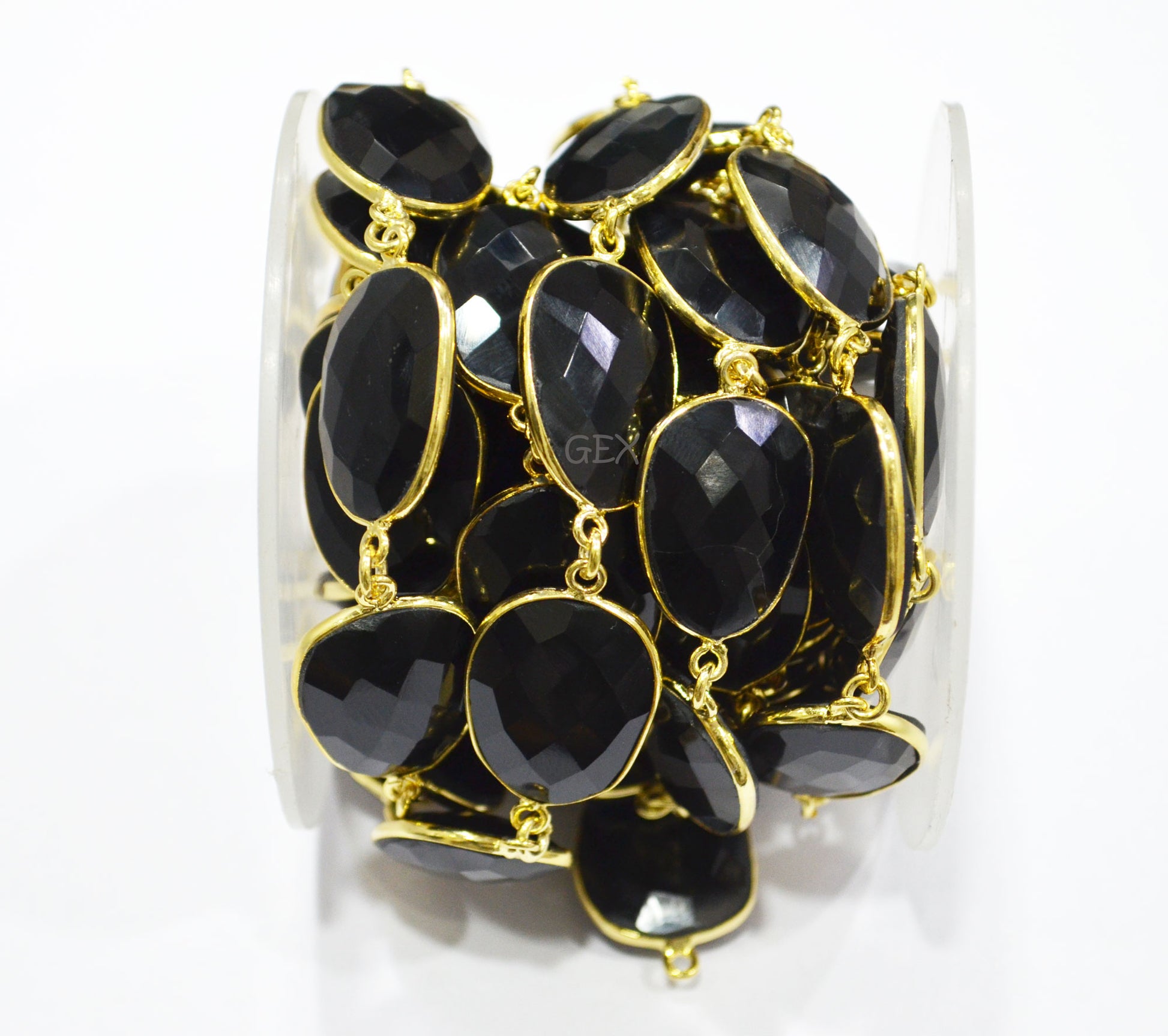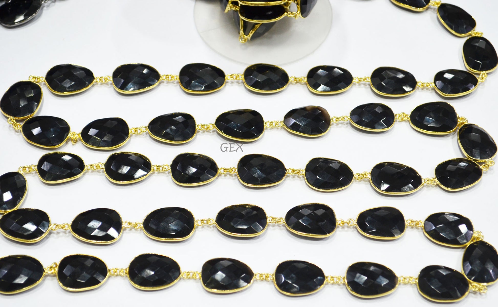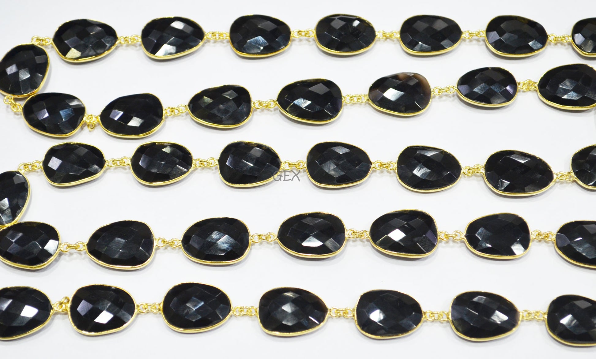 Black Onyx Faceted Slice Shape Connector Chain , 16x21 - 17x23 mm , RB-7237