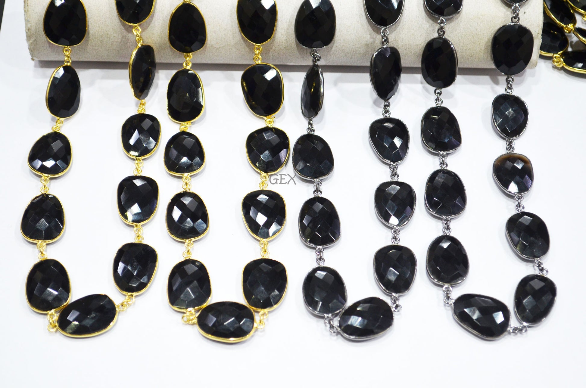 Black Onyx Faceted Slice Shape Connector Chain , Black Onyx Free Form Shape Bezel Link Chain , 16x21 - 17x23 mm , RB-7237