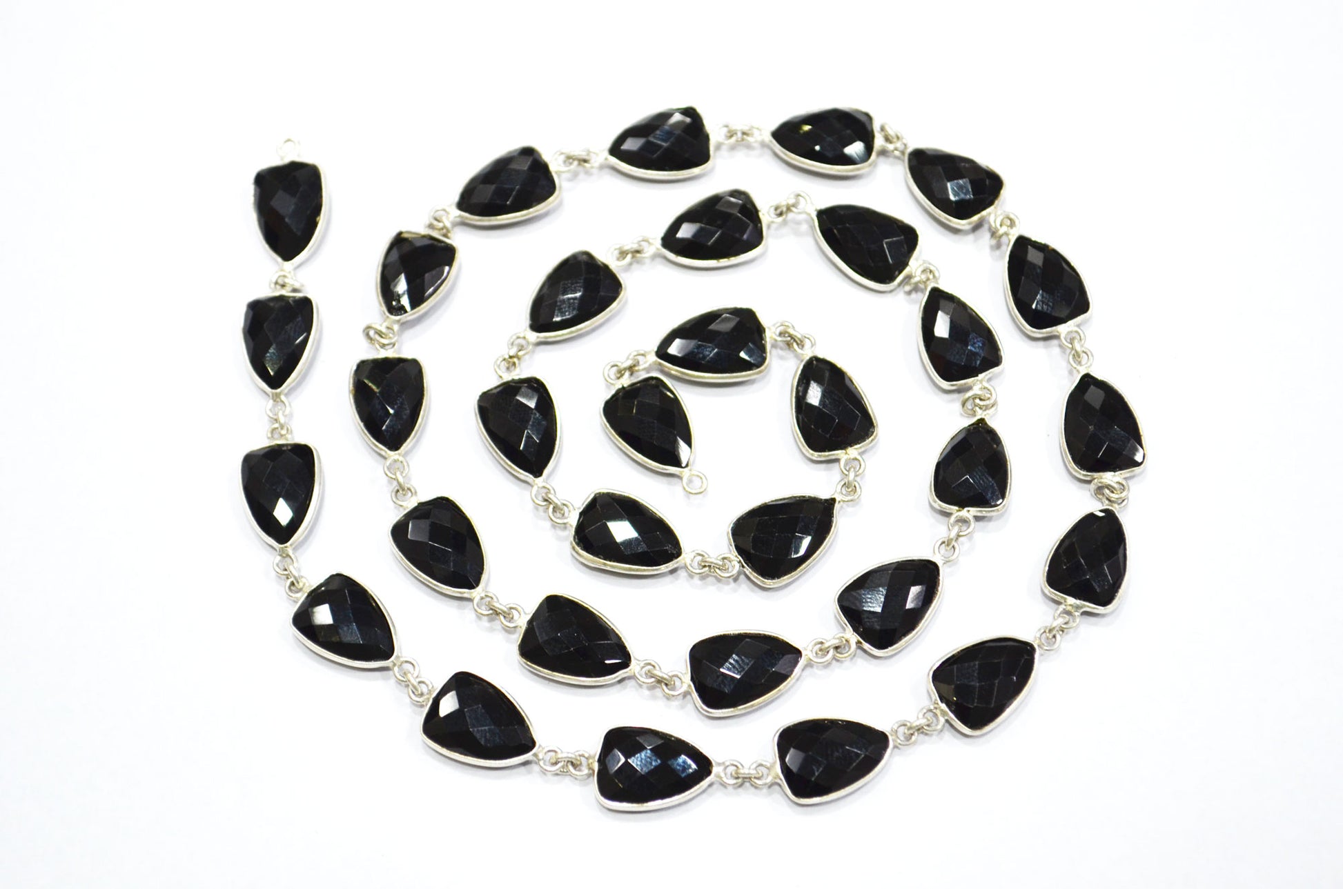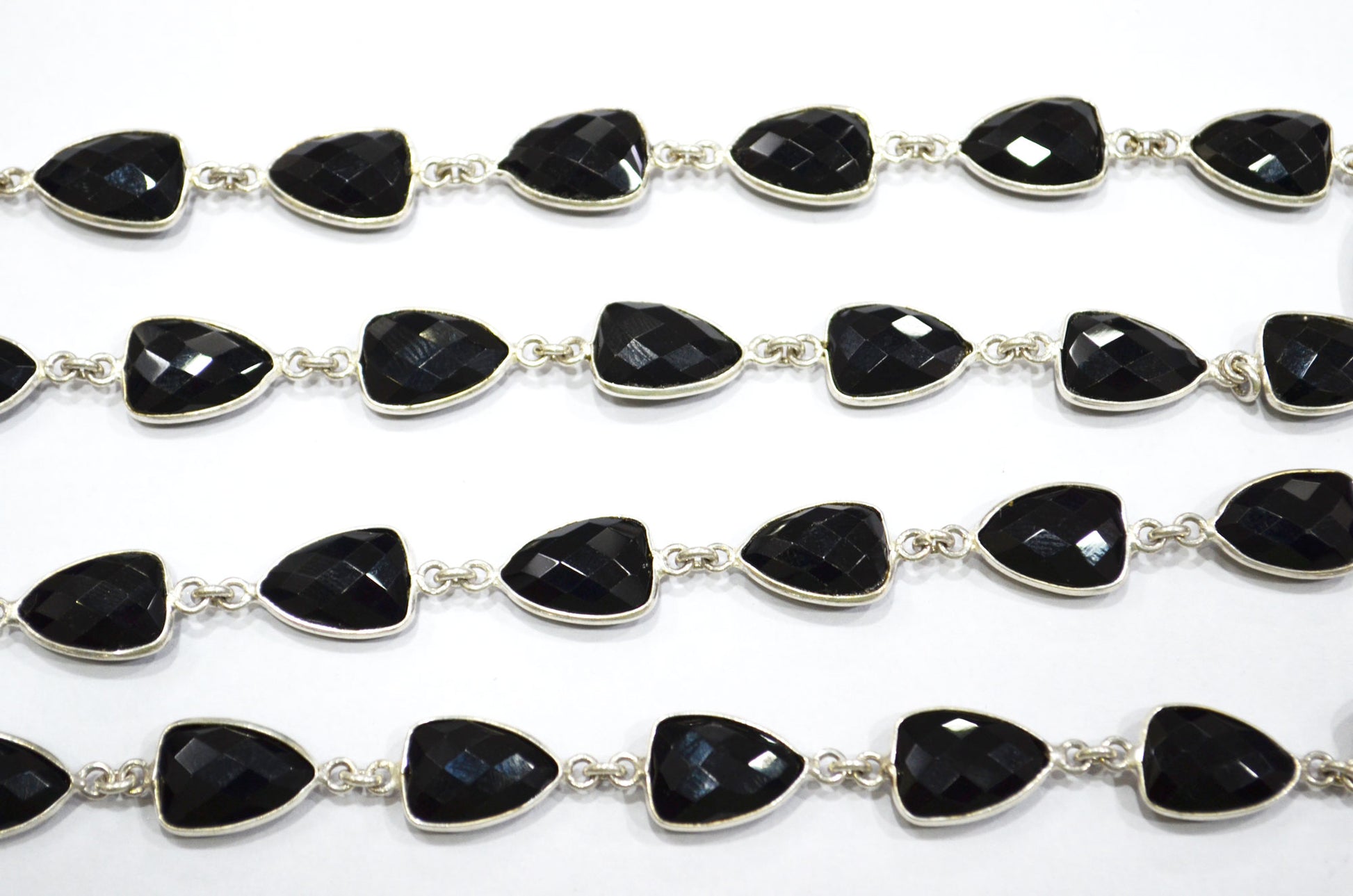 Black Onyx Hydro Quartz Faceted Trillion Shape Connector Chain , Black Onyx Hydro Quartz Bezel Link Chain , 10x13 mm , RB-5858