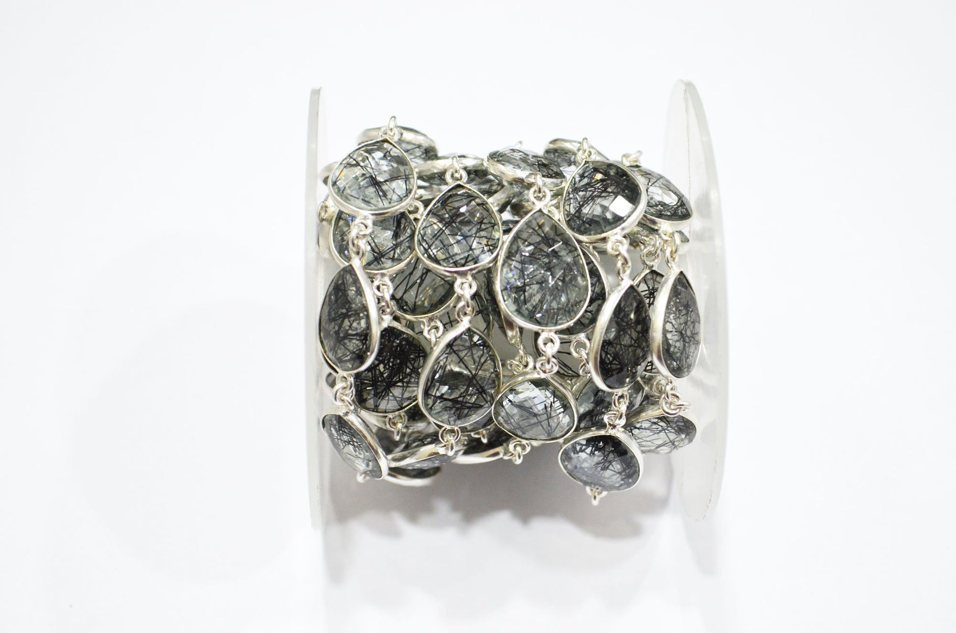 Black Rutile Doublet Glass Faceted Pear Shape Connector Chain , Black Rutile Doublet Glass Bezel Link Chain , 12x15 mm , RB-5714