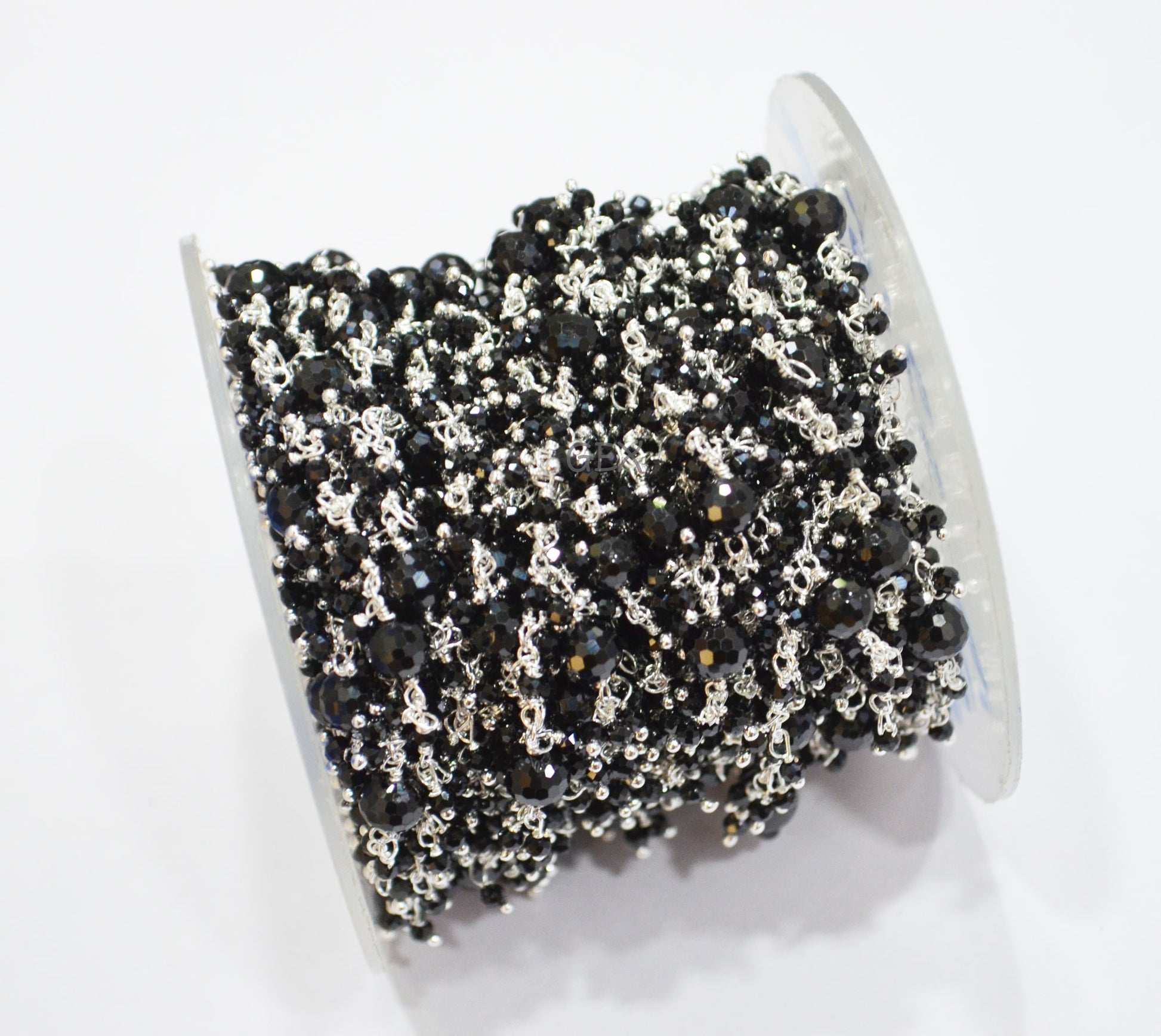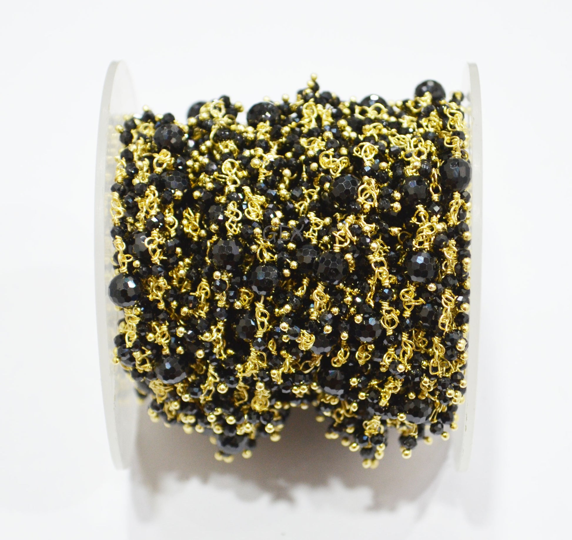 Black Spinel Faceted Round Shape Dangling Chain , 2 - 6 mm , RB-7172