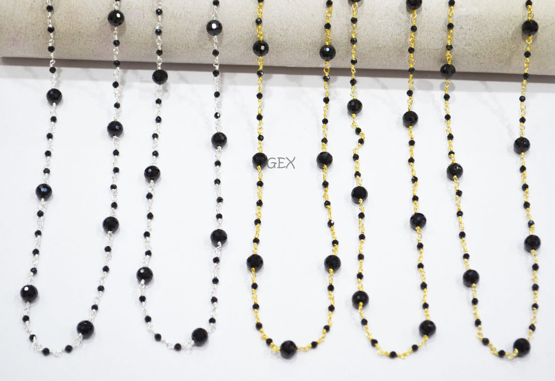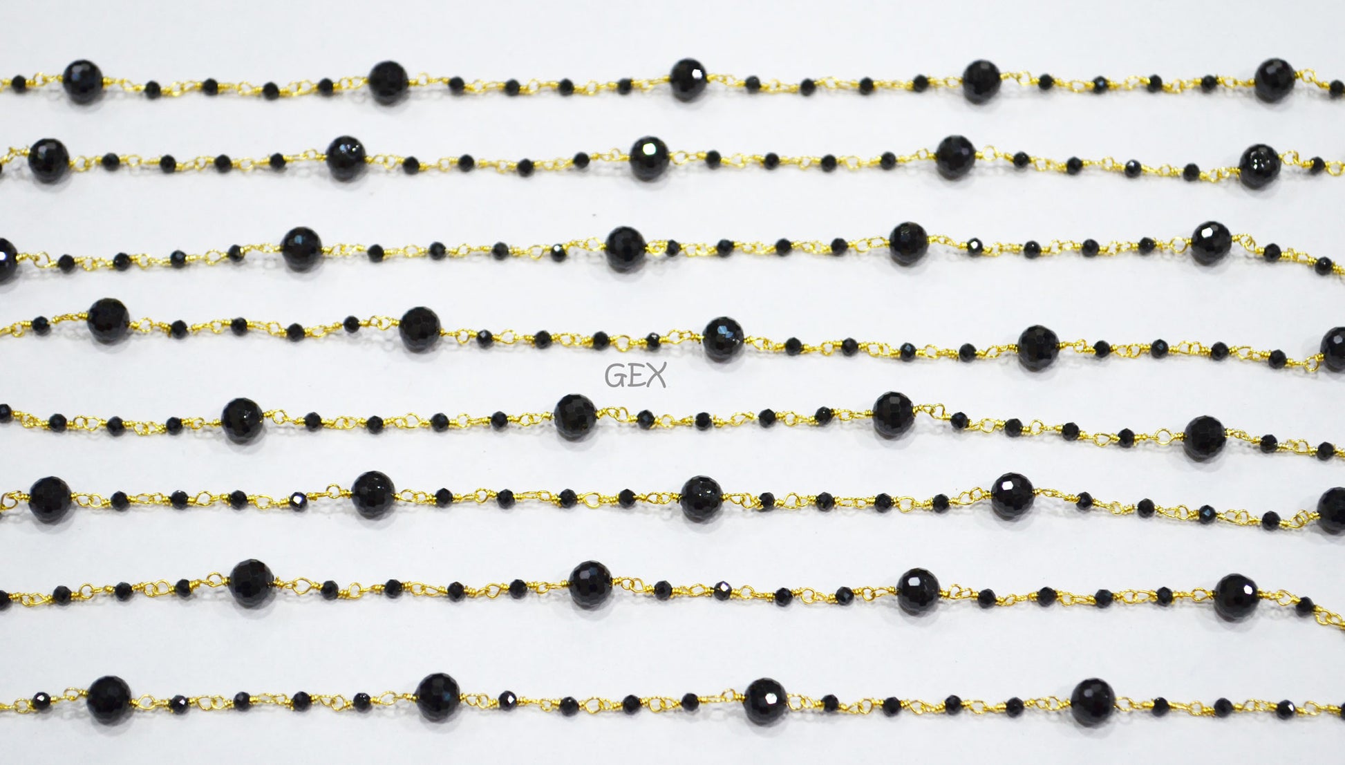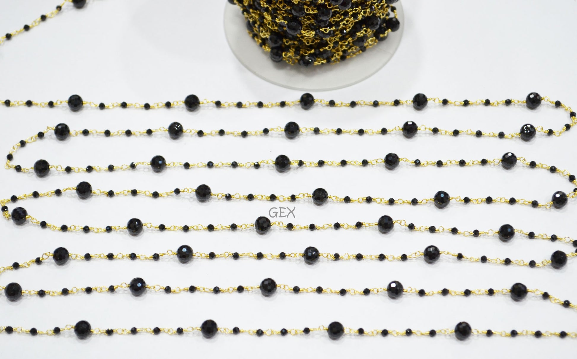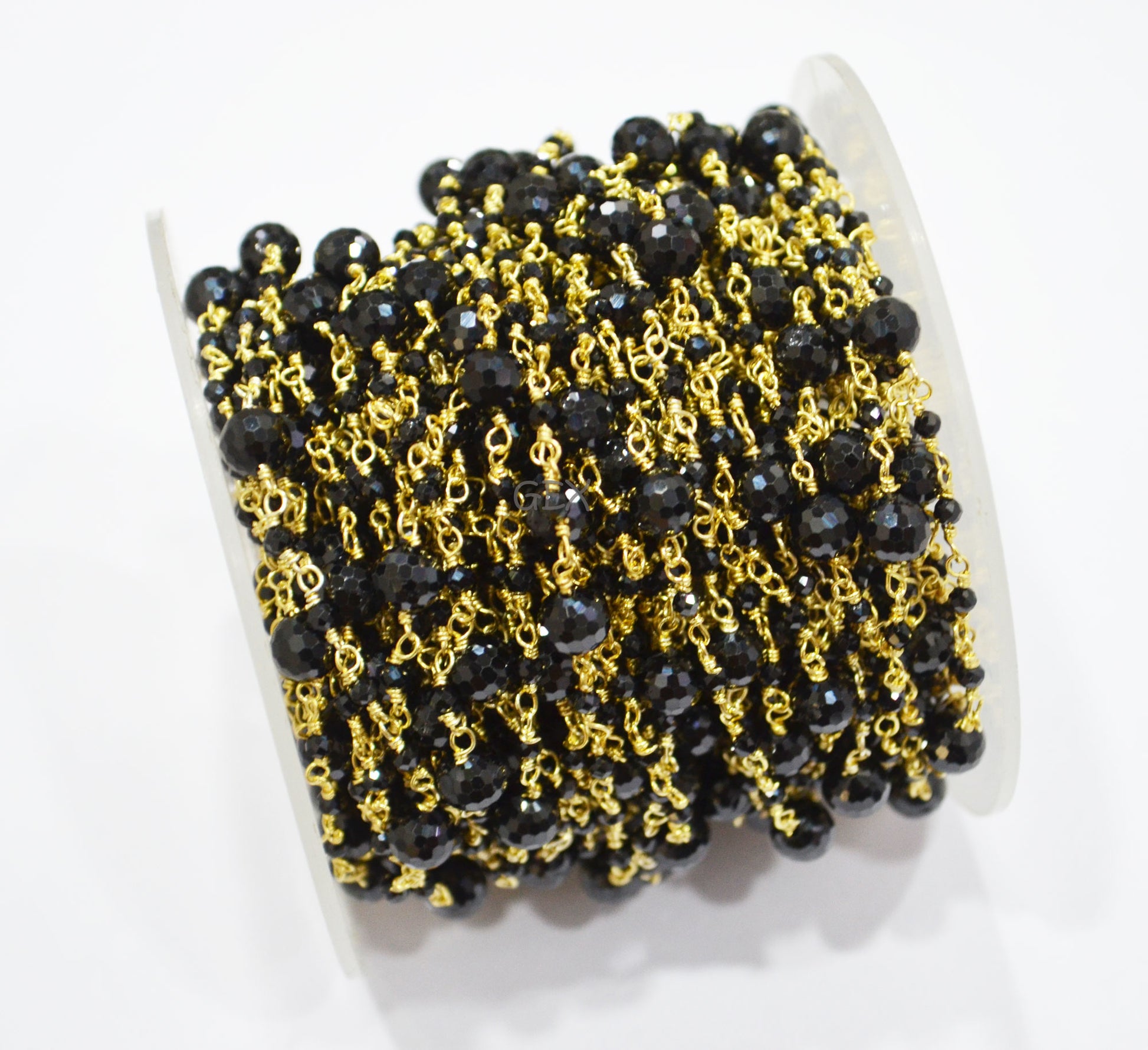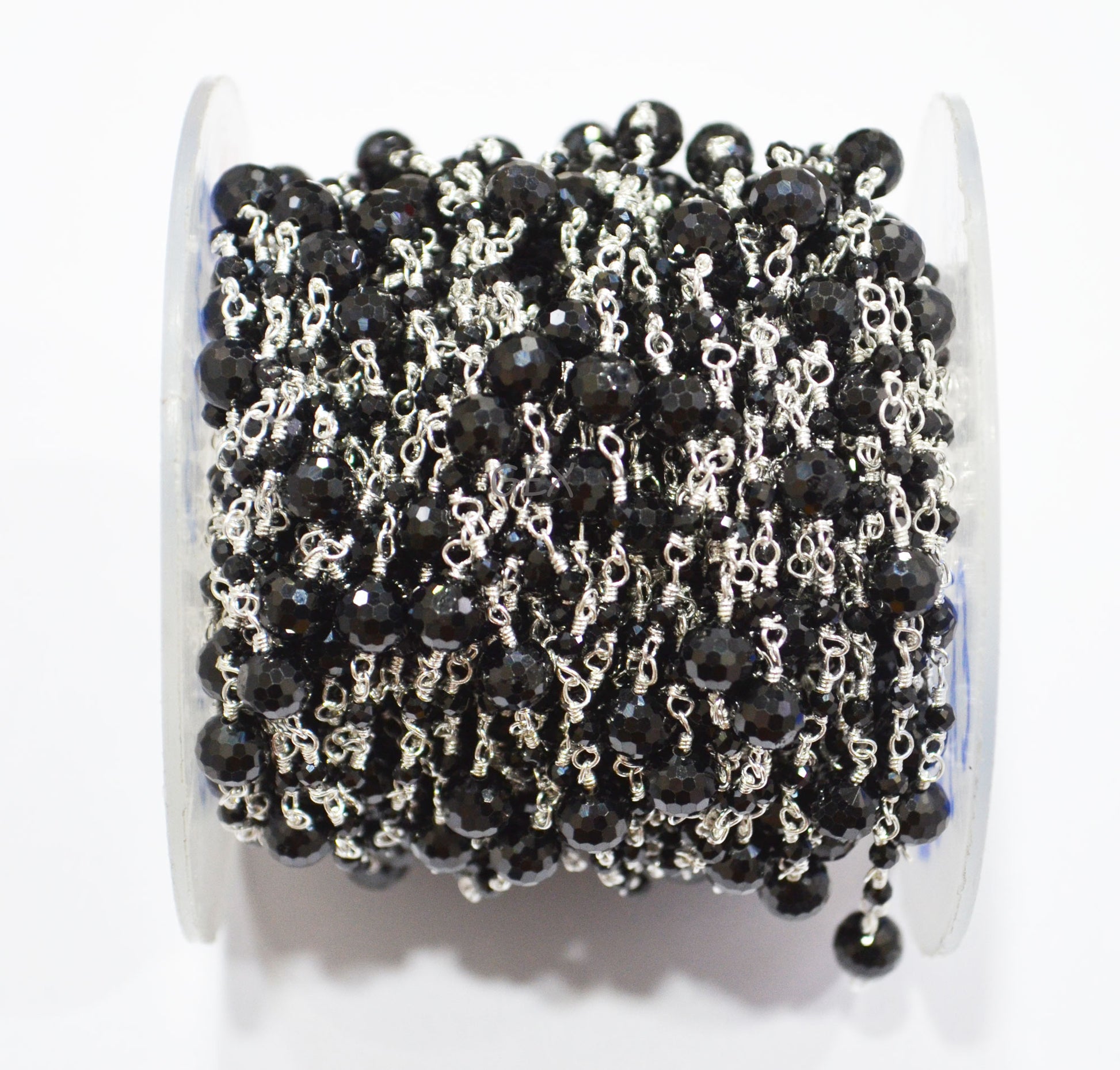 Black Spinel Faceted Round Shape Rosary Beaded Chain , Black Spinel Wire Wrapped Chain , 2 - 6 mm , RB-7171Β